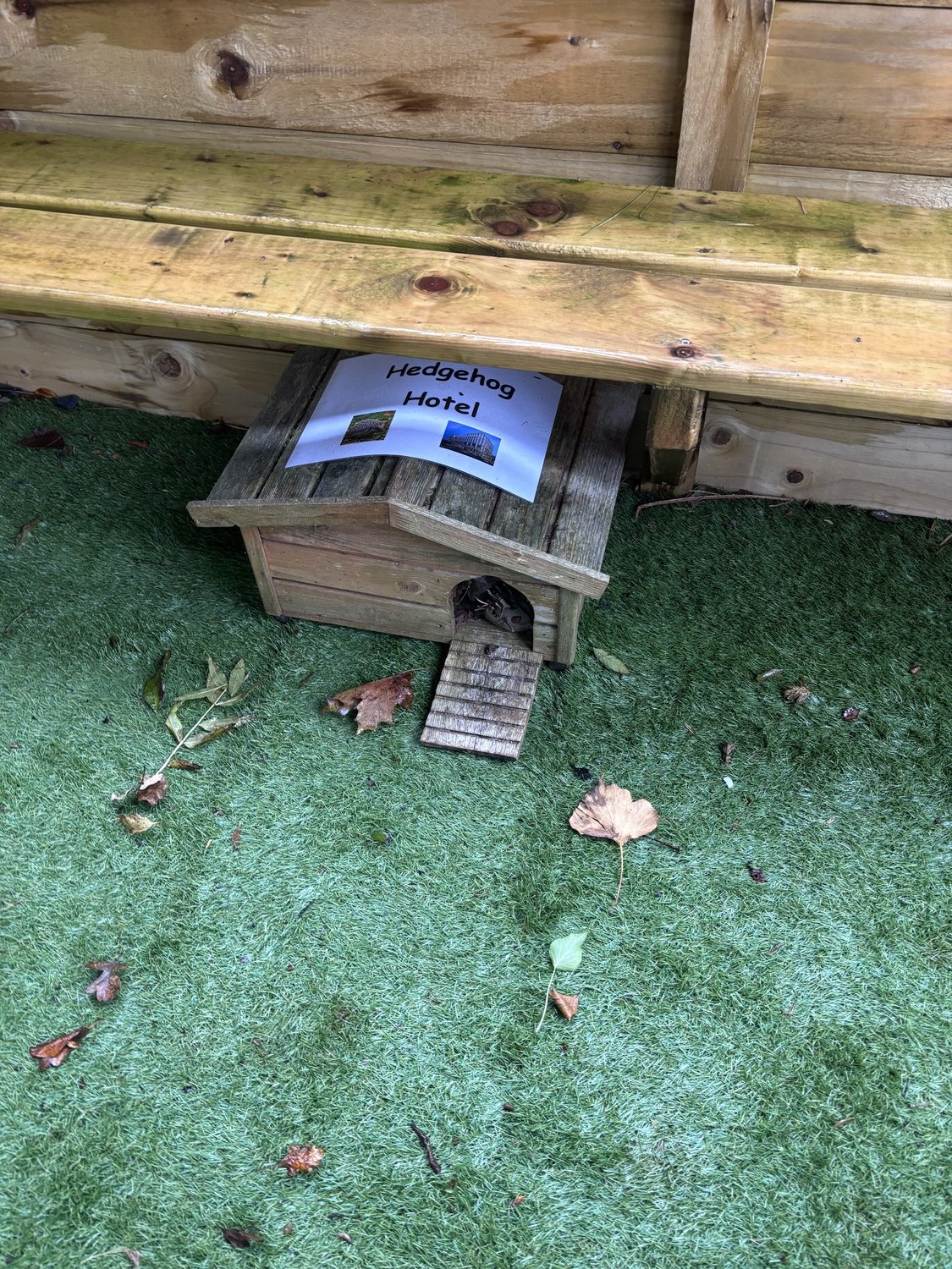 We made clay hedgehogs using clay and sticks and put them into a ‘Hedgehog Hotel’ to hibernate