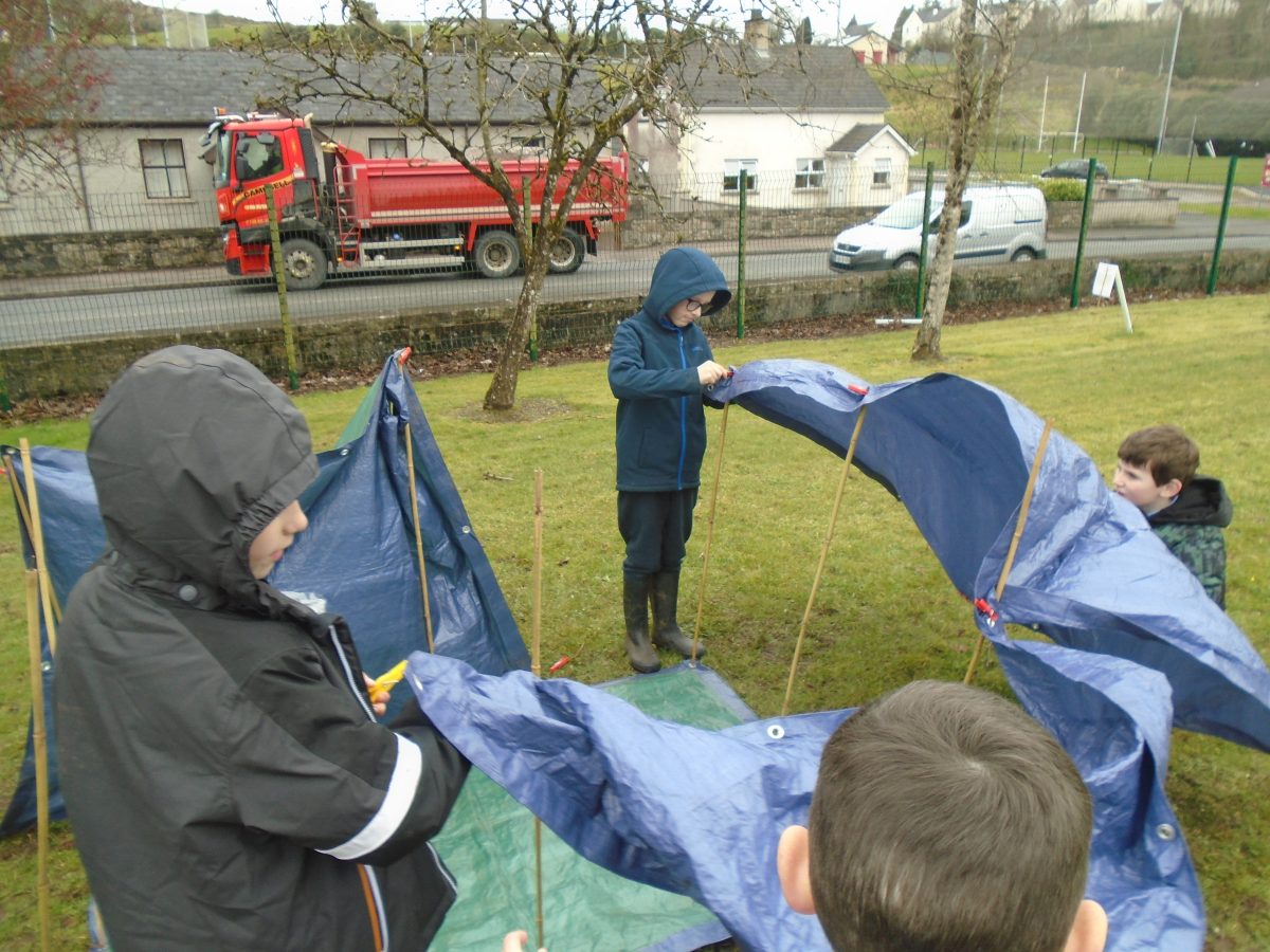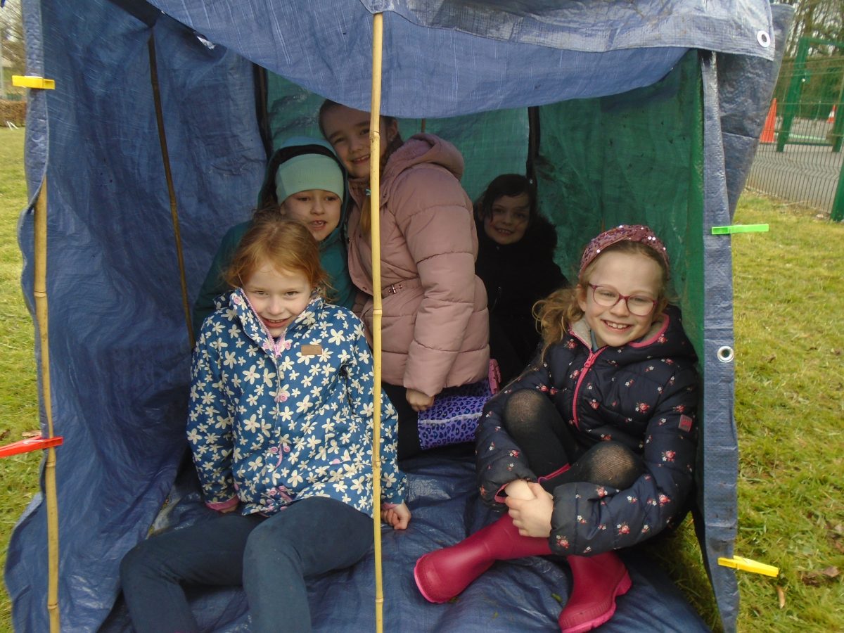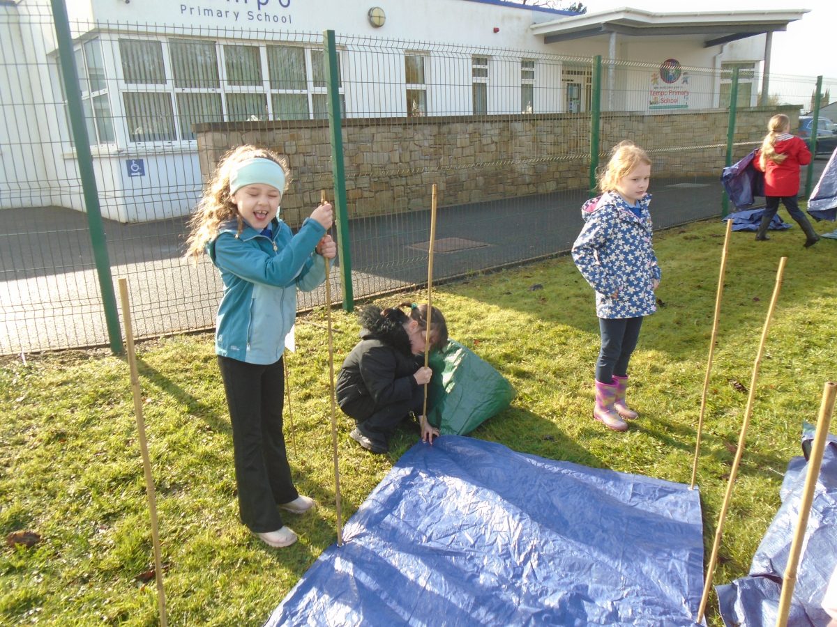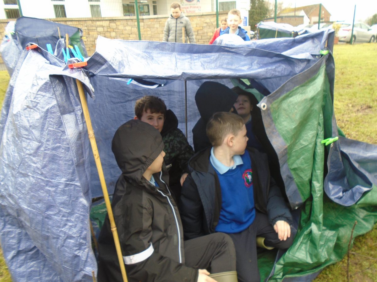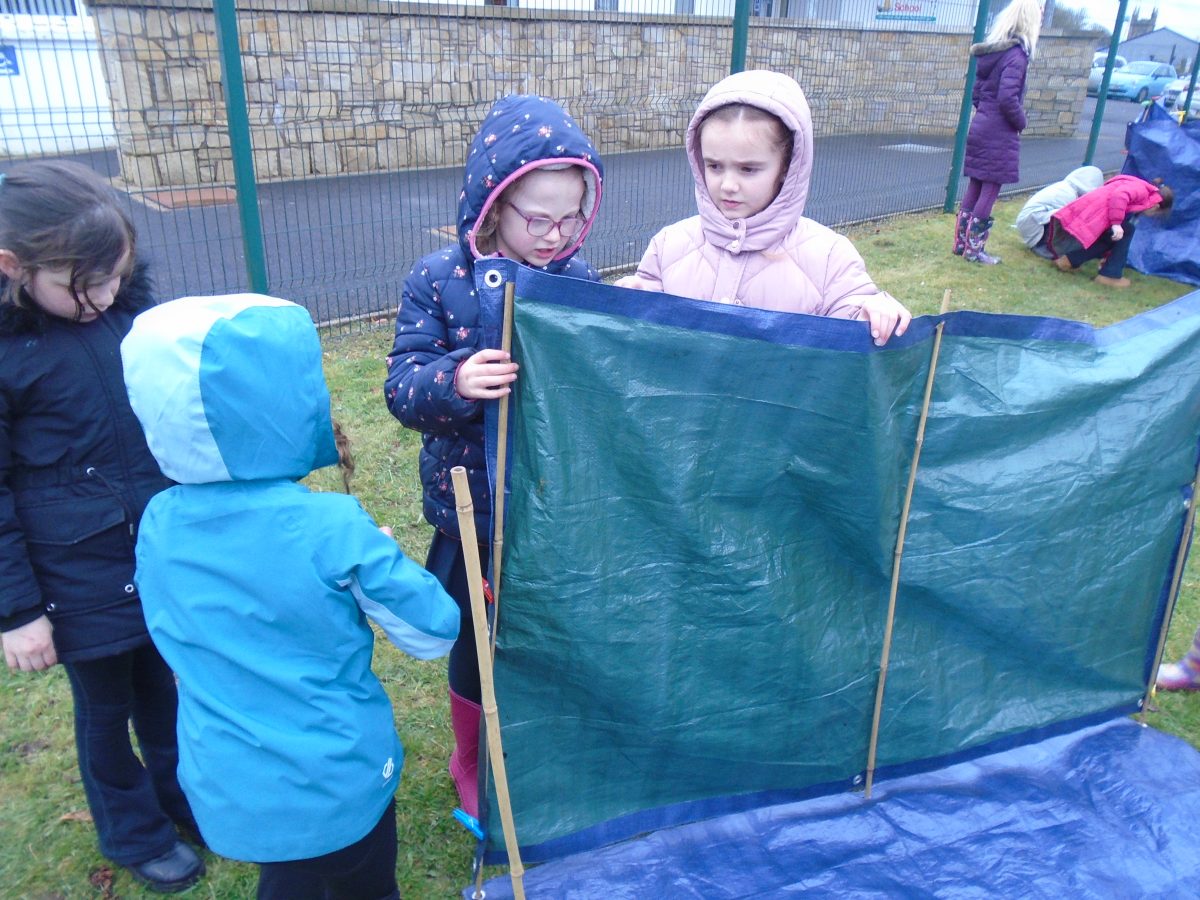 Building Shelters – group activity linked to Rainforest WAU topic. Children took on different roles and responsibilities in the group, presented and evaluated their work.