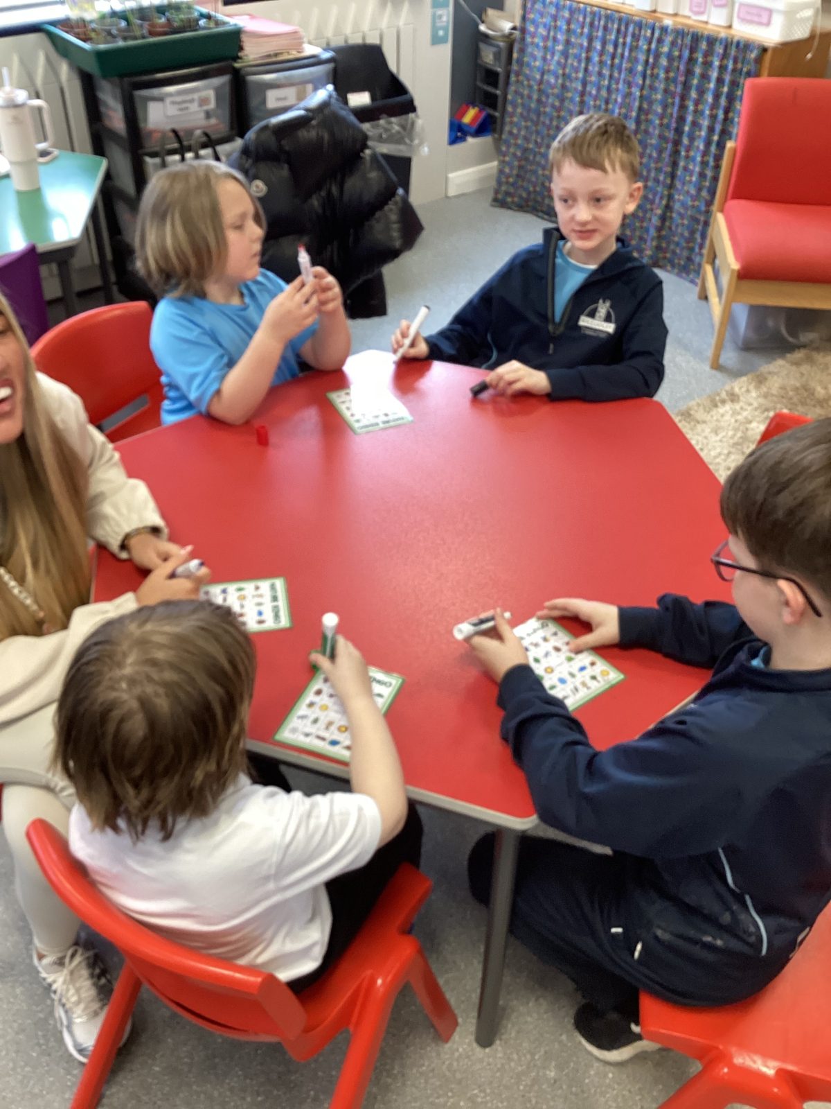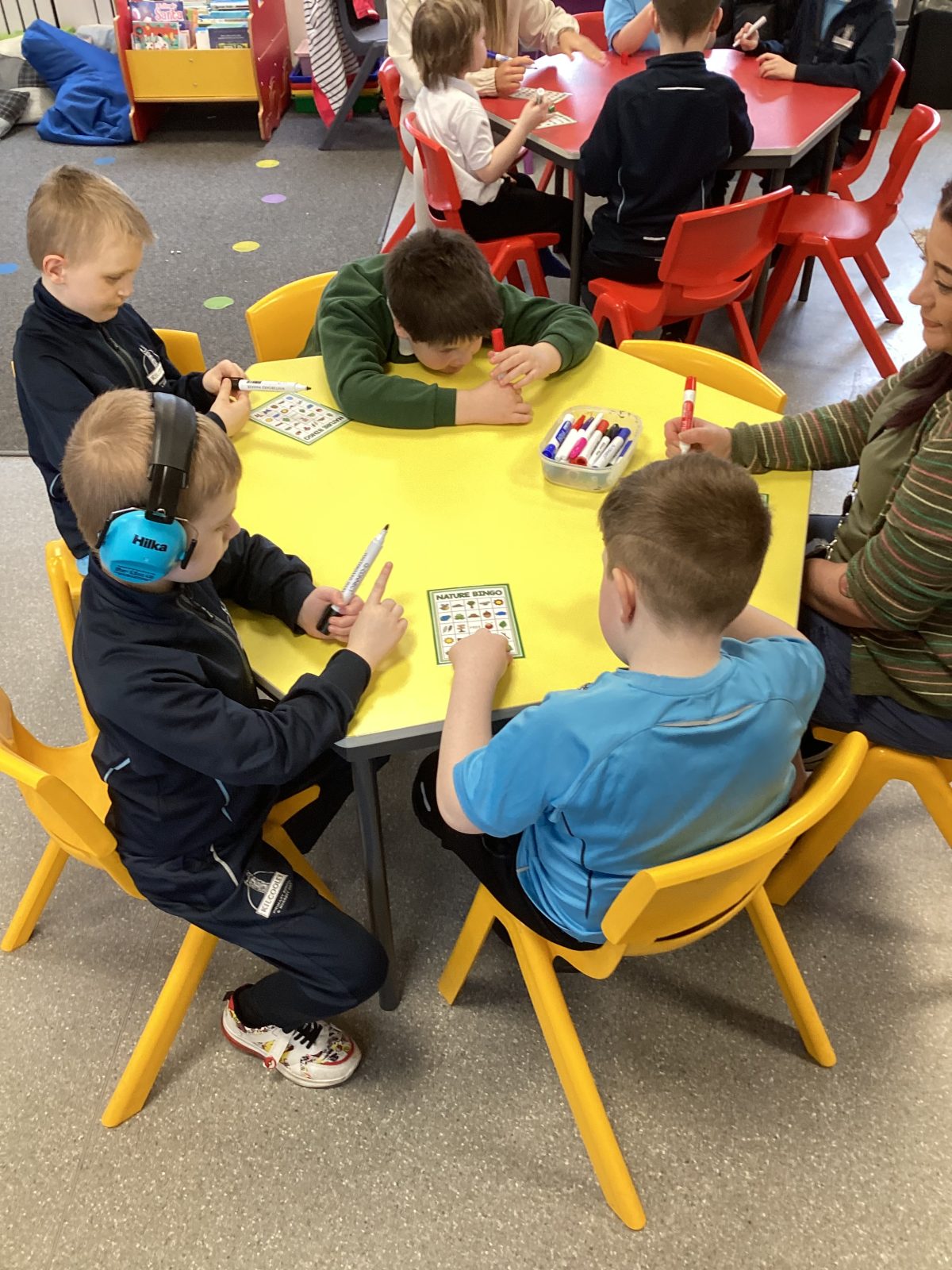 As the weather was very bad we played Nature Bingo. the children discussed the different pictures and where you would find them in Nature. They really enjoyed this forest school activity.