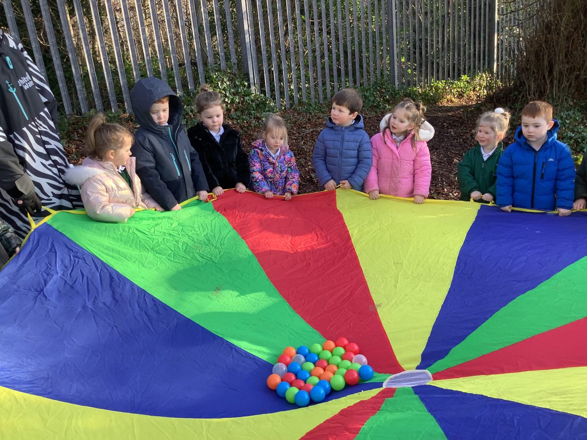 We also had fun with the parachute in a tree clearing.