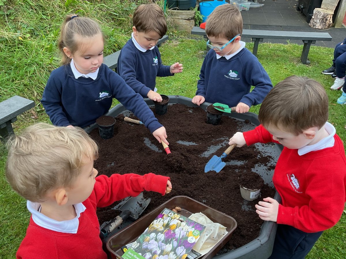 Every child planted an individual crocus bulb. We will be observing their growth over the next couple of months and then taking them home.