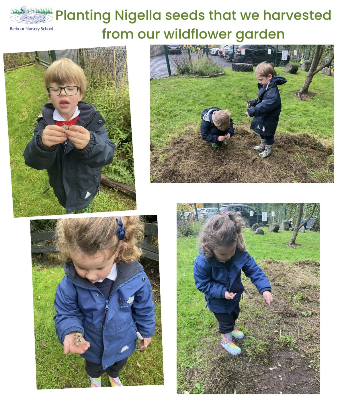We harvested seeds from the nigella flowers in our Butterfly Garden and planted them in our wildflower meadow.