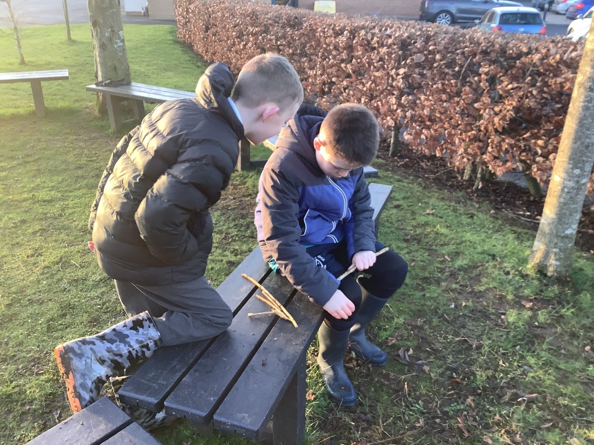 1. Make bird feeders using pipe cleaners and Cheerios. Hang in forested area. Remember we will collect the pipe cleaners next week as they are non biodegradable.