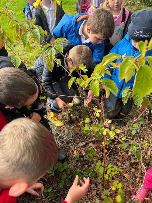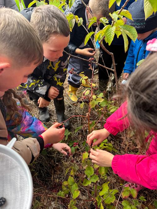 Today’s session explored foraging, processing natural materials, and creating art in the woodland environment. Children began by carefully collecting ripe blackberries from designated areas, practising safe foraging skills and learning how to identify suitable fruit while respecting the plants and wider habitat.