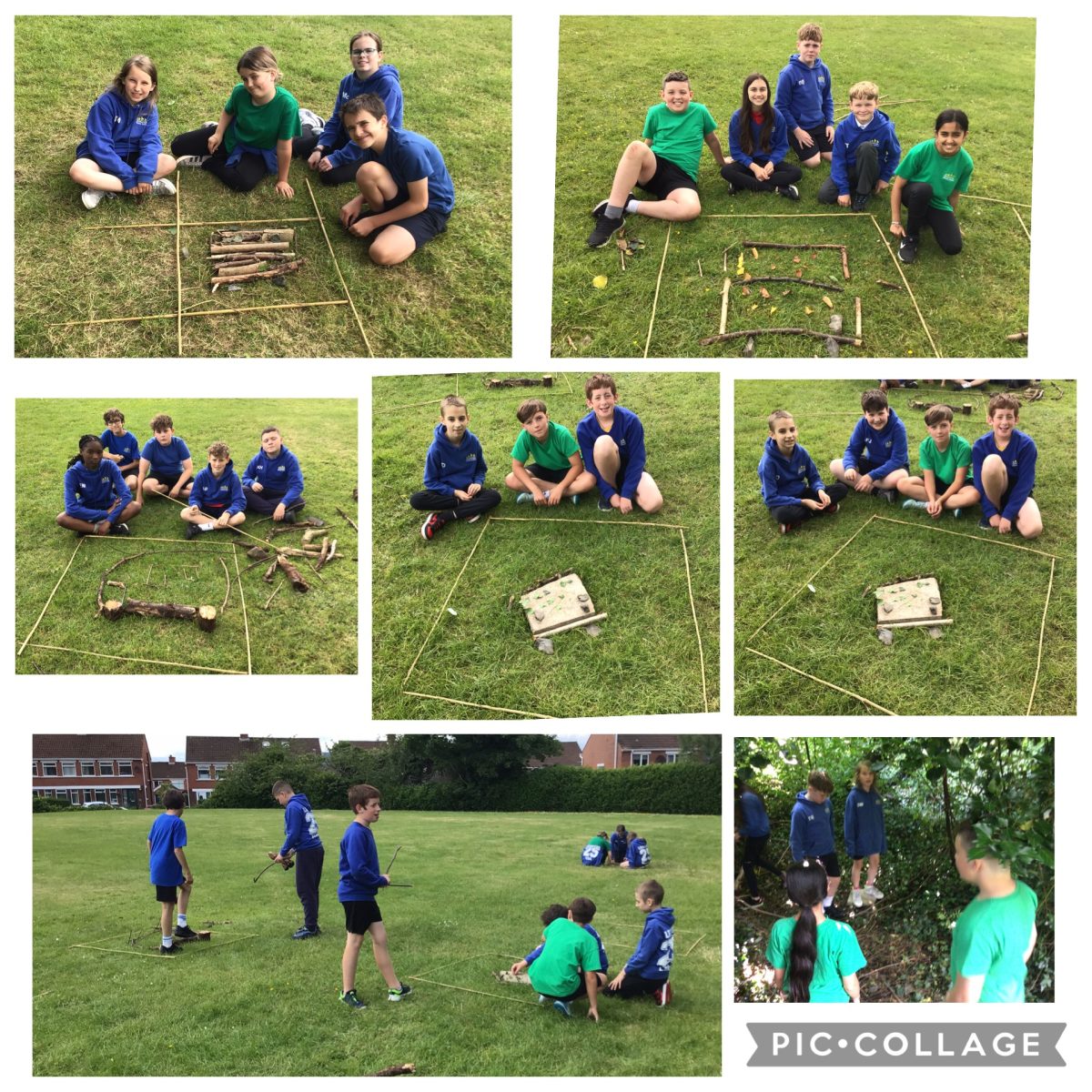 This lesson aimed to recreate images using natural resources. Having been shown a plane, bus and country scene, the children were divided into mixed-ability teams of different age groups.