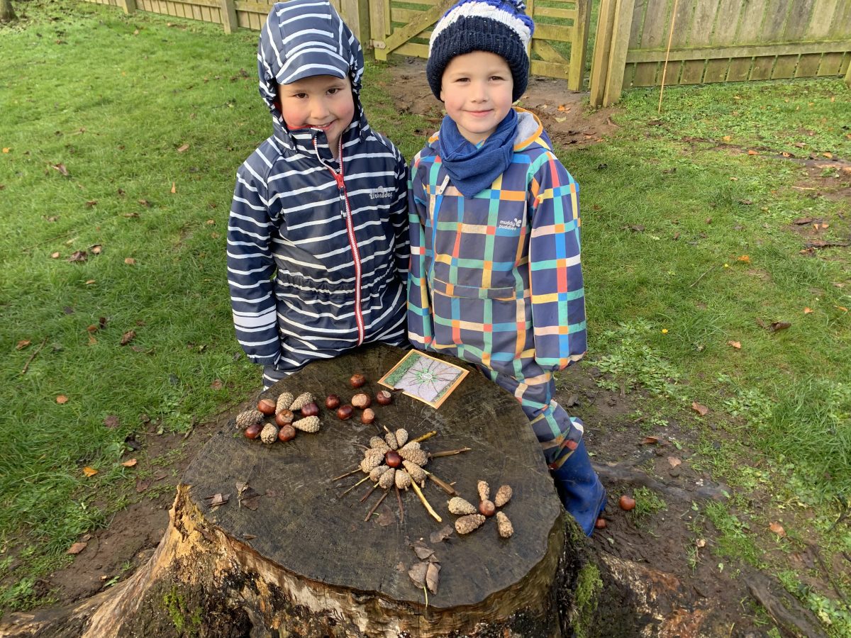 Natural art based on the work of Andy Goldsworthy in connection with our learning about Autumn.