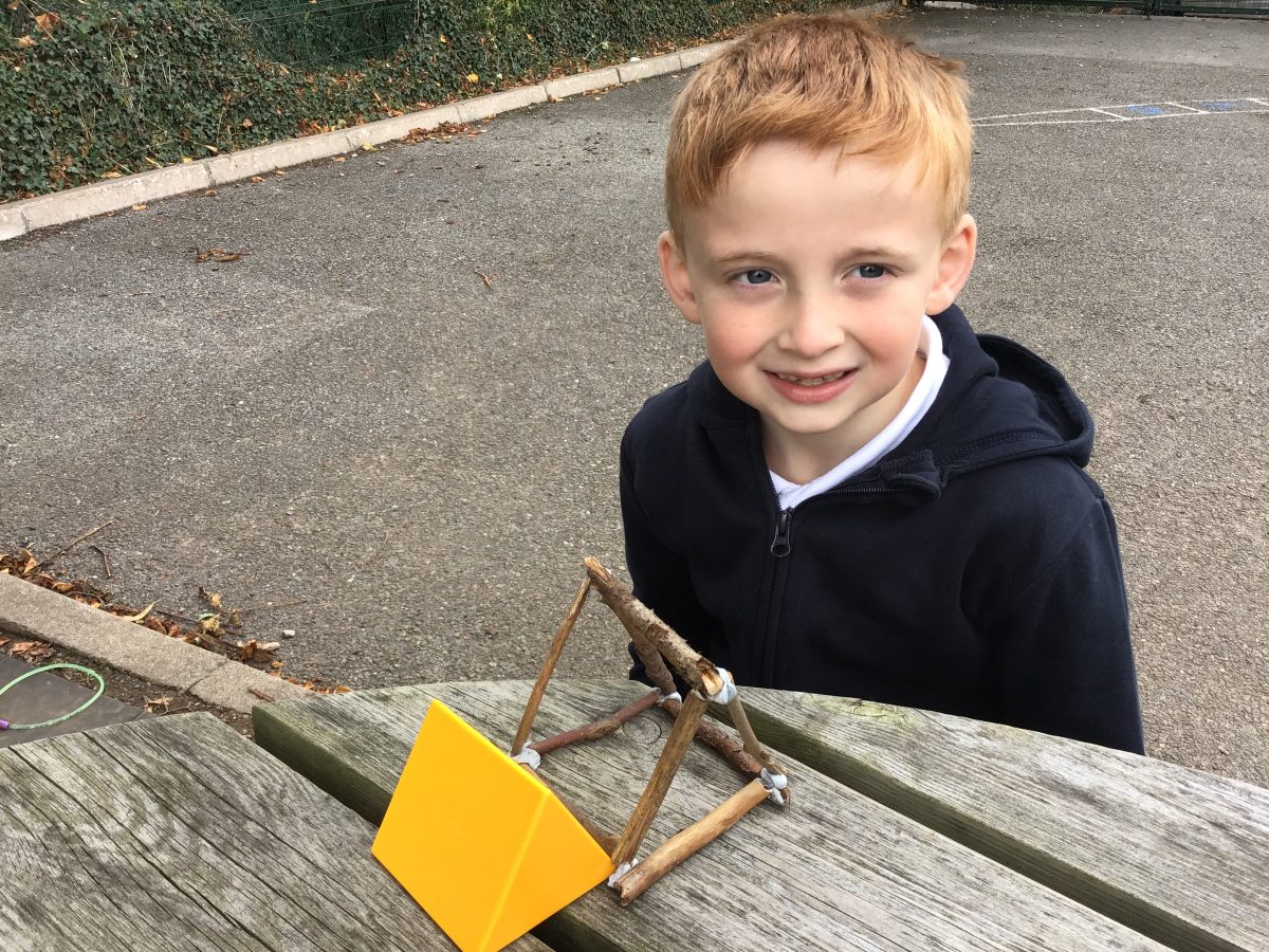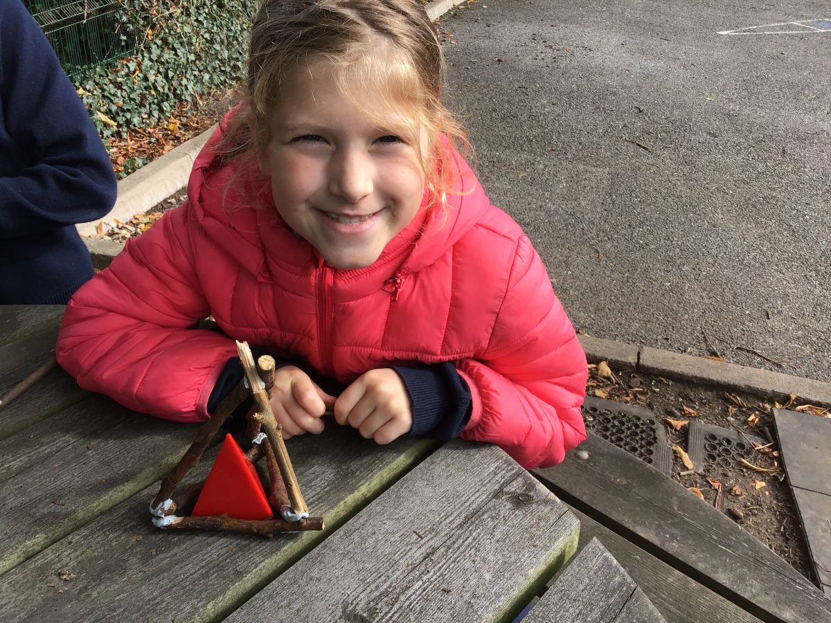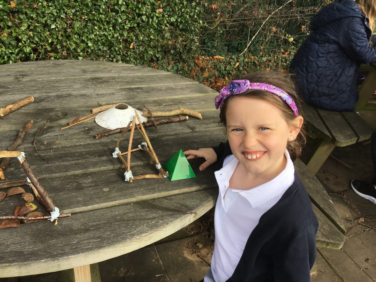 Children gathering twigs and using them to create 3D shapes. Using playdough to told twigs together. Using this as an outdoor Numeracy lesson.