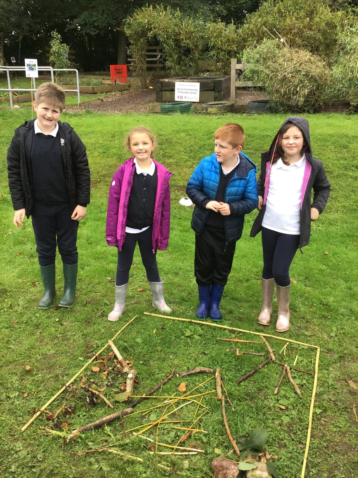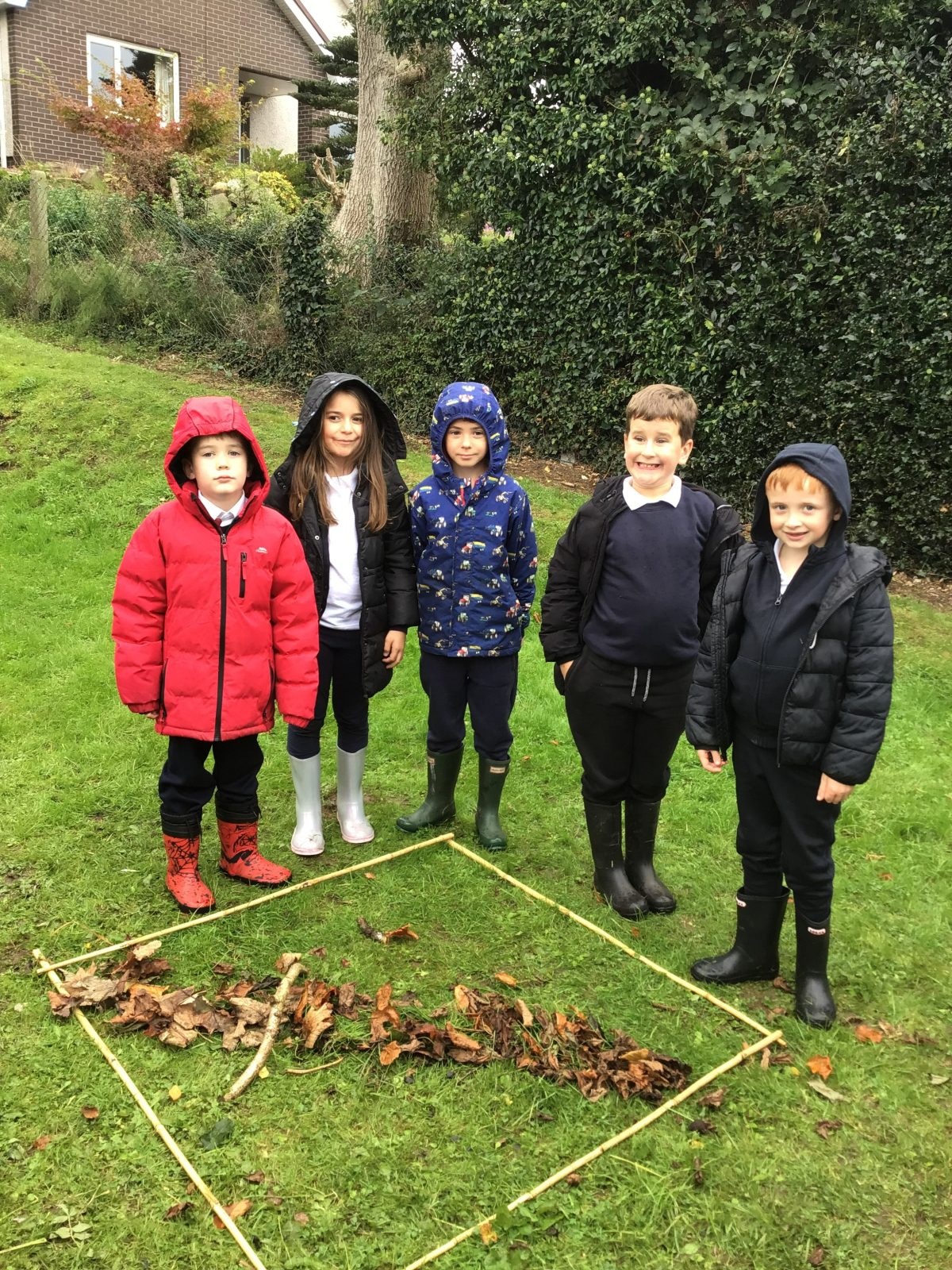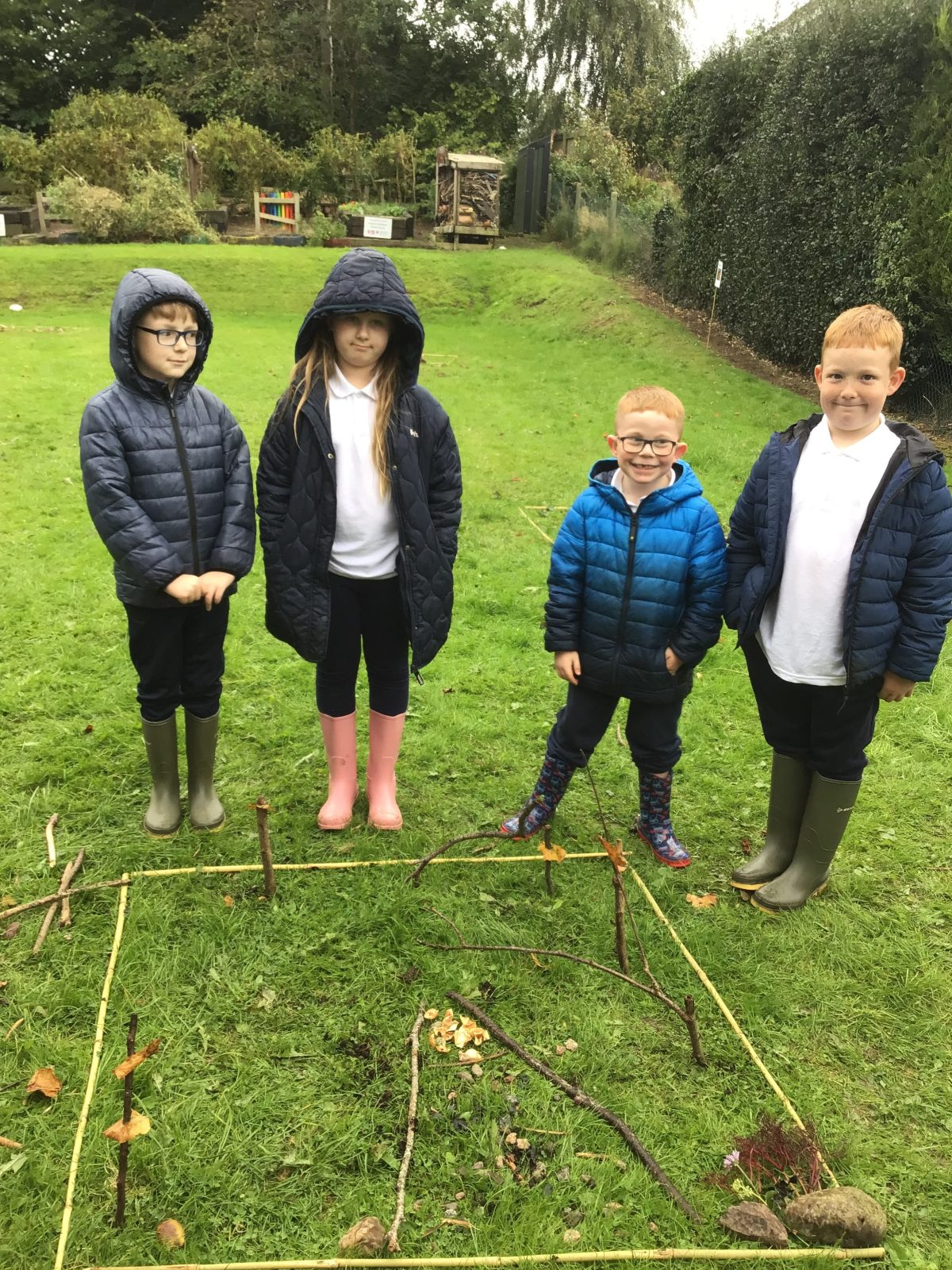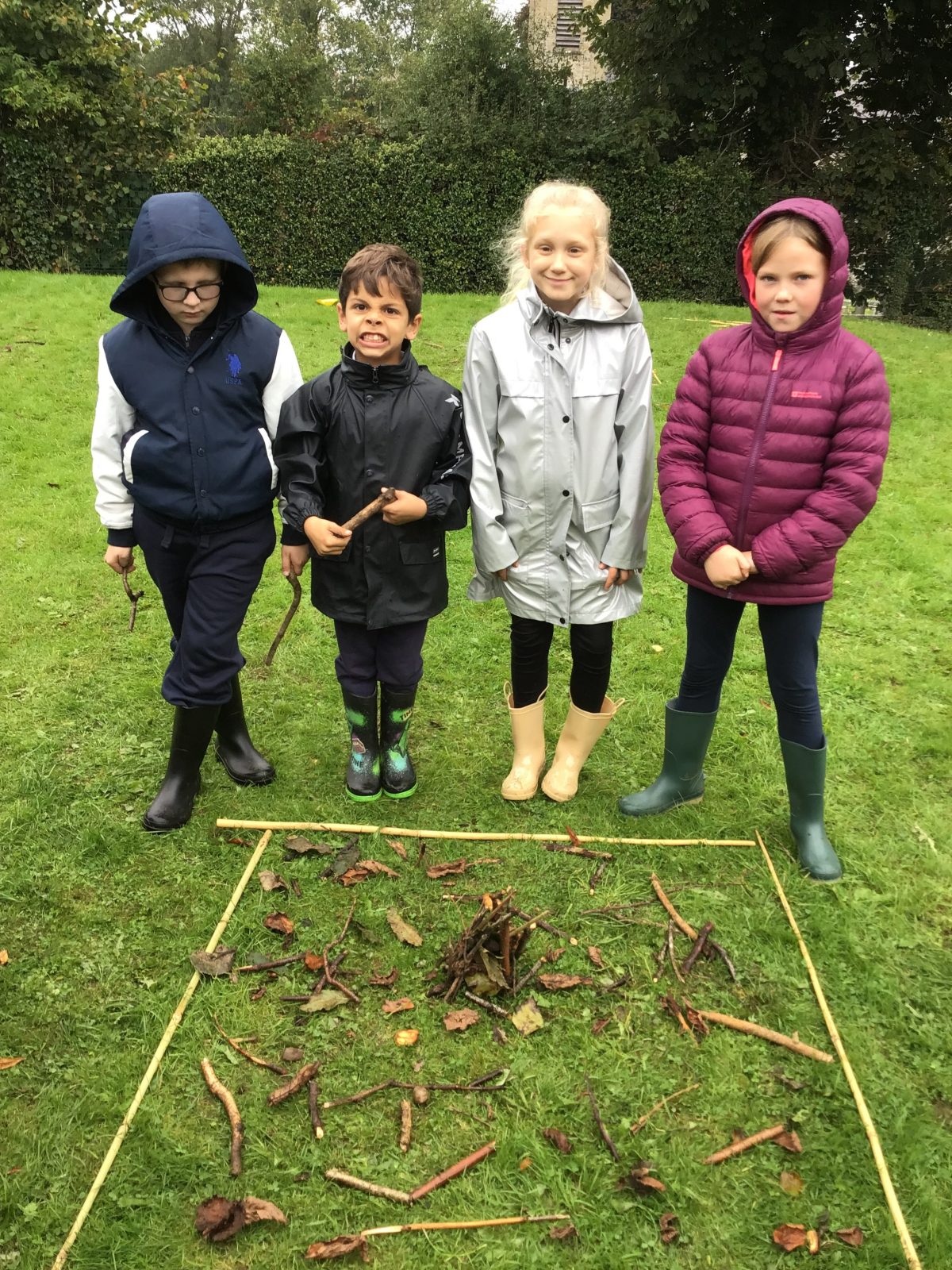 Working as part of a group to create abstract pieces of art using natural resources found within the boundary markers.