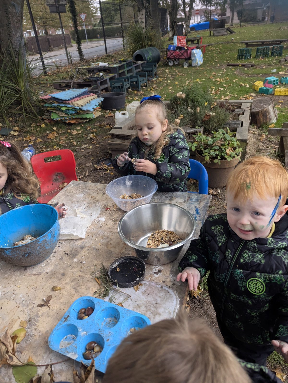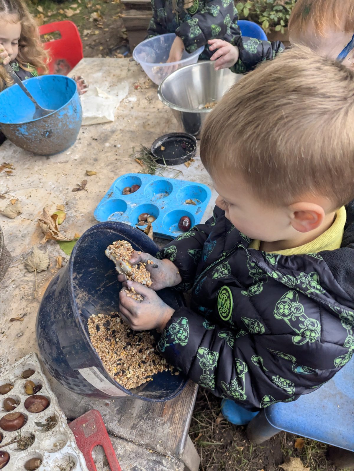 Personal Social and emotional:- Independently creating their own bird fat balls, creating a sense of responsibility.