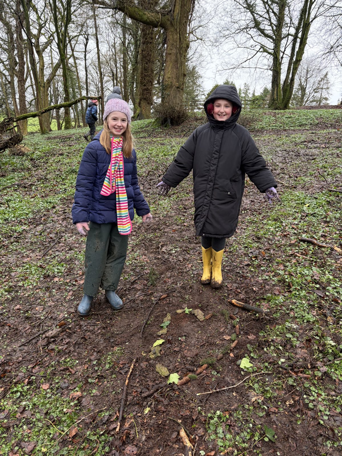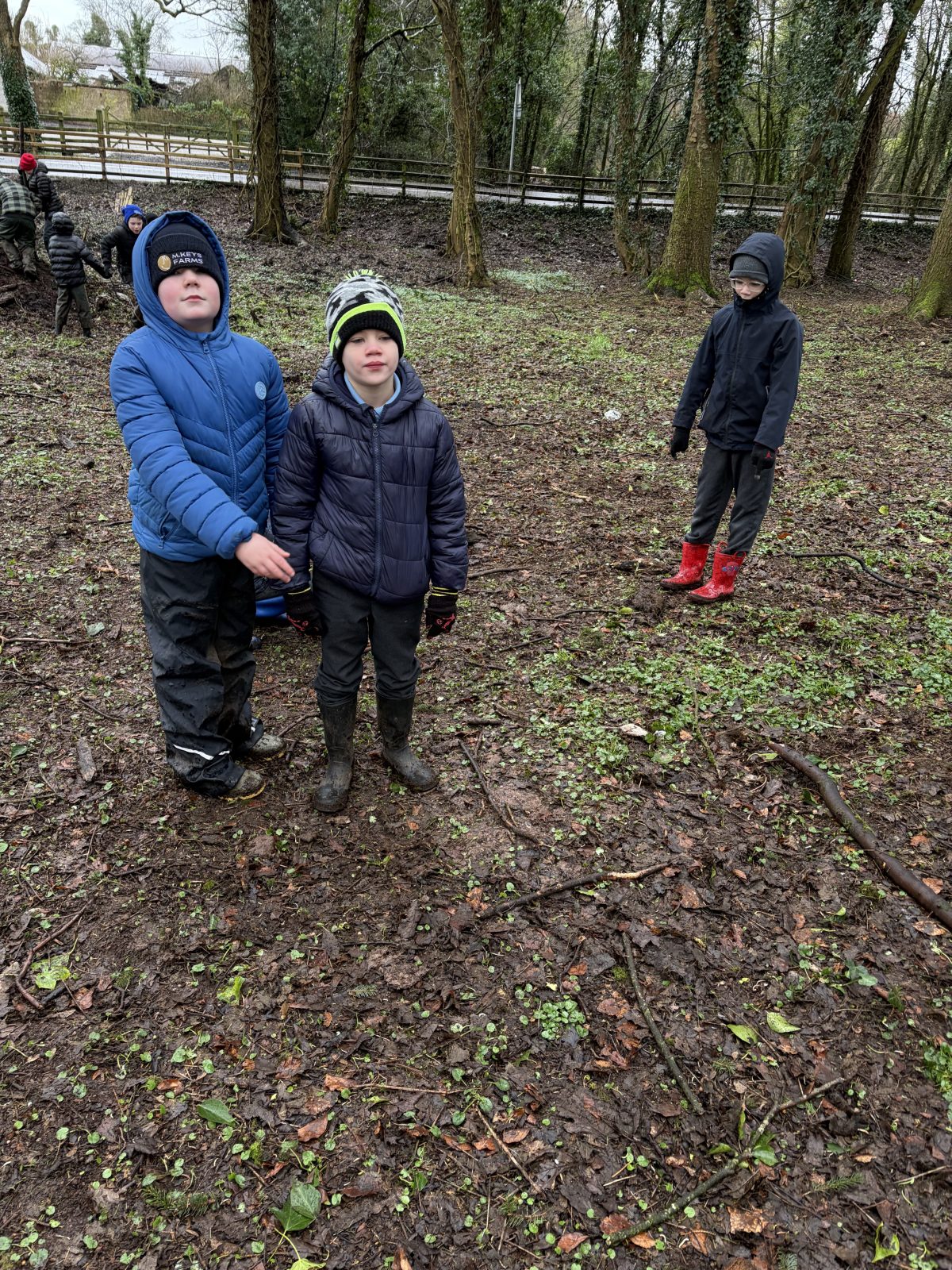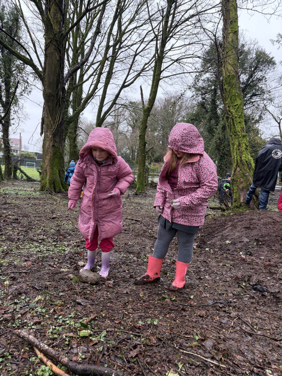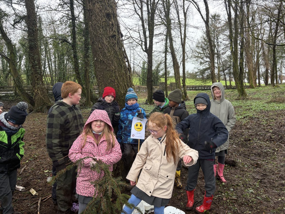 As part of Children’s Mental Health Week we took time to the forest to focus on the step to wellbeing of ‘noticing’. Our current focus in Numeracy is exploring patterns and relationships. I then combined these two main aspects to plan for children to notice natural patterns in the forest area. Children were given magnifying glasses to really emphasise the point of noticing and to develop observation skills. Children then progressed to creating their own repeating patterns. One pair included themselves in the pattern, repeating leaf, leaf, twig, person, person and so on, while another pair created a symmetrical repeating pattern. Most children enjoyed this activity and completed with eagerness. Children not at the happy face gave reasons such as being cold or not having more free time in the mud.
