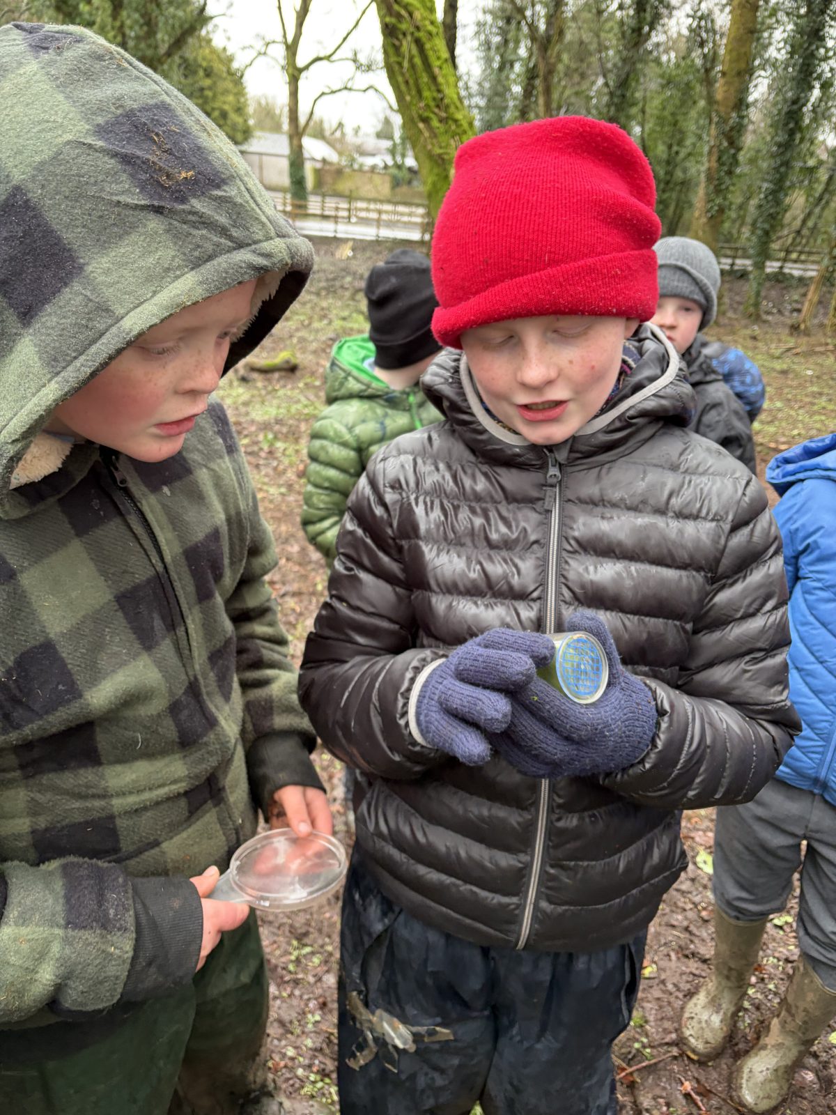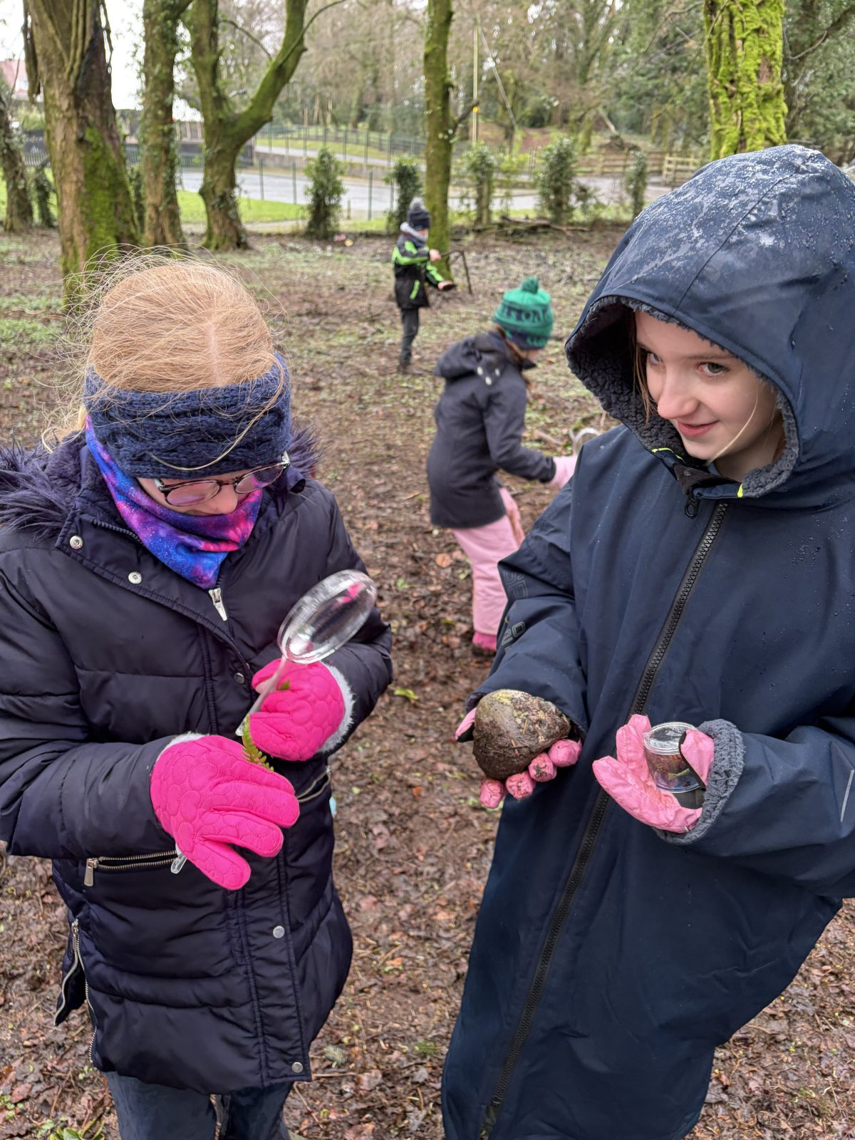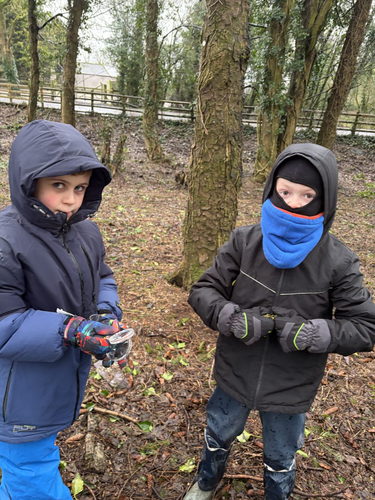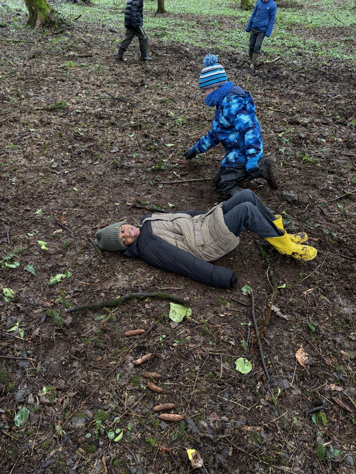 As part of Children’s Mental Health Week we took time to the forest to focus on the step to wellbeing of ‘noticing’. Our current focus in Numeracy is exploring patterns and relationships. I then combined these two main aspects to plan for children to notice natural patterns in the forest area. Children were given magnifying glasses to really emphasise the point of noticing and to develop observation skills. Children then progressed to creating their own repeating patterns. One pair included themselves in the pattern, repeating leaf, leaf, twig, person, person and so on, while another pair created a symmetrical repeating pattern. Most children enjoyed this activity and completed with eagerness. Children not at the happy face gave reasons such as being cold or not having more free time in the mud.