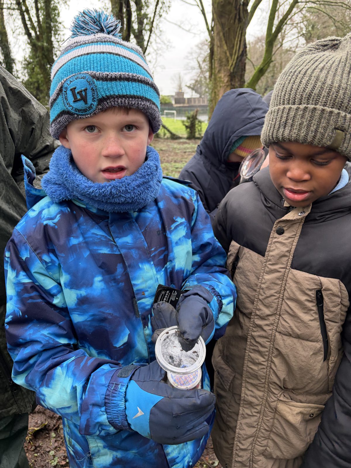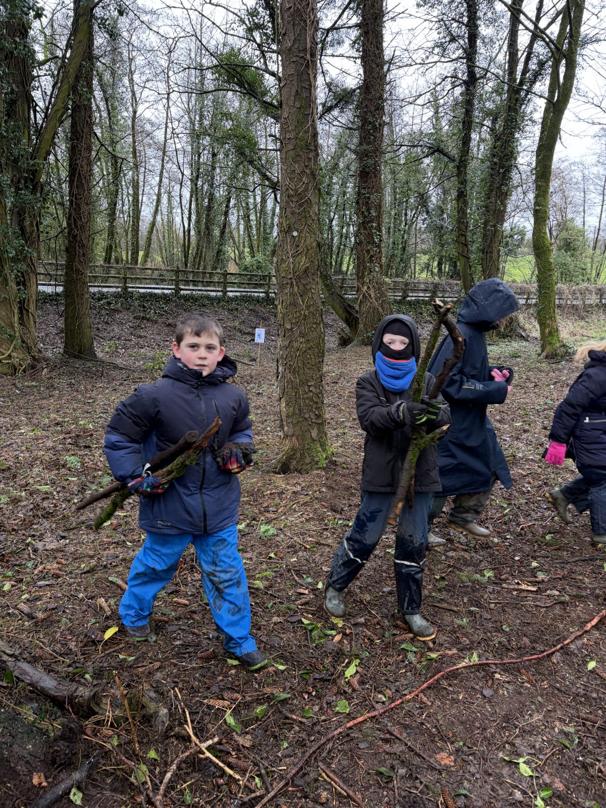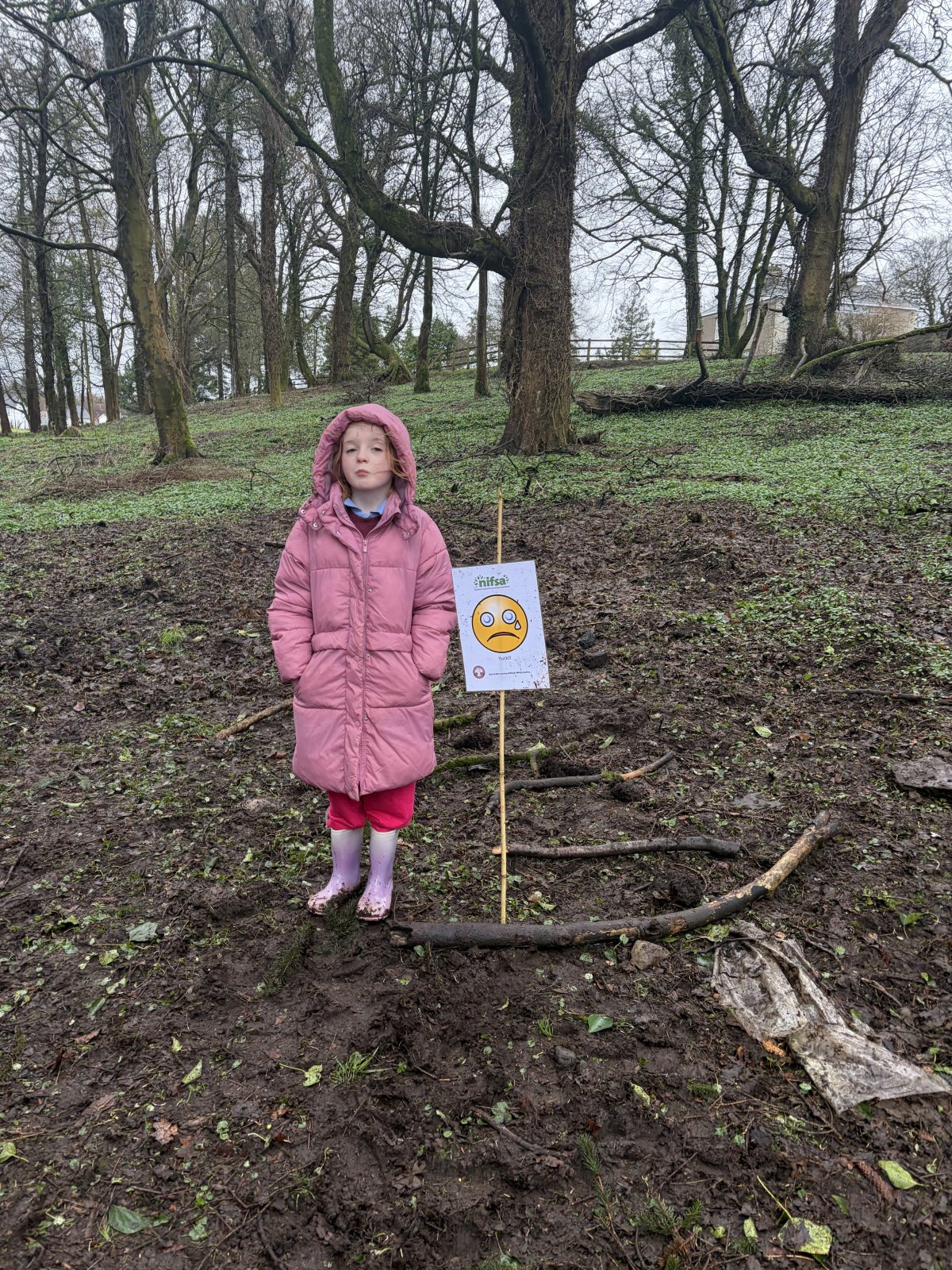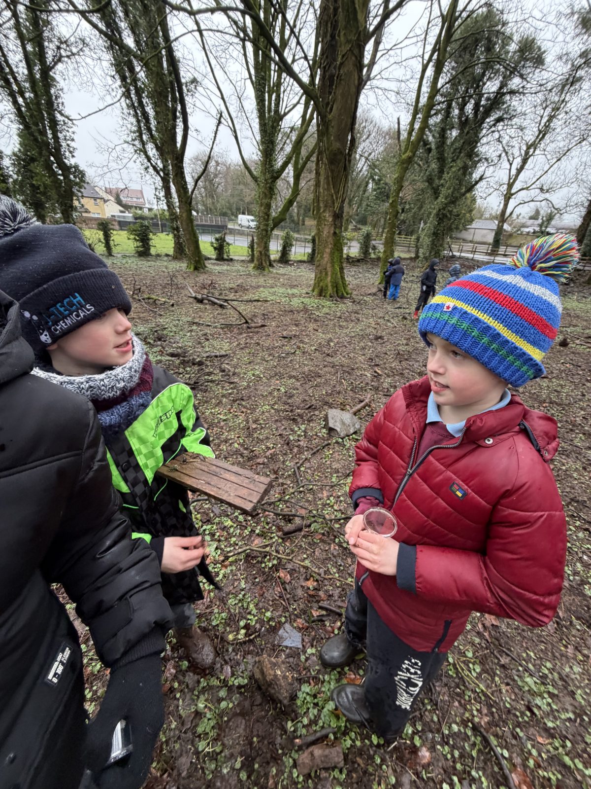 As part of Children’s Mental Health Week we took time to the forest to focus on the step to wellbeing of ‘noticing’. Our current focus in Numeracy is exploring patterns and relationships. I then combined these two main aspects to plan for children to notice natural patterns in the forest area. Children were given magnifying glasses to really emphasise the point of noticing and to develop observation skills. Children then progressed to creating their own repeating patterns. One pair included themselves in the pattern, repeating leaf, leaf, twig, person, person and so on, while another pair created a symmetrical repeating pattern. Most children enjoyed this activity and completed with eagerness. Children not at the happy face gave reasons such as being cold or not having more free time in the mud.