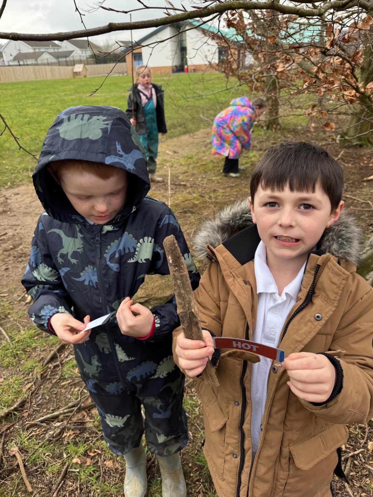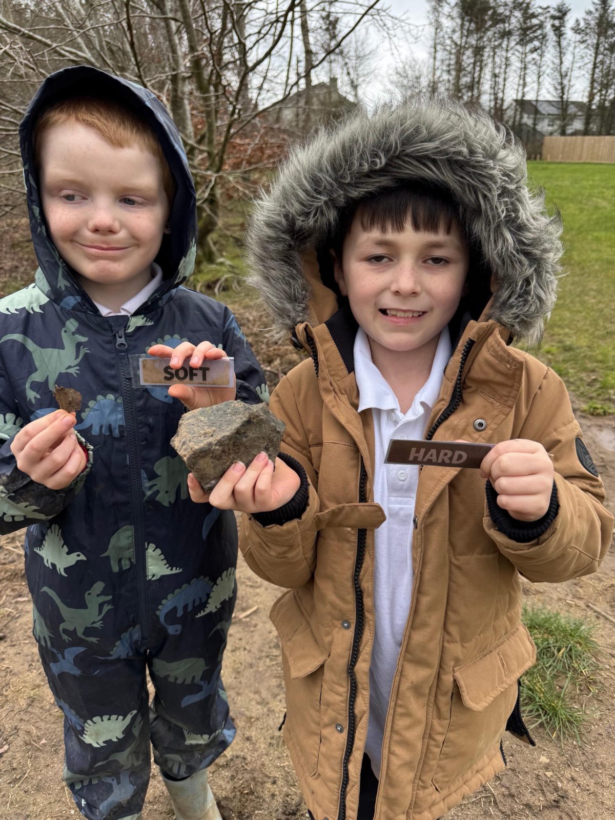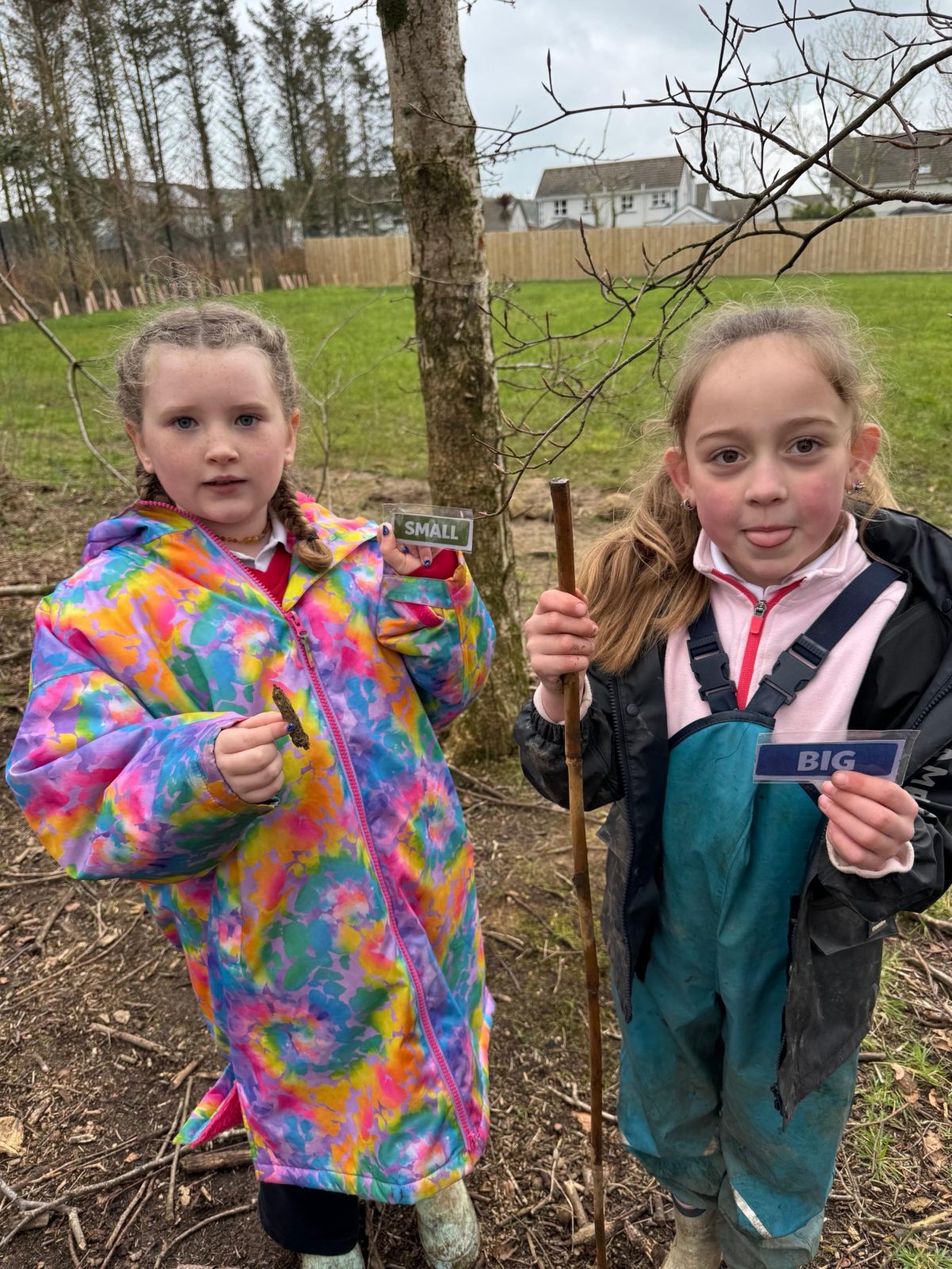 The children took part in a Forest School lesson exploring opposites in nature using word cards such as big/small, rough/smooth, light/heavy, and wet/dry. Working in small groups, they searched the woodland area to find natural examples that matched each pair, comparing textures, sizes, colours, and shapes as they went. The activity encouraged careful observation, language development, and teamwork, with pupils enthusiastically discussing their findings and justifying why each object represented its chosen opposite. This hands-on exploration helped deepen their understanding of descriptive vocabulary while fostering curiosity and connection with the natural environment.