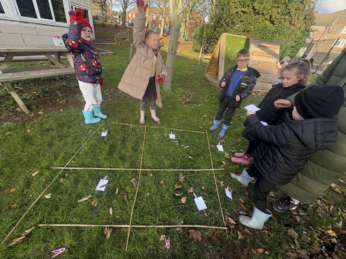 This week in Forest School, our Primary 3 took their maths learning outdoors with a hands-on “Number Grid” activity.