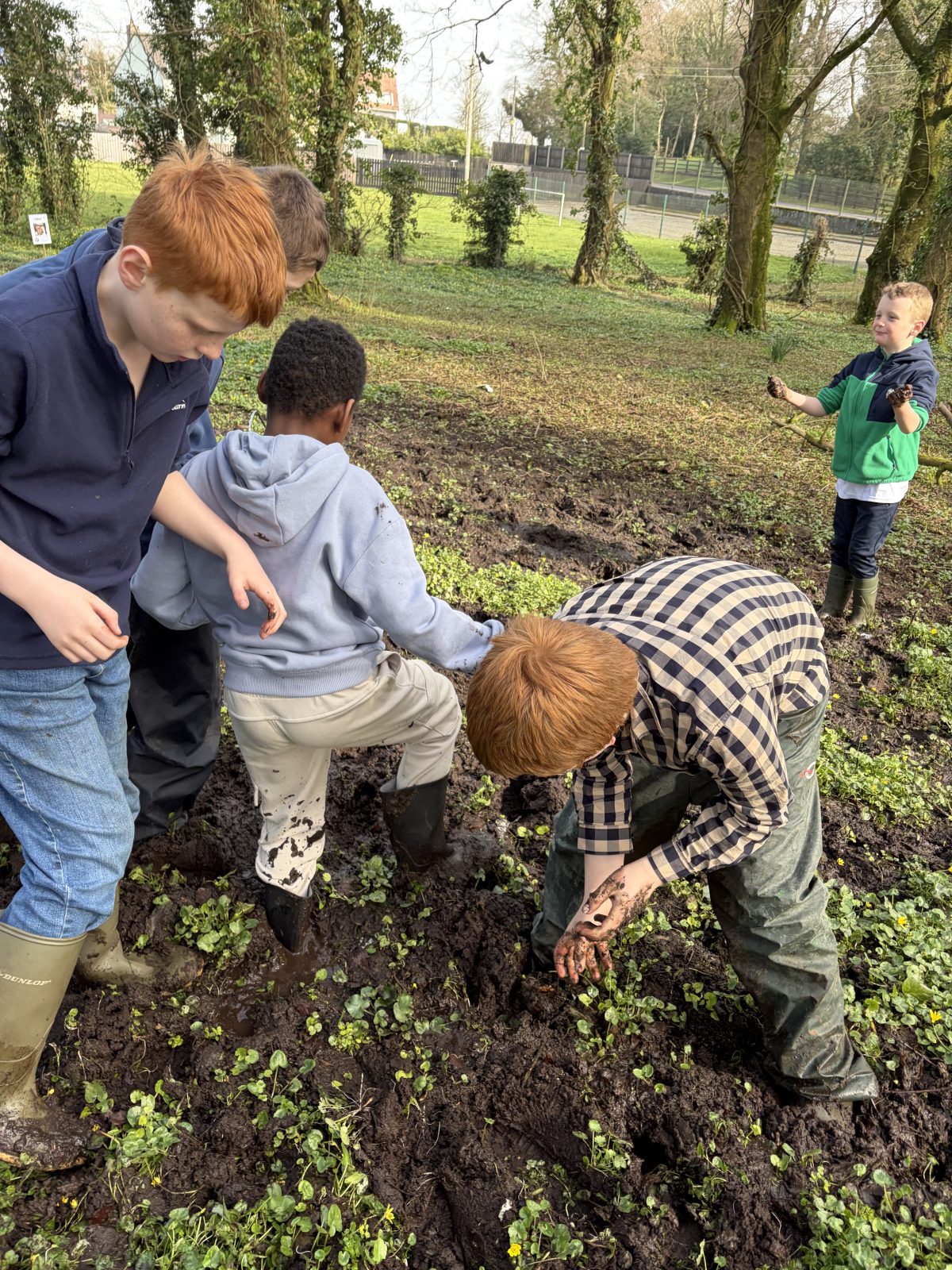 Children came dressed to school in clothes that made them happy, for example, their favourite hobby, favourite colour or favourite football team, for International Day of Happiness. The session began by discussing the clothes we had chosen to wear and why. Children then formed groups with other children with similar hobbies or similar things that made them happy. In these groups children then created a scene based on something that makes them happy. Many children enjoy farming so some of the groups created scenes on this: one group created a tractor, one a field with sheep and another a farm with space for feeding the calves. Other groups created a gaming room, a running track, a fairy garden and a person painting a picture. There was brilliant creativity and imagination used. All groups shared what they had created well with others. Good teamwork demonstrated, including when one child got stuck in the mud and others helped him out! Most children said they had a great time. Two children said they had an okay time and reasoned that this was due to another child trying to put mud on them when they did not want him to.