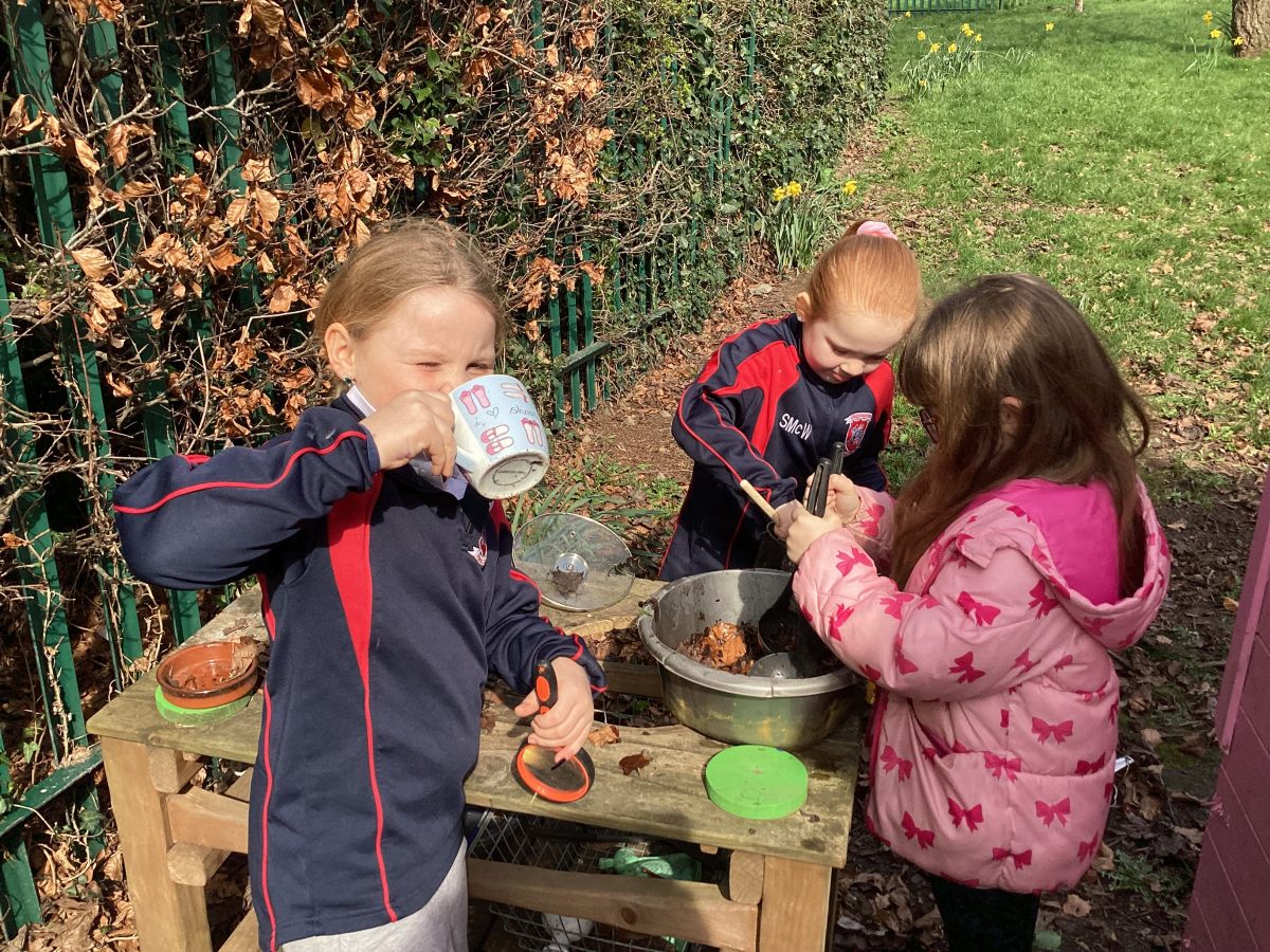 The other group used the mud kitchen, bug area and reading hut. The groups then swapped.