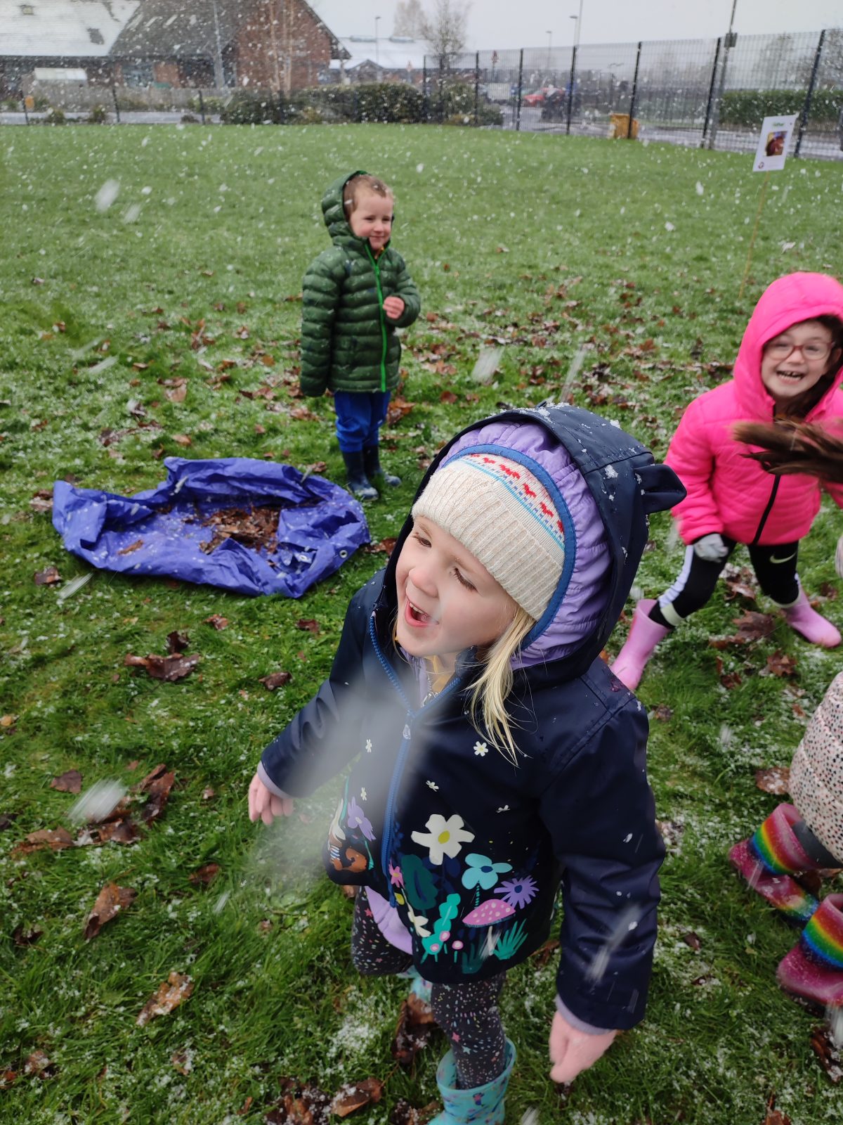 The children have been learning all about hedgehogs and their habitats. To support their learning, they worked together to build cosy hedgehog shelters using tarps, pegs, bamboo, and natural materials. As it was a snowy day, the children had great fun catching snowflakes, which also inspired them to think about how to keep their hedgehogs warm and safe in the cold weather.