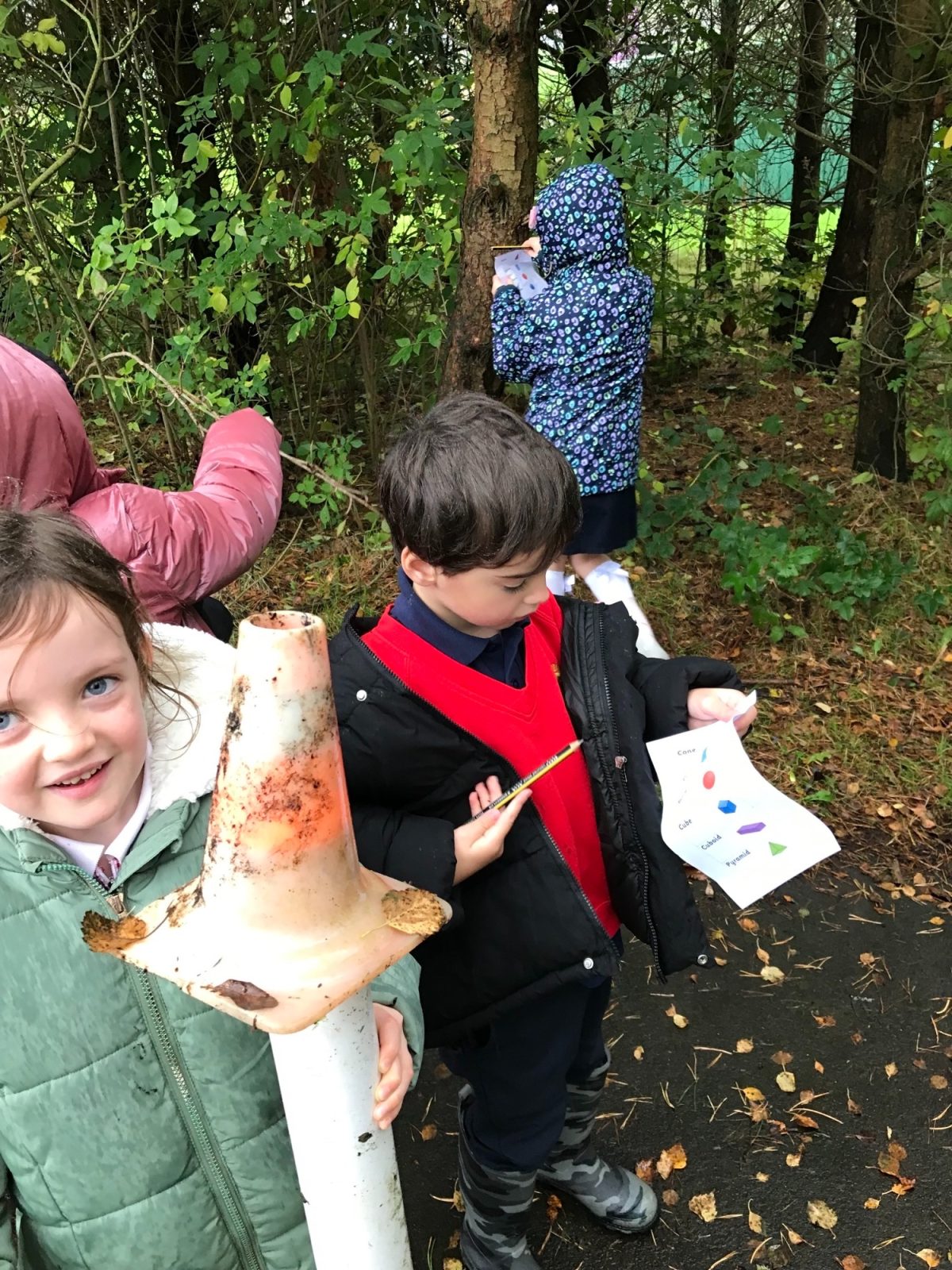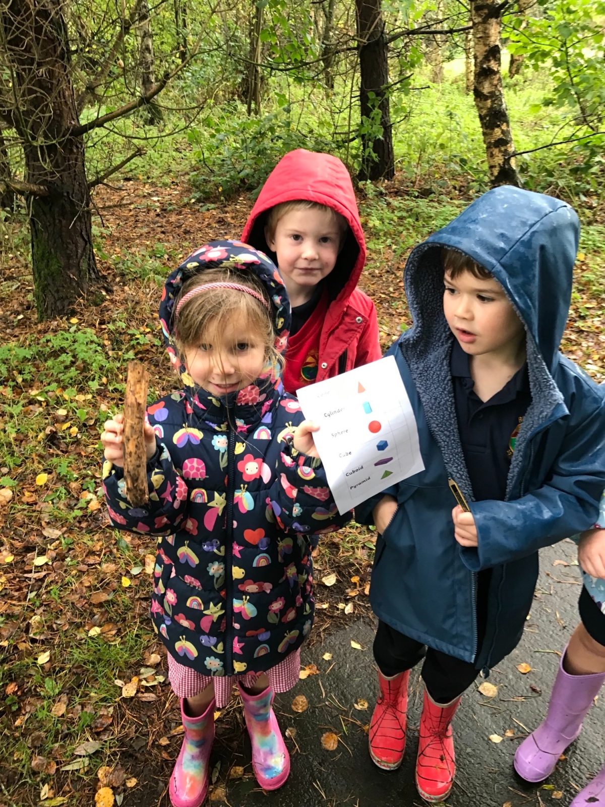 – Children had to work in groups of 3 to find items in our Forest School for each of the 3D shapes