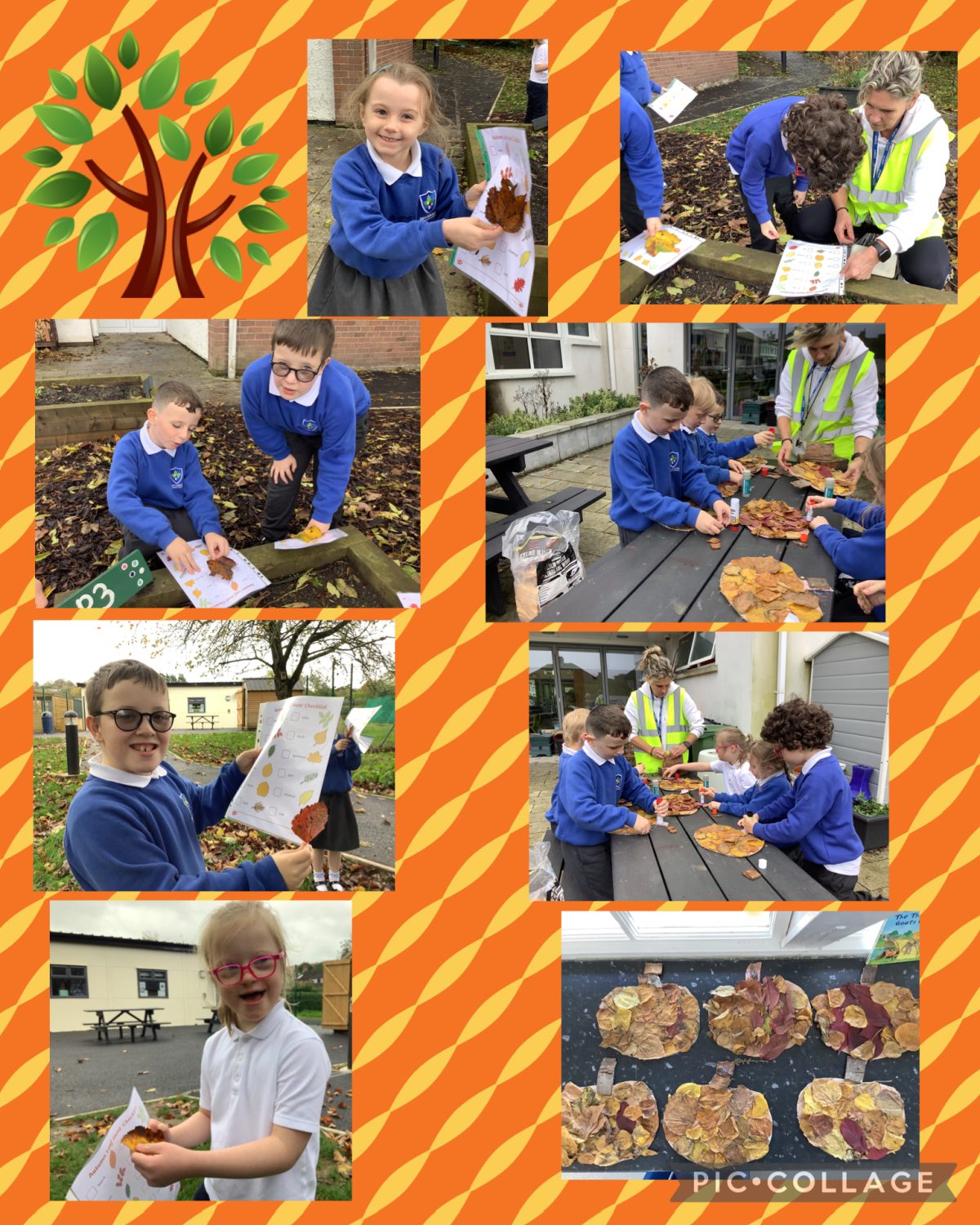 Pupils were making leaf pumpkins. My assistant is learning to become a Forest School leader so it was a joint activity.