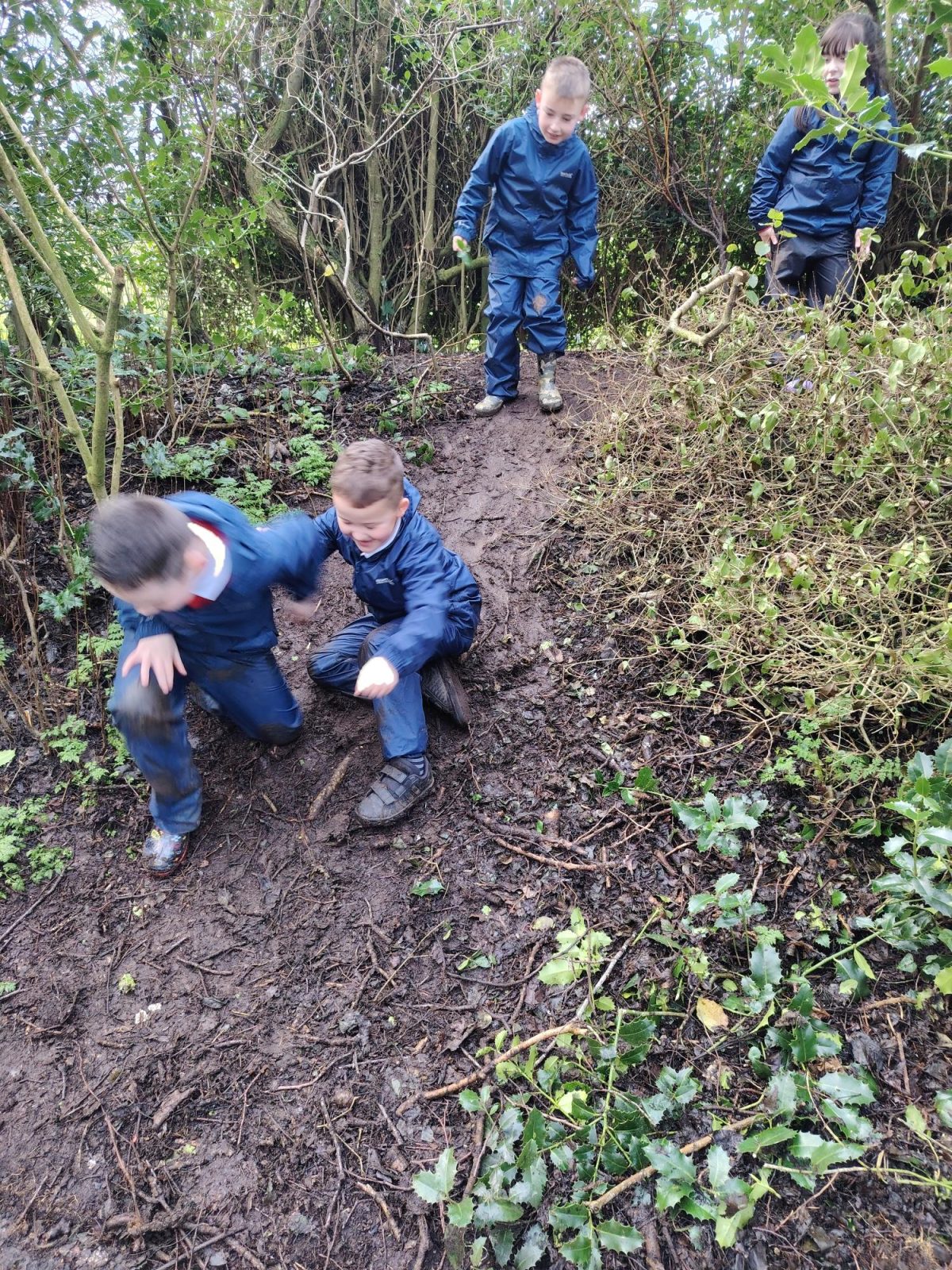 The children found out they could make a slip and slide on the slopes. They had great fun discovering this.