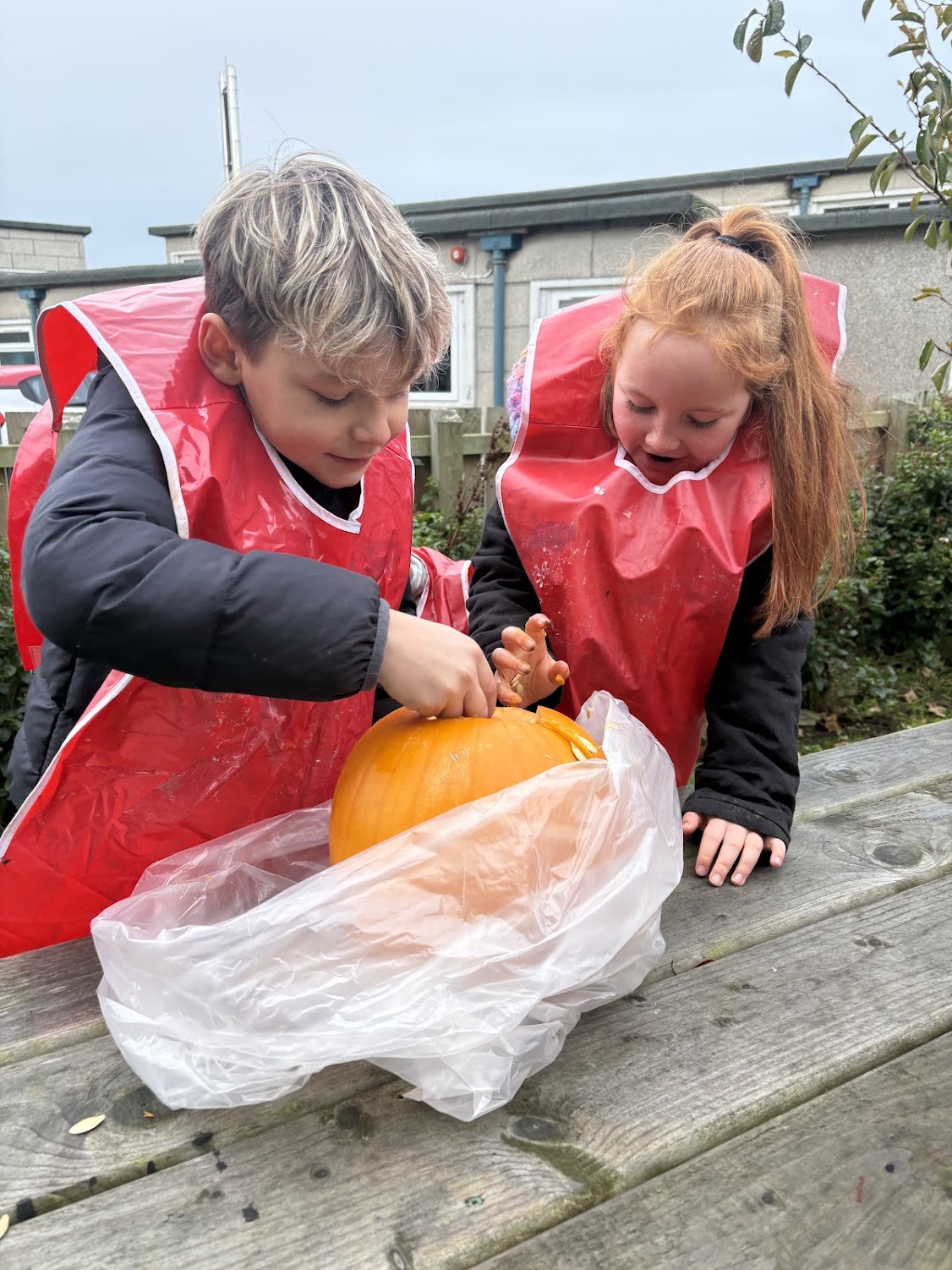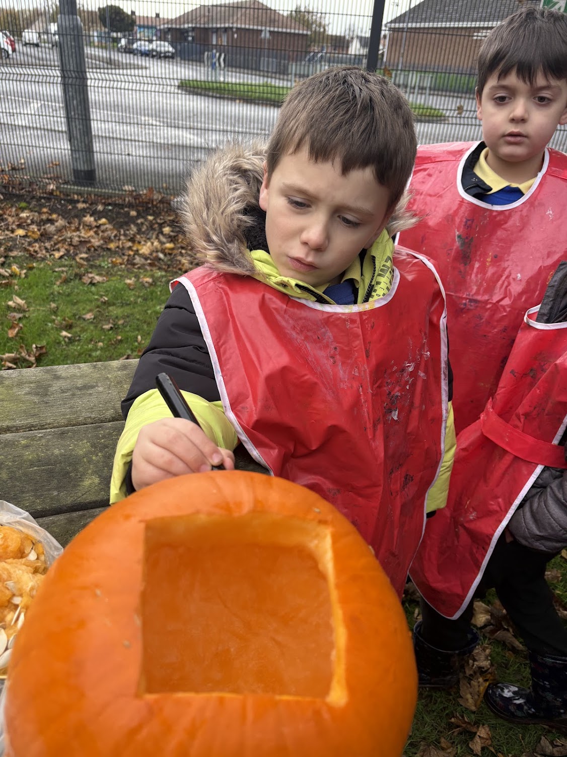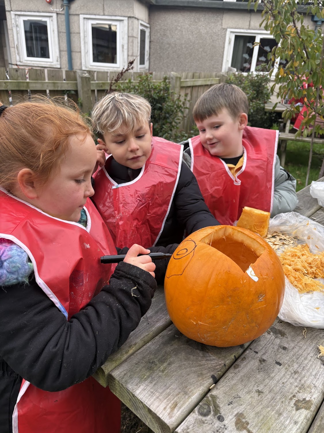 Primary 3 had lots of fun today designing and carving pumpkins! First, we looked at the main shapes that could make up our pumpkin’s face and made a plan!