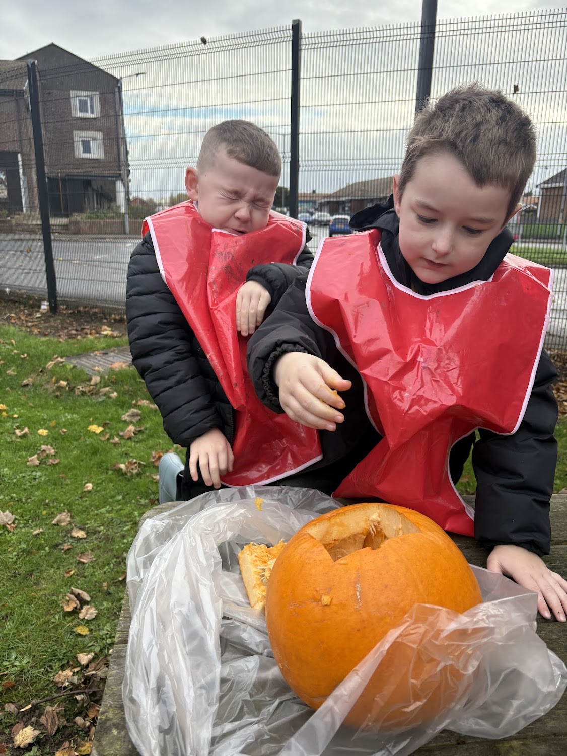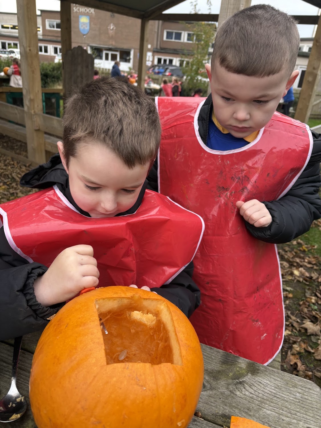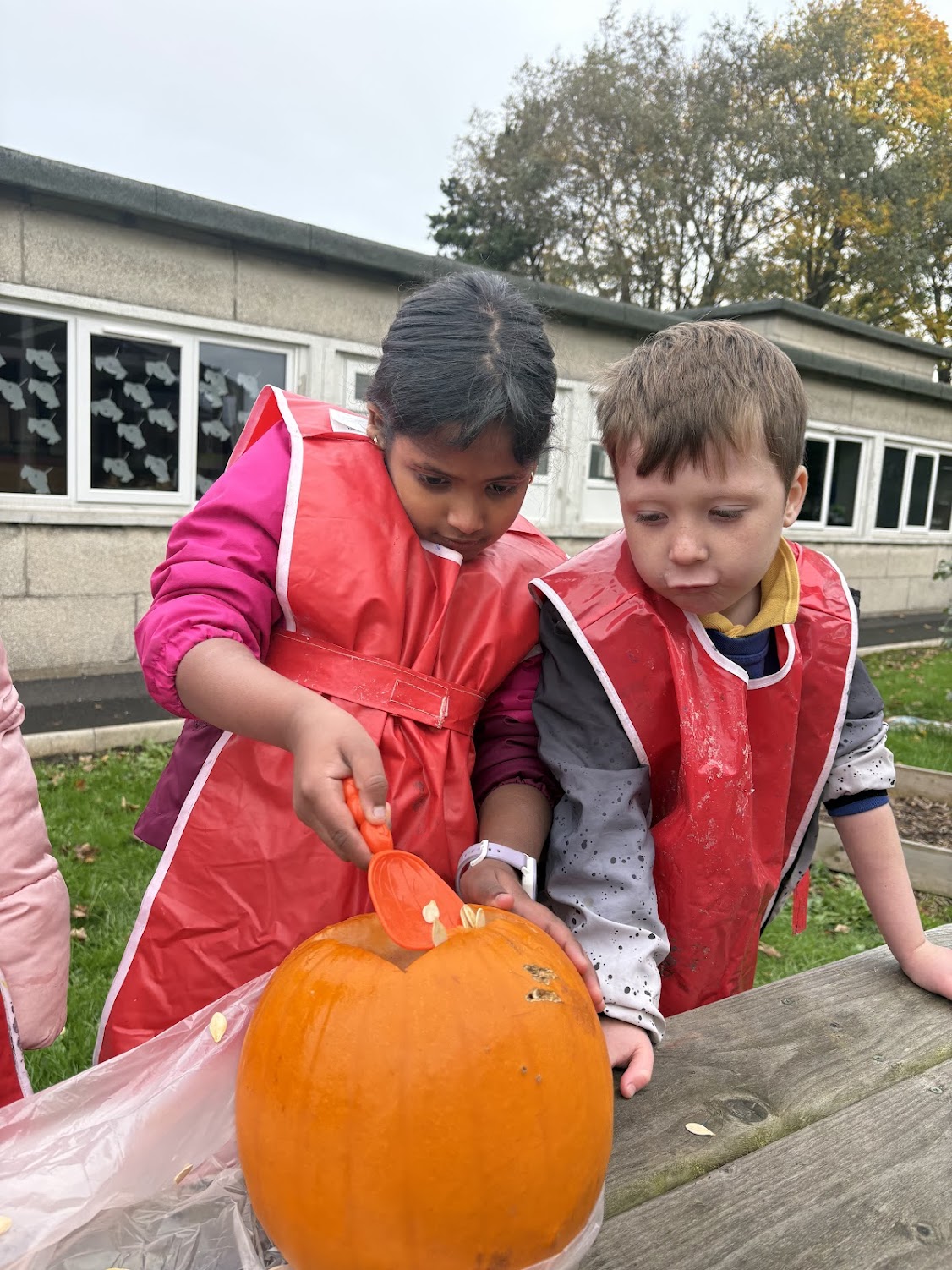 Primary 3 had lots of fun today designing and carving pumpkins! First, we looked at the main shapes that could make up our pumpkin’s face and made a plan!