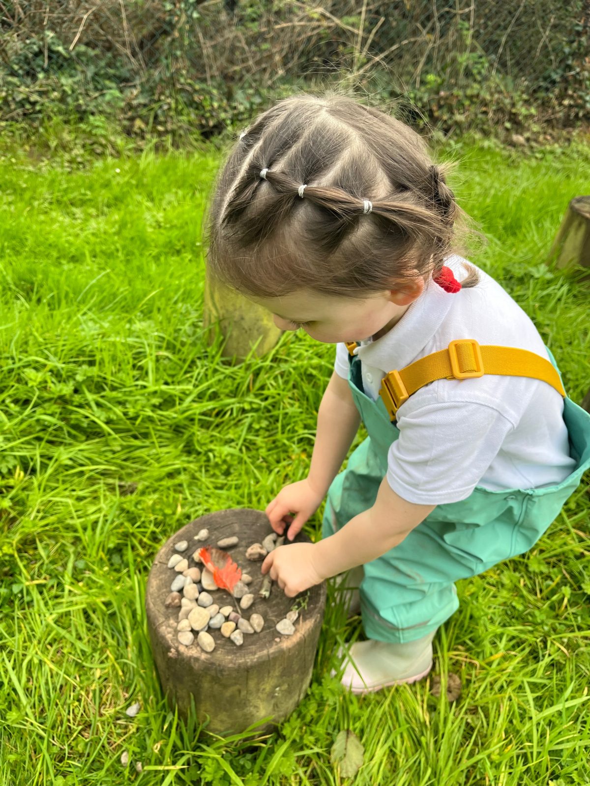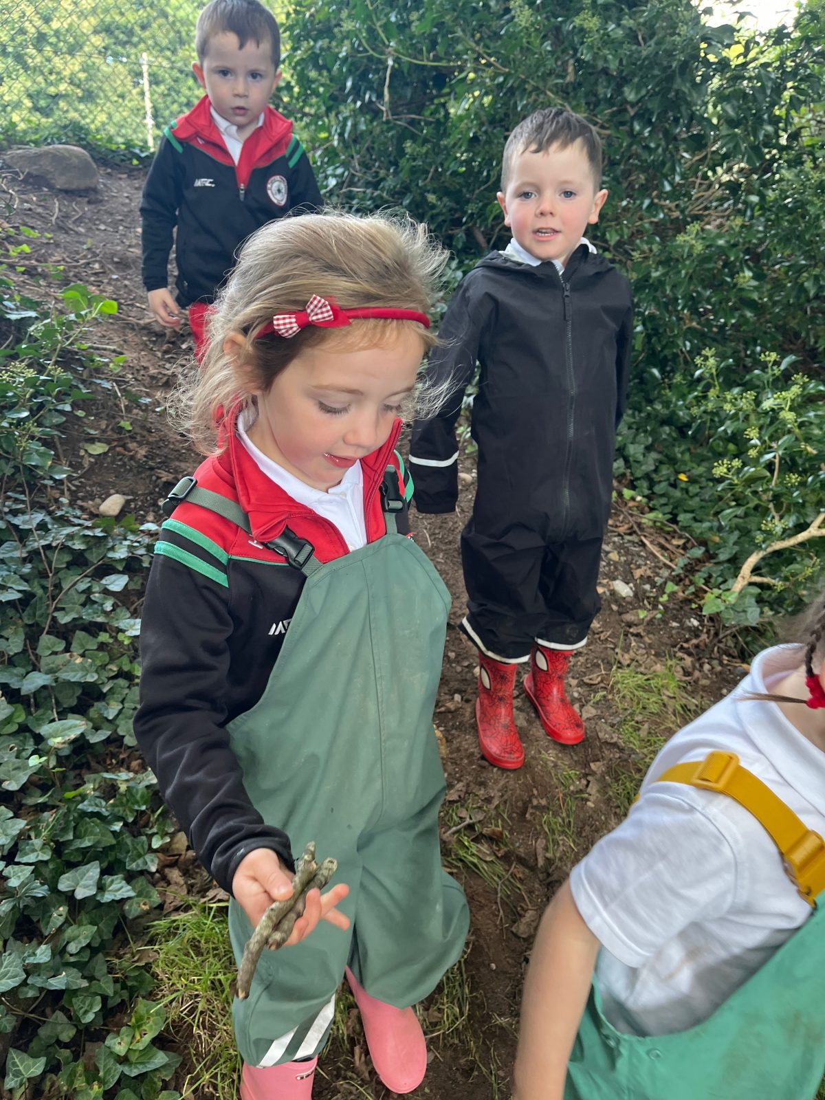 Today our Nature Rangers had so much fun building Fairy Homes for Fidelma! Working in little groups, the children gathered sticks, leaves, grass and berries to make magical places for her to live. Some groups made soft grass carpets, others hung leaf curtains, and a few even used berries as paint to decorate their fairy houses. There were so many creative ideas, and everyone worked together beautifully, sharing and helping each other. We are sure Fidelma the fairy will be delighted to visit each home tonight and sprinkle a little bit of her fairy magic around.