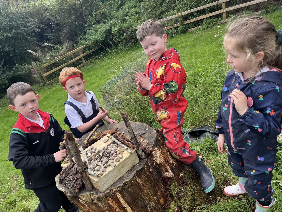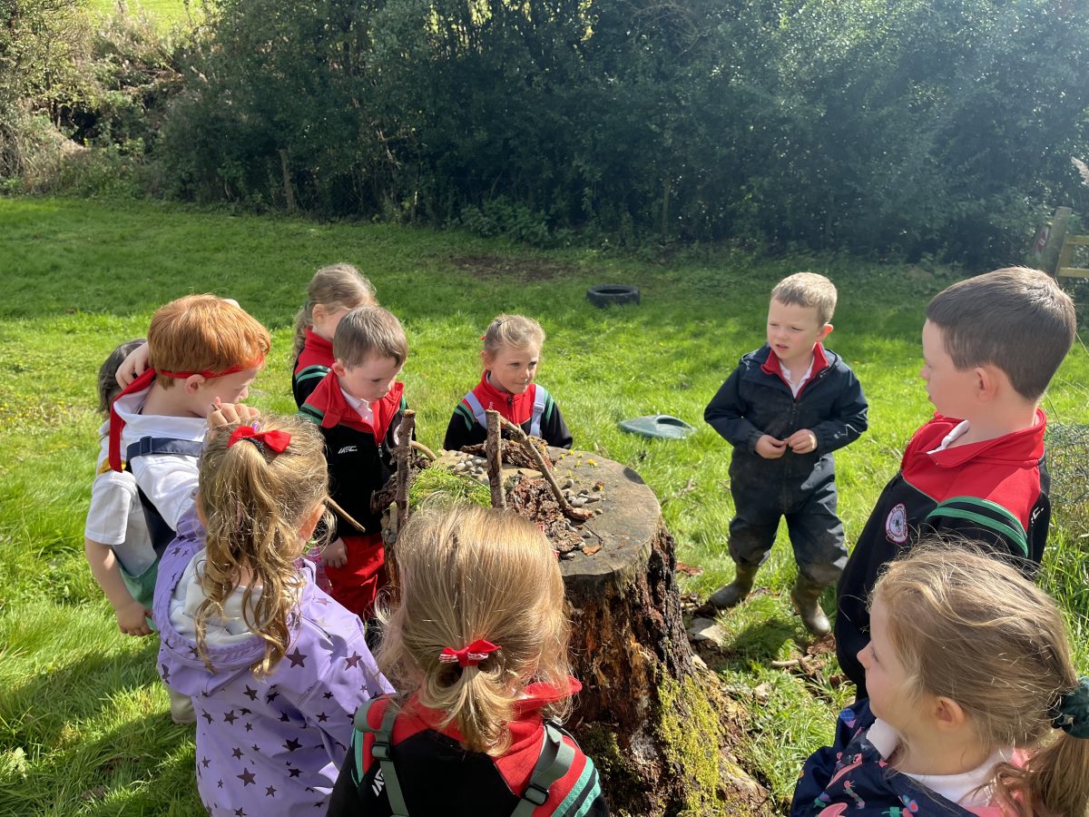 Today our Nature Rangers had so much fun building Fairy Homes for Fidelma! Working in little groups, the children gathered sticks, leaves, grass and berries to make magical places for her to live. Some groups made soft grass carpets, others hung leaf curtains, and a few even used berries as paint to decorate their fairy houses. There were so many creative ideas, and everyone worked together beautifully, sharing and helping each other. We are sure Fidelma the fairy will be delighted to visit each home tonight and sprinkle a little bit of her fairy magic around
