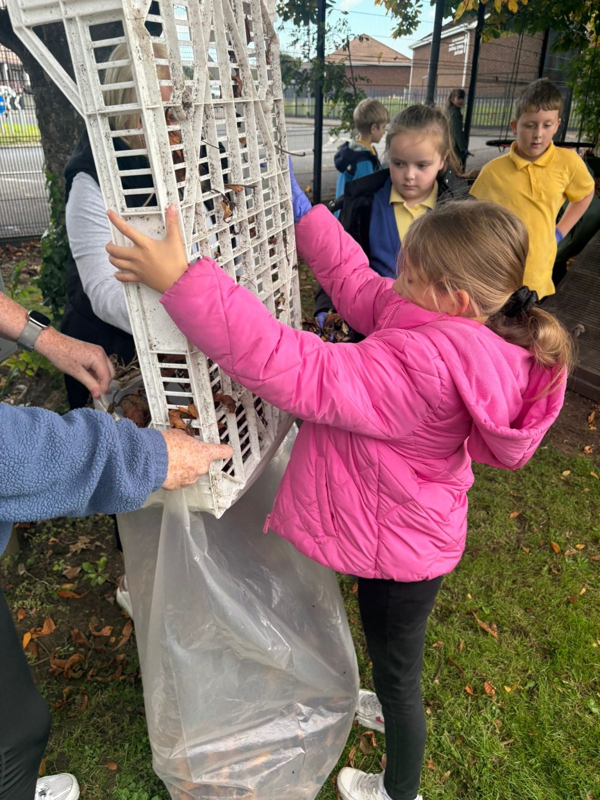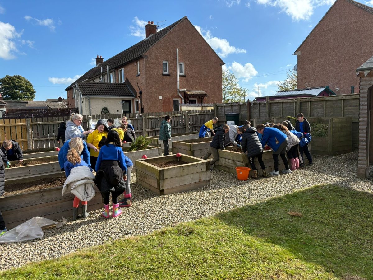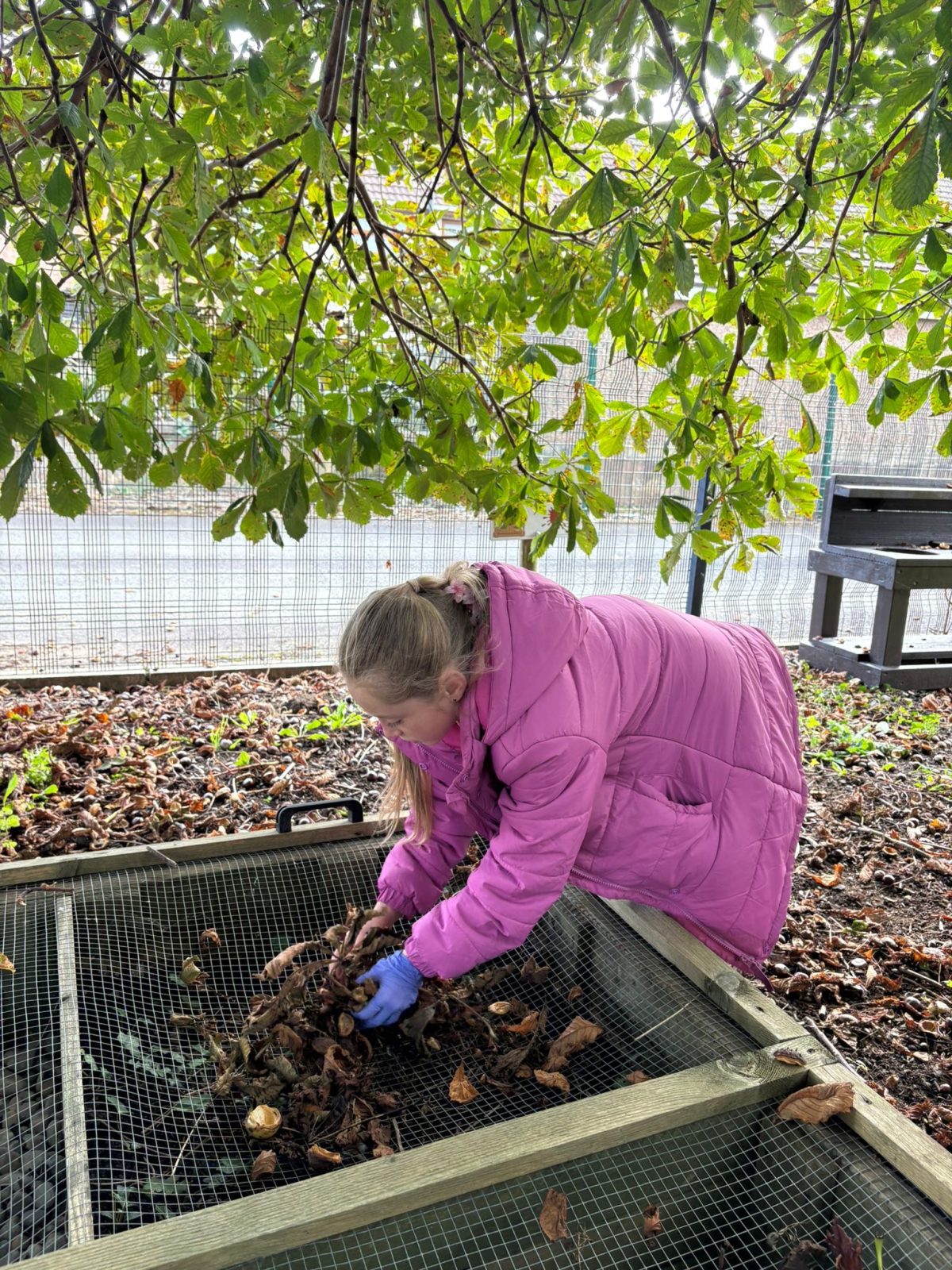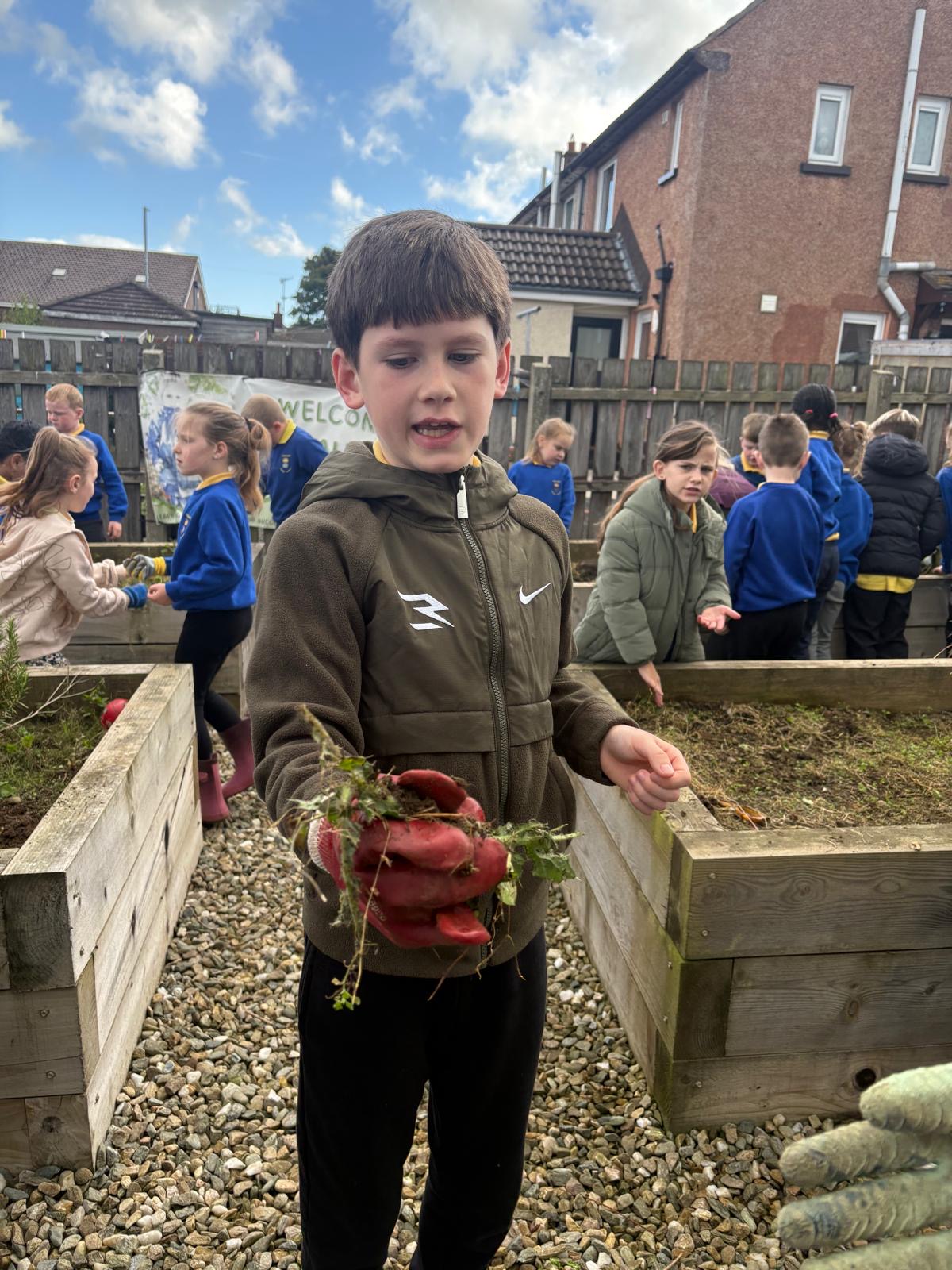 We had our Big Muck In to tidy up the school grounds. The children worked incredibly hard, laying down bark, weeding, tidying the allotment area and even harvesting the last of the potatoes.