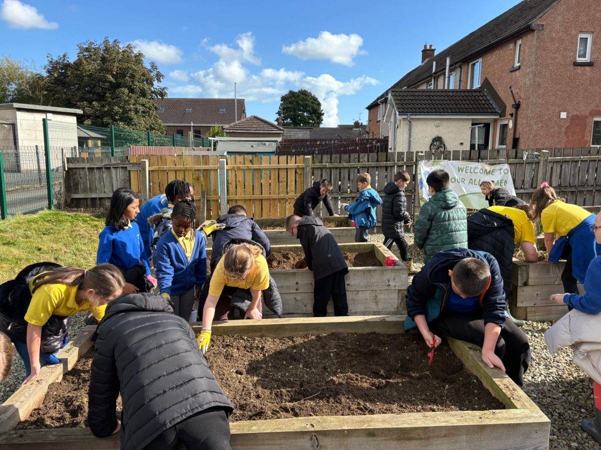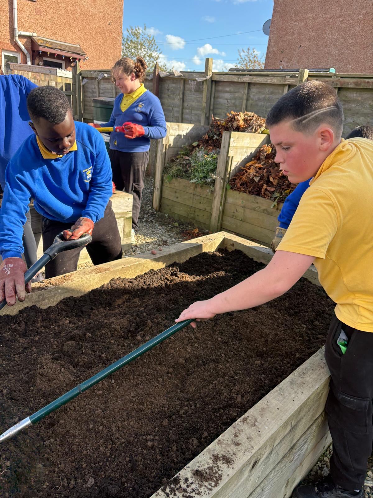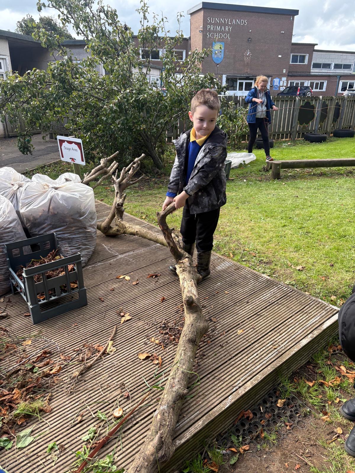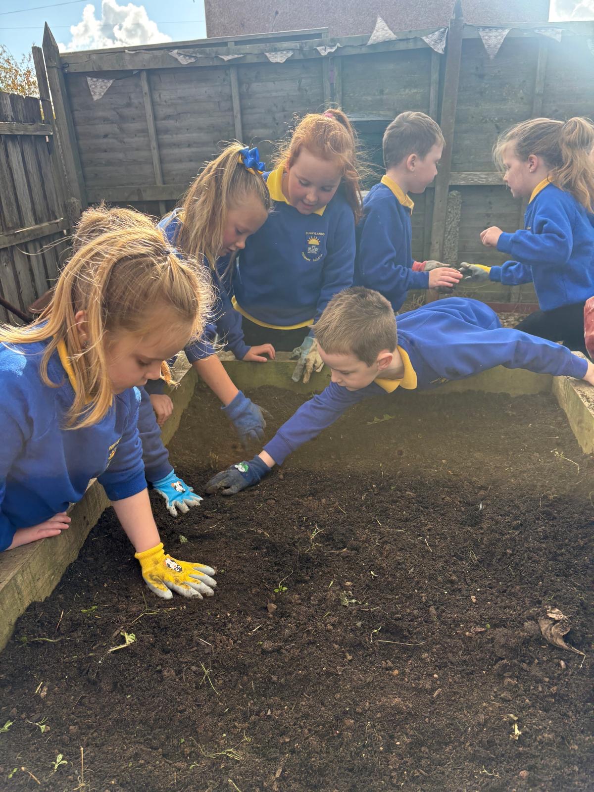 We had our Big Muck In to tidy up the school grounds. The children worked incredibly hard, laying down bark, weeding, tidying the allotment area and even harvesting the last of the potatoes.