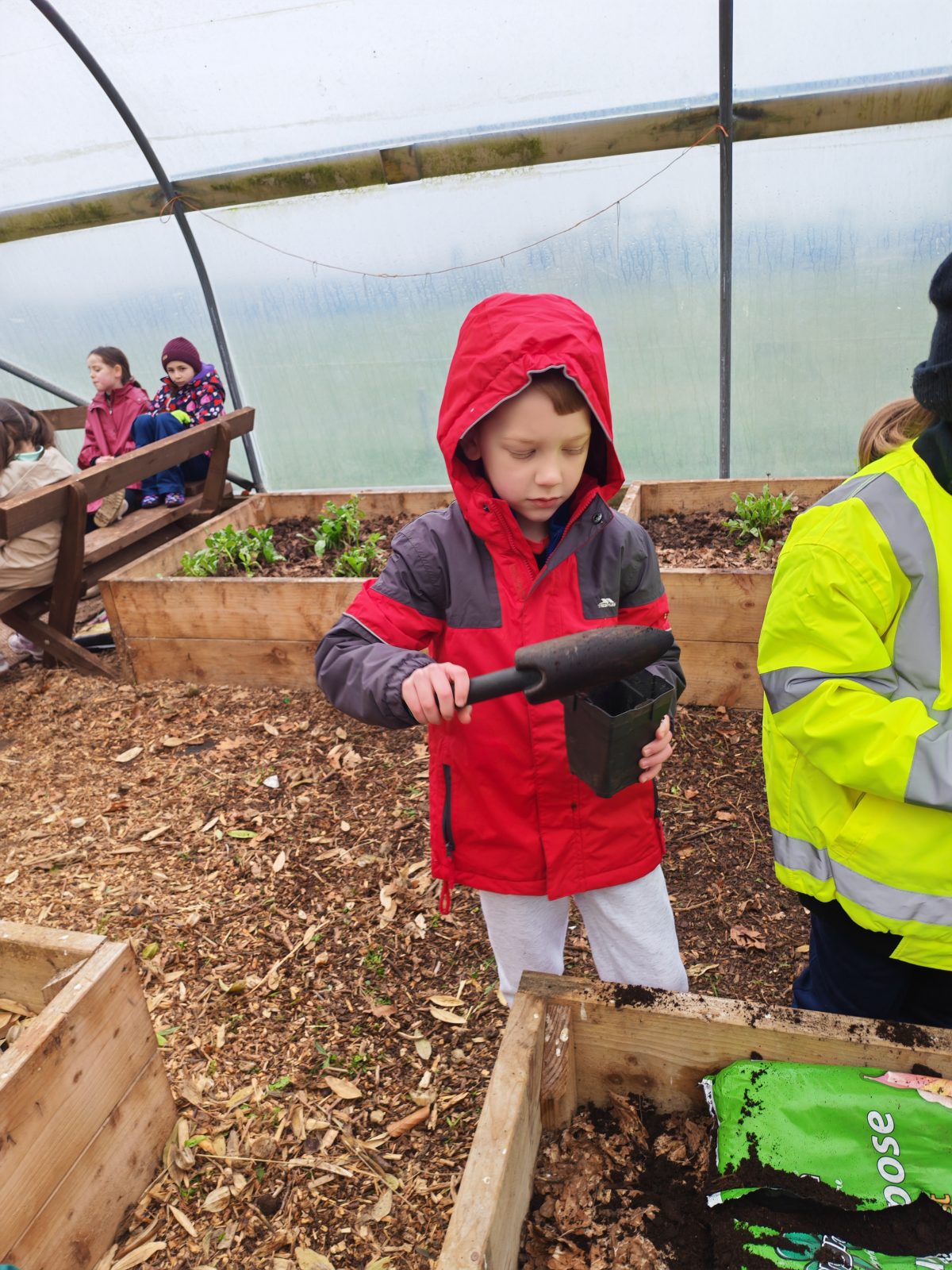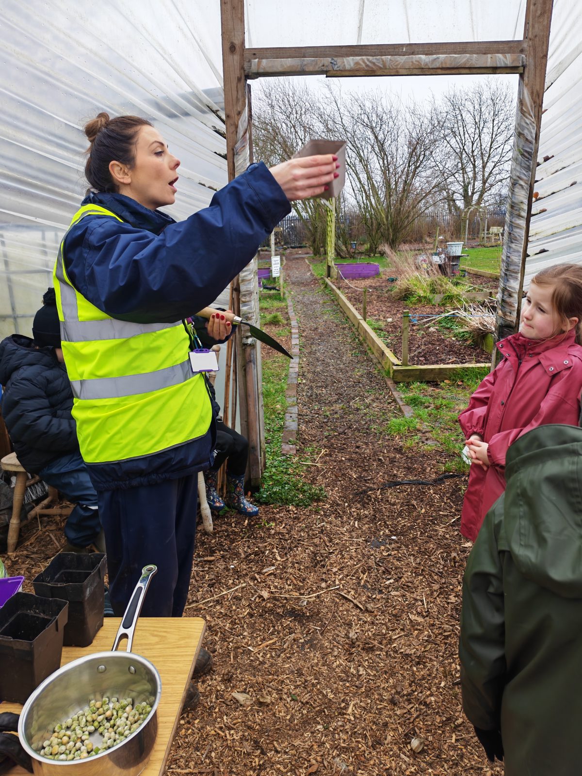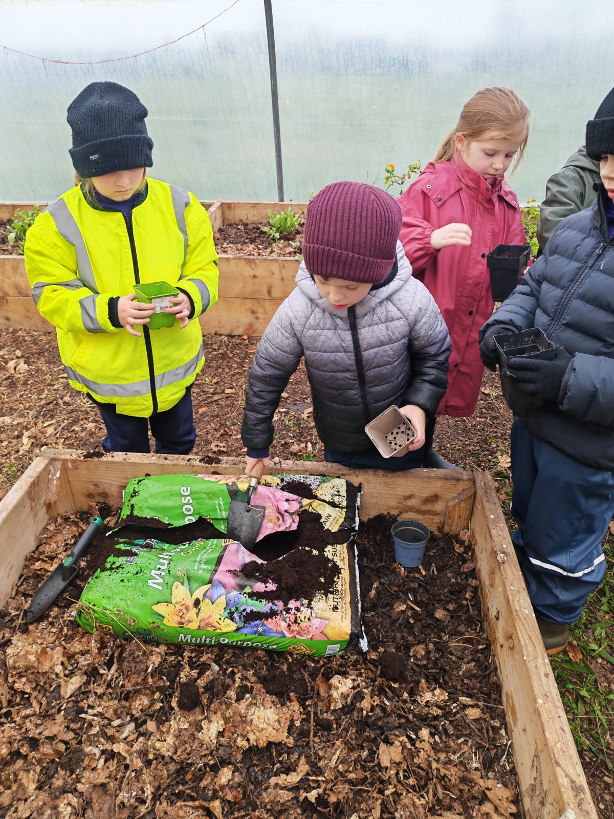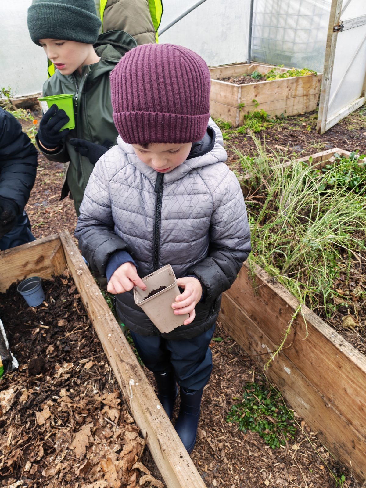 The main activity was planting a pea to watch grow and helped introduce our new topic Food Glorious Food. We entered the green house- sat carefully and they children listened as I gave the instructions and showed what we were going to do. The children each had a pot with their name on it which they filled half way with soil, they made 3 small holes with their fingers and placed one pea into each hole and finally covered with some soil. The new seeds were placed on a tray ready to take to the classroom. To finish we made our way to base where we all sat around the firepit. I had the fire pit base ready- but we discussed fire safety- added the boundaries using bamboo sticks and talked about what a fire might need. This allowed lots of opportunity for talk and discussion. once the fore was lit- the children noted the way the wind was blowing and were able to move out of the way. They made a que with Louise (CA) to get a skewer with marshmallows on it which they in groups of 3 toasted carefully over the firepit. Then they could make smores or pop-mallows if they wished. We ended with a little song- extinguished the fire to ensure we left no trace. The children had a ball for their first lesson and cant wait to do their next.