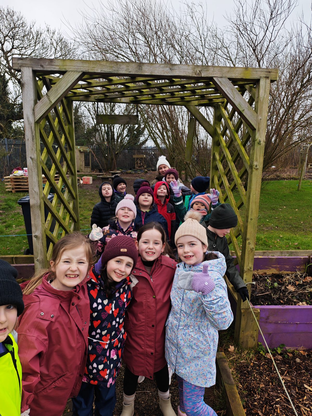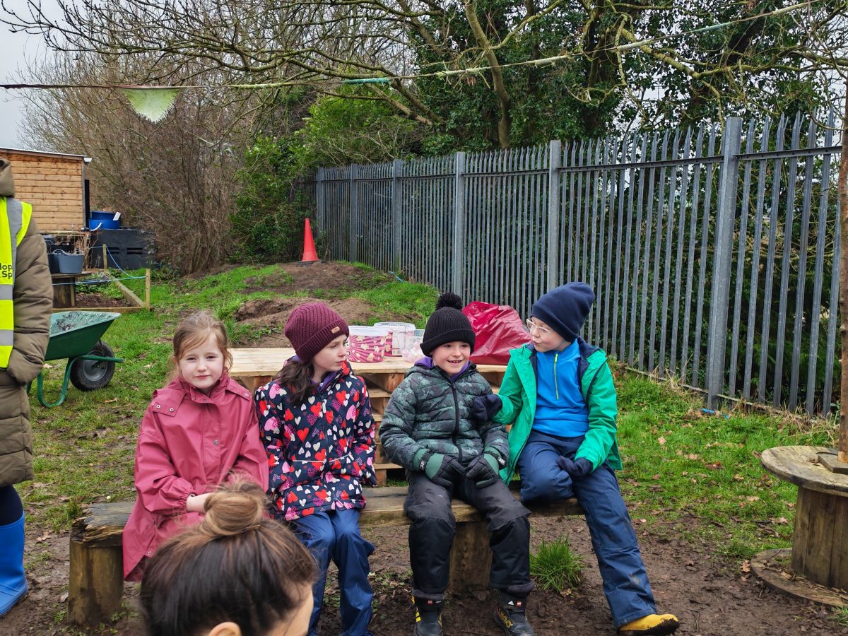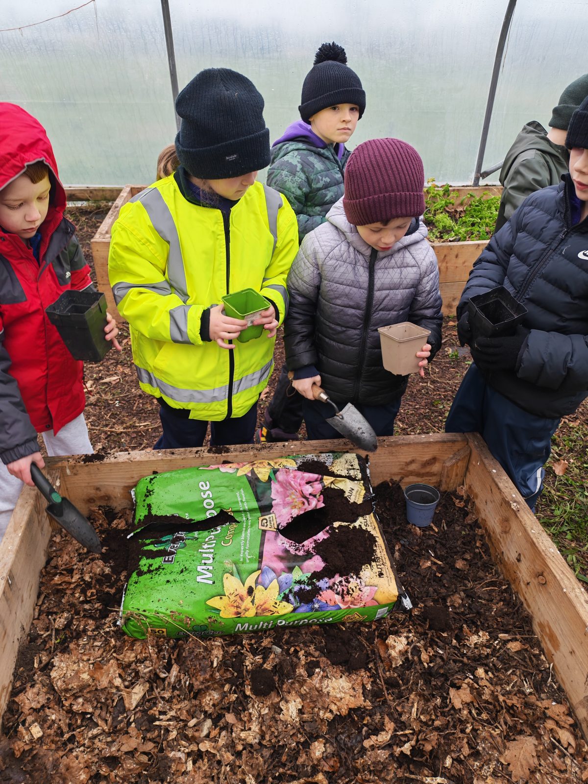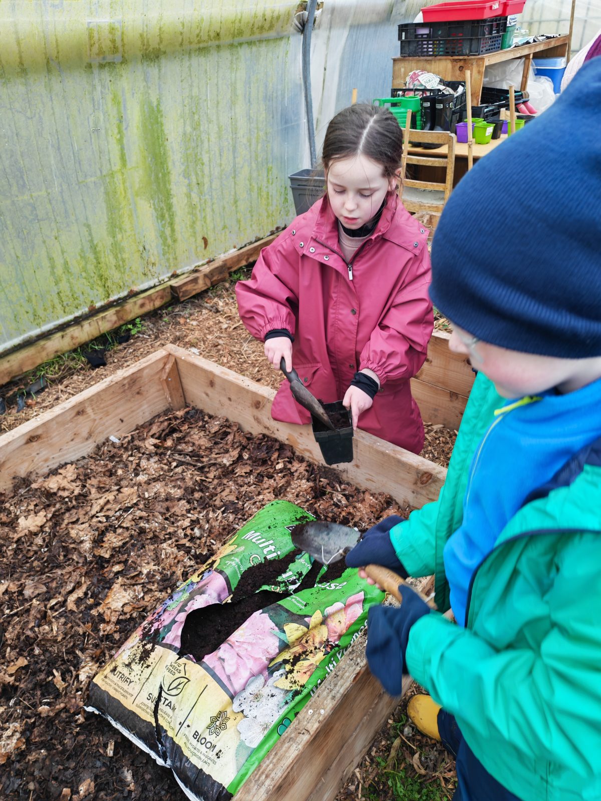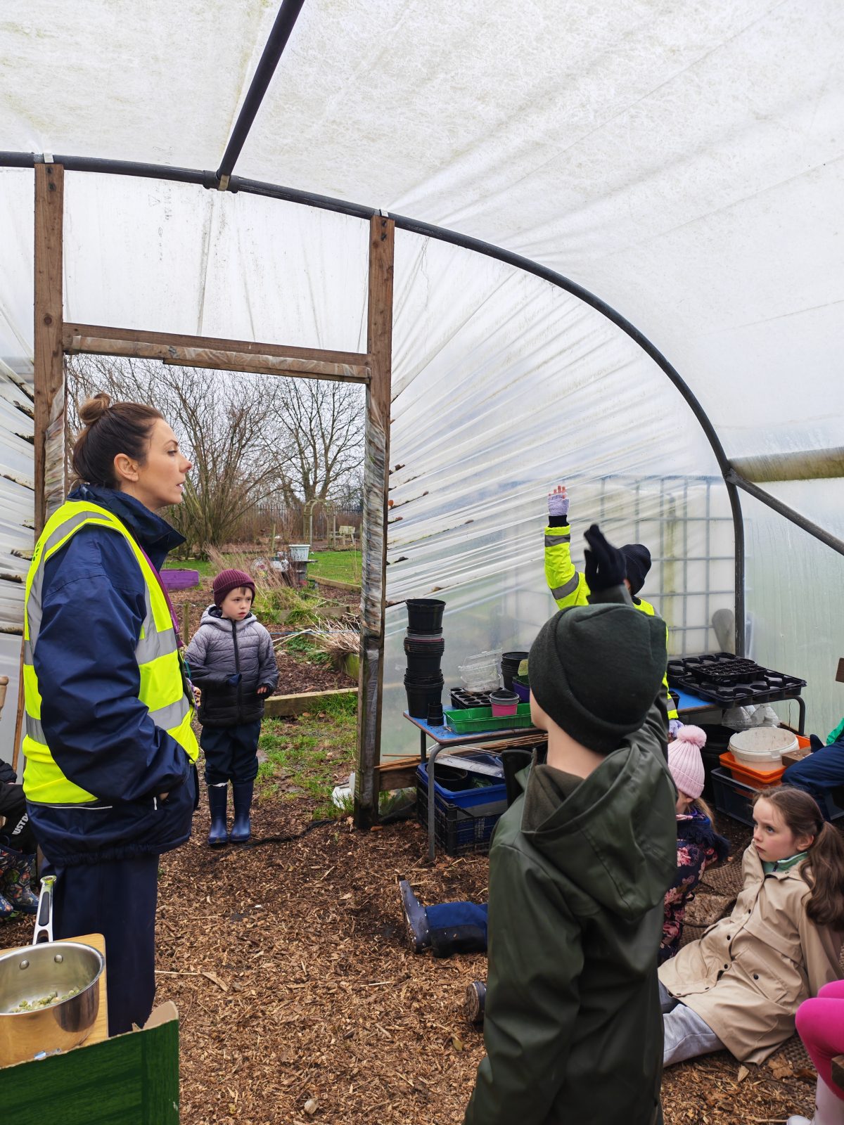 The main activity was planting a pea to watch grow and helped introduce our new topic Food Glorious Food. We entered the green house- sat carefully and they children listened as I gave the instructions and showed what we were going to do. The children each had a pot with their name on it which they filled half way with soil, they made 3 small holes with their fingers and placed one pea into each hole and finally covered with some soil. The new seeds were placed on a tray ready to take to the classroom. To finish we made our way to base where we all sat around the firepit. I had the fire pit base ready- but we discussed fire safety- added the boundaries using bamboo sticks and talked about what a fire might need. This allowed lots of opportunity for talk and discussion. once the fore was lit- the children noted the way the wind was blowing and were able to move out of the way. They made a que with Louise (CA) to get a skewer with marshmallows on it which they in groups of 3 toasted carefully over the firepit. Then they could make smores or pop-mallows if they wished. We ended with a little song- extinguished the fire to ensure we left no trace. The children had a ball for their first lesson and cant wait to do their next.