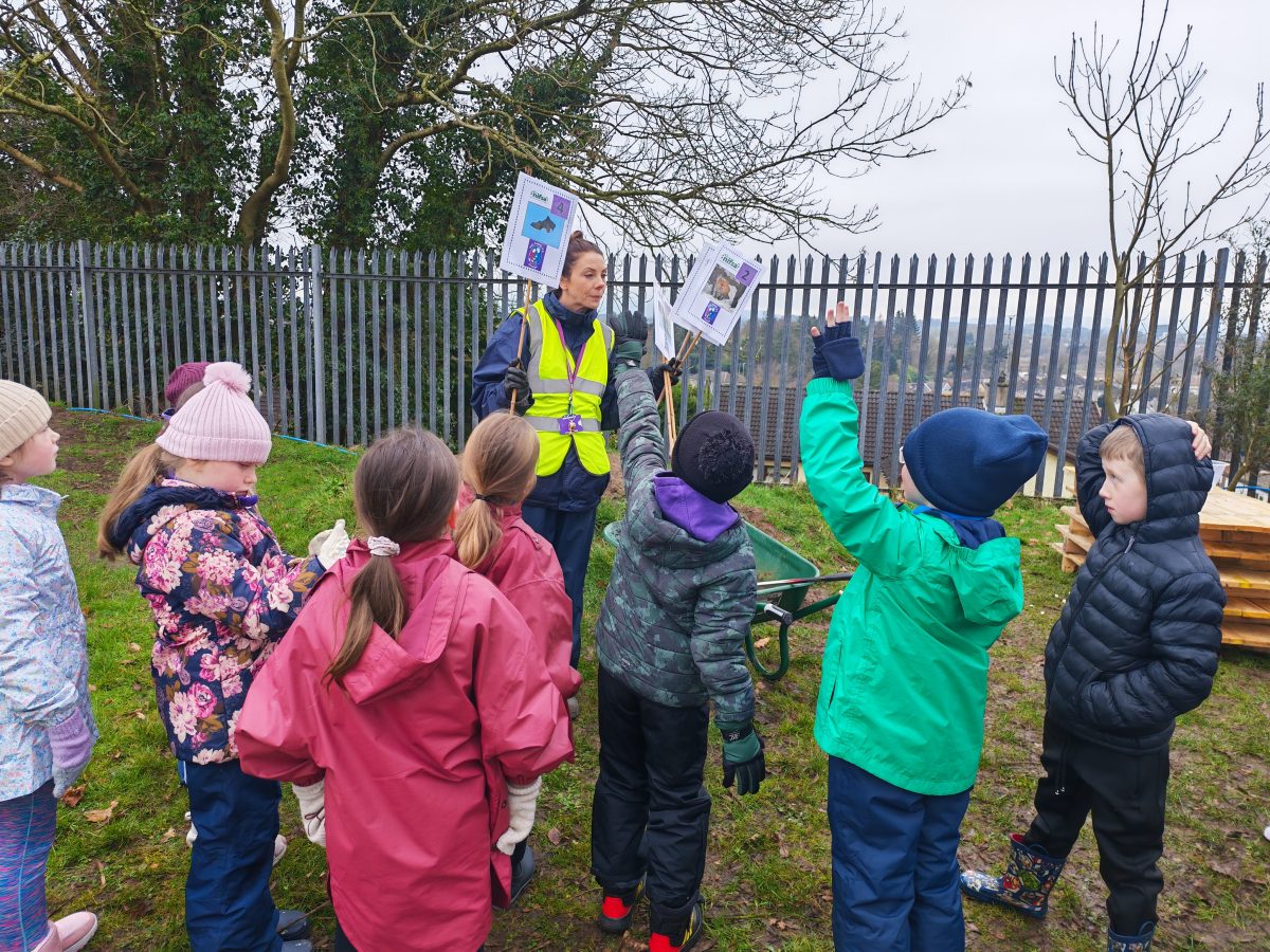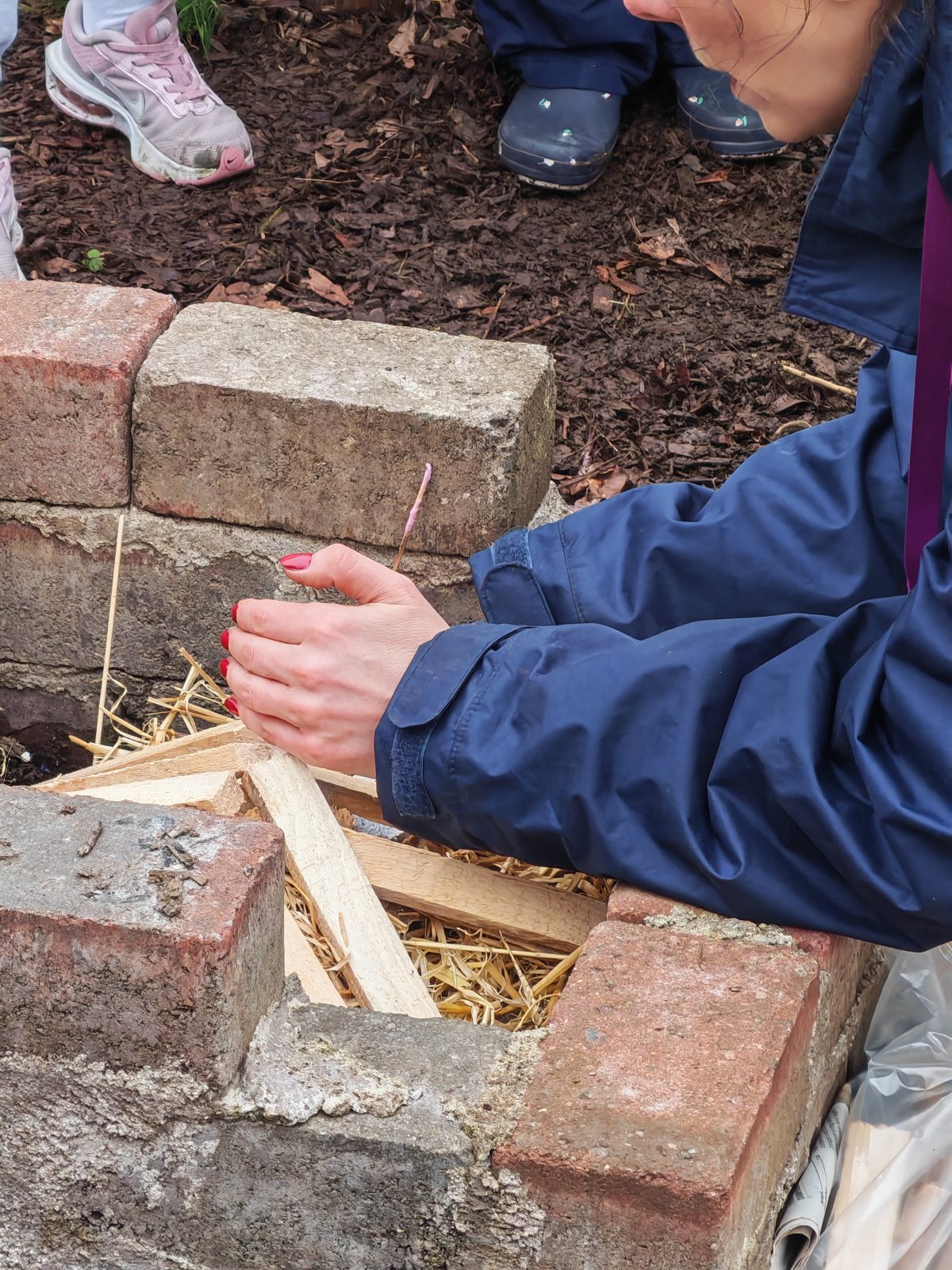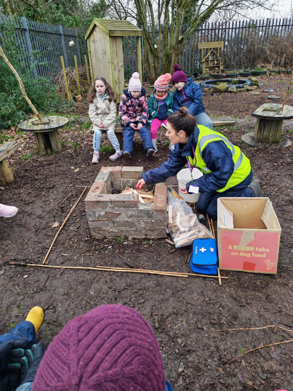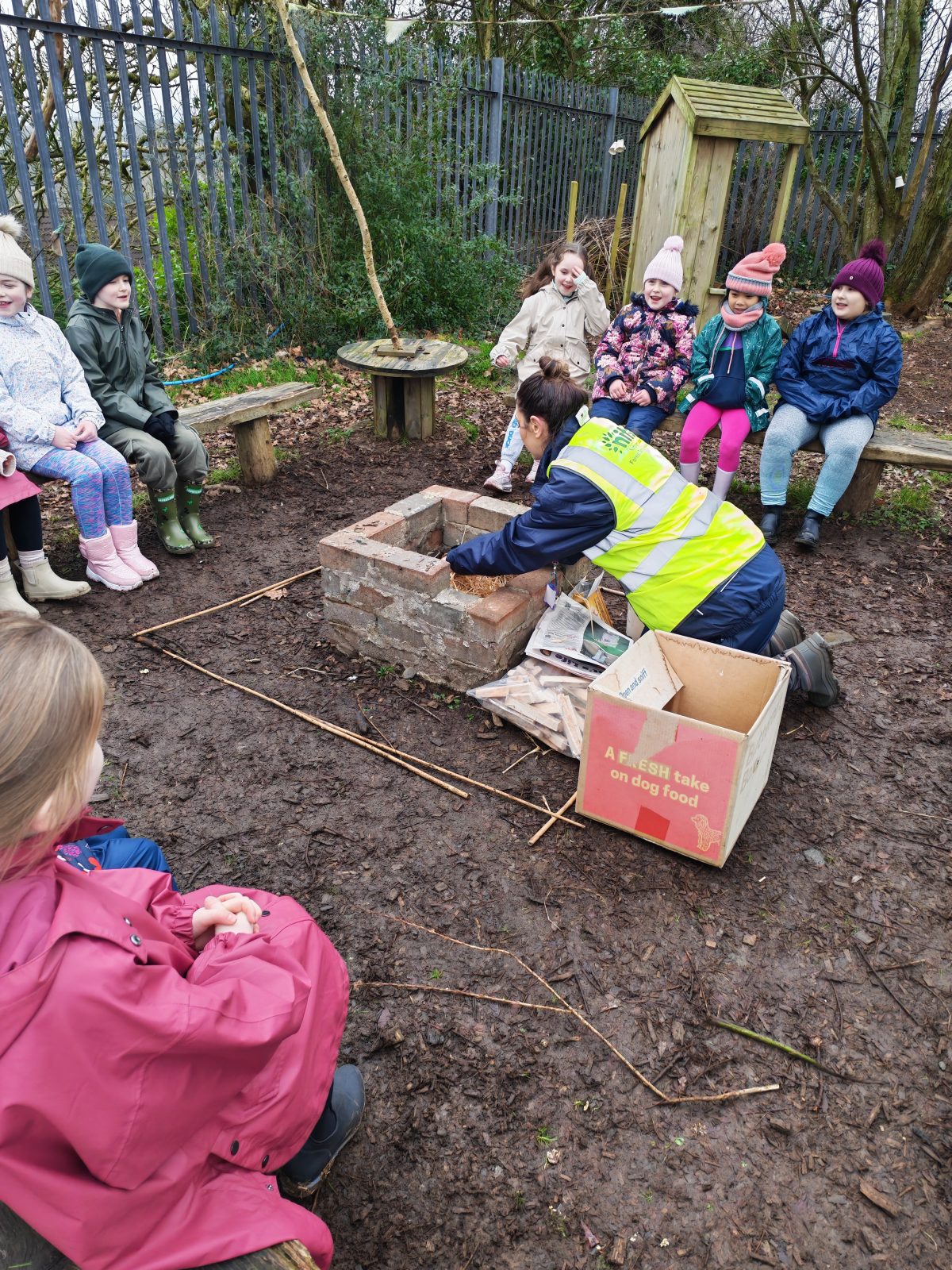 Children were introduced to the rules of Forest Schools. We discussed boundaries- whistle meaning- we gave expectations of what Forest School is and how we behave while completing a lesson and how we show respect to the area in which the lesson is taking place. Firstly, the children set out the boundary markers- and because we are doing houses and homes/food we talked about the habitats/ diets of the animals on the markers. With these in place we played an opening game of Beans on Toast- this was a great way to warm up.