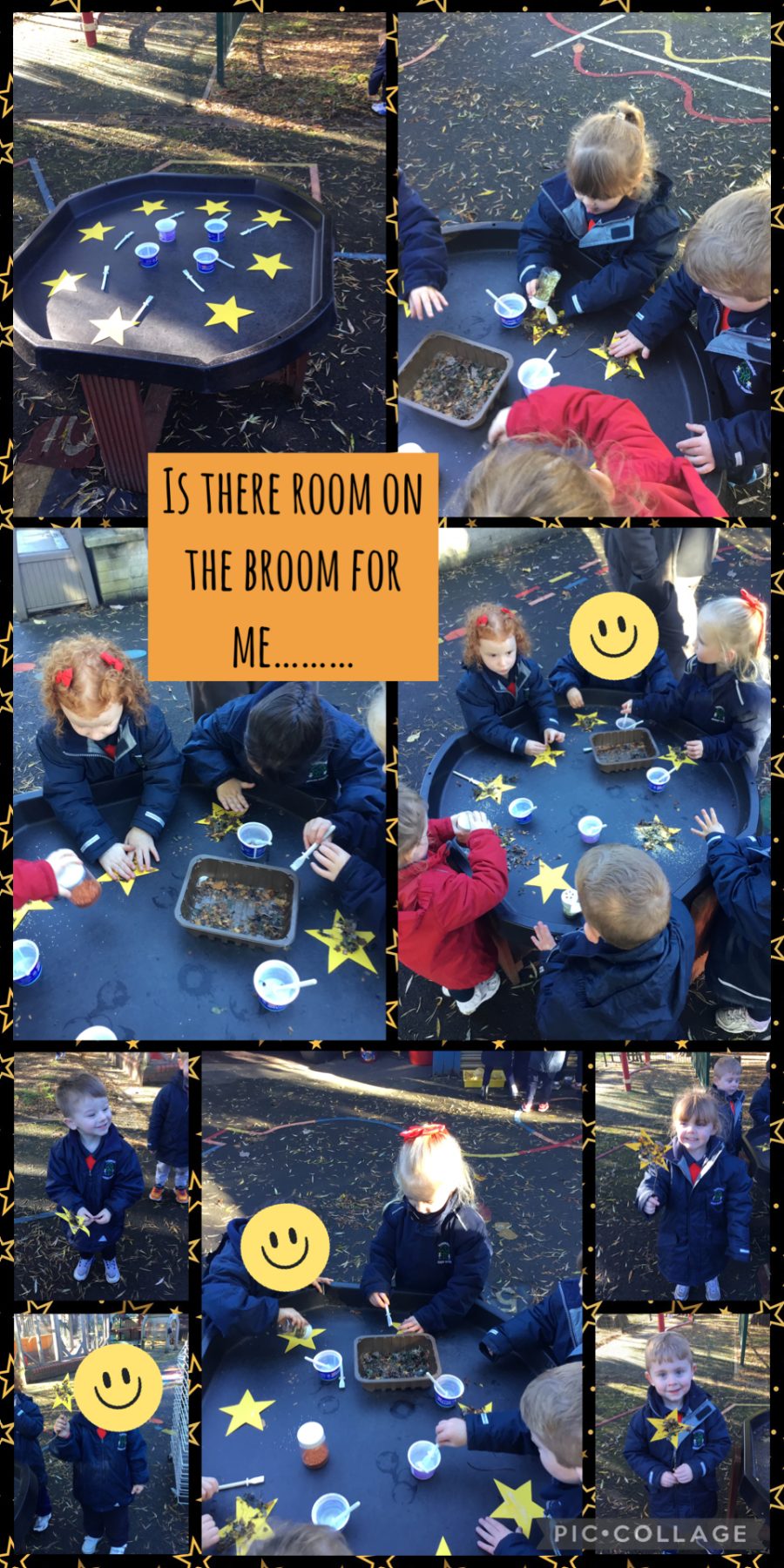 After reading room on the broom we thought it would be a great idea to make our own wands using some of the materials from around our garden, we loved this activity and playing with our wands afterwards!!