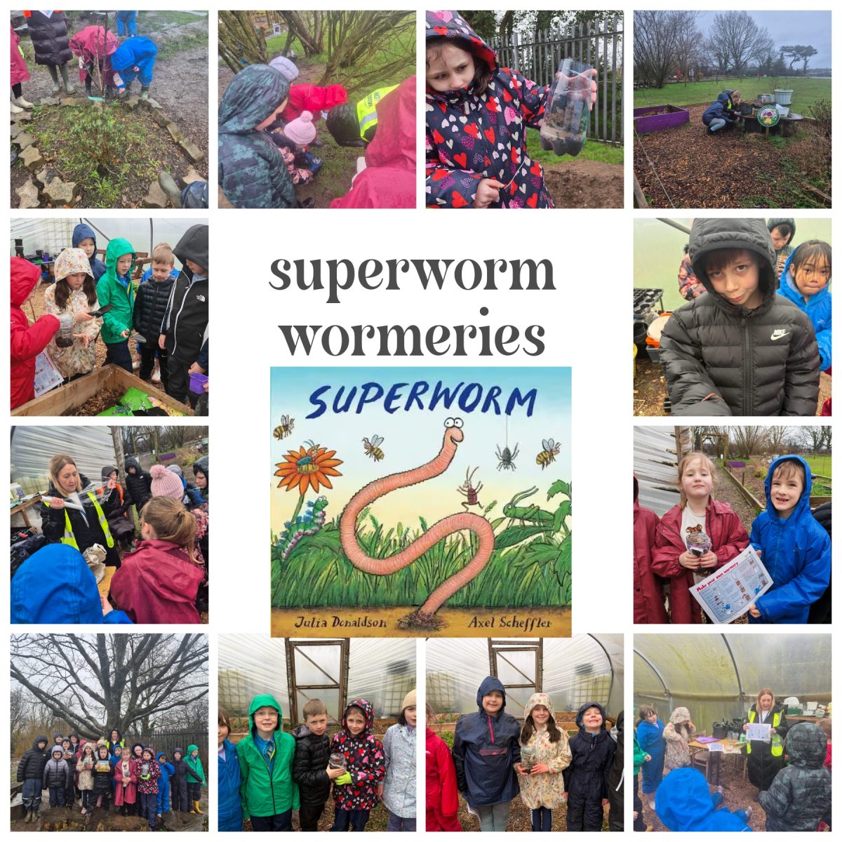 On world book Day we braved the rain to complete a lesson based on Julia Donaldson’s book Superworm. We read the story, found lost worms and them used recycled bottles to create our very own wormeries to see how Superworm tunneled through the soil.