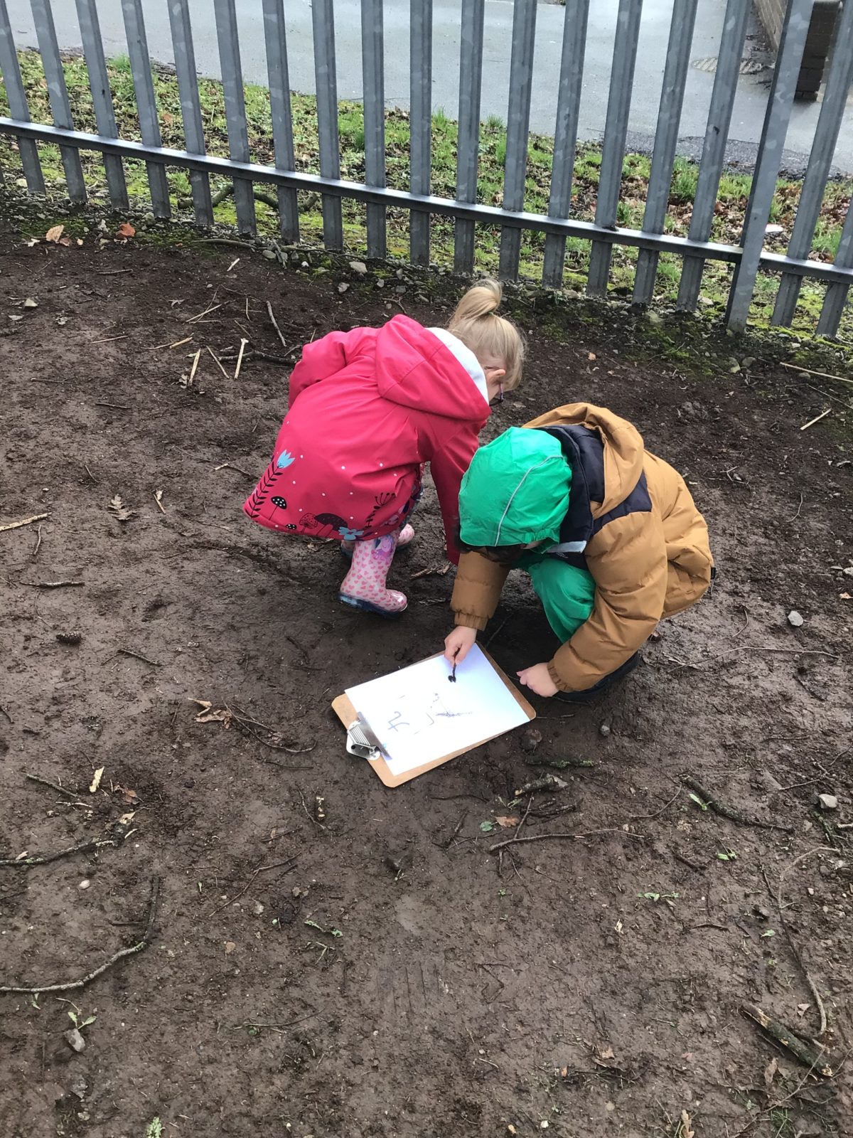 The children used sticks and mud to practise the formations of Chinese Numbers on paper.