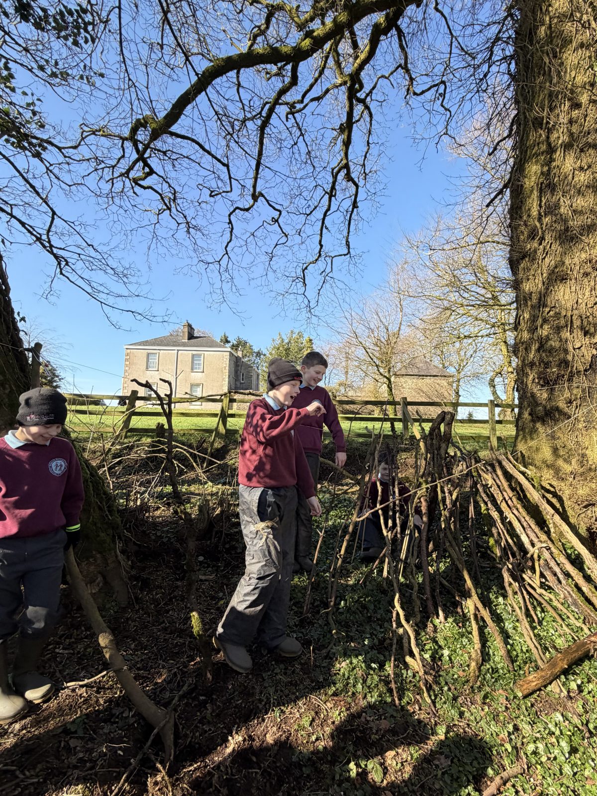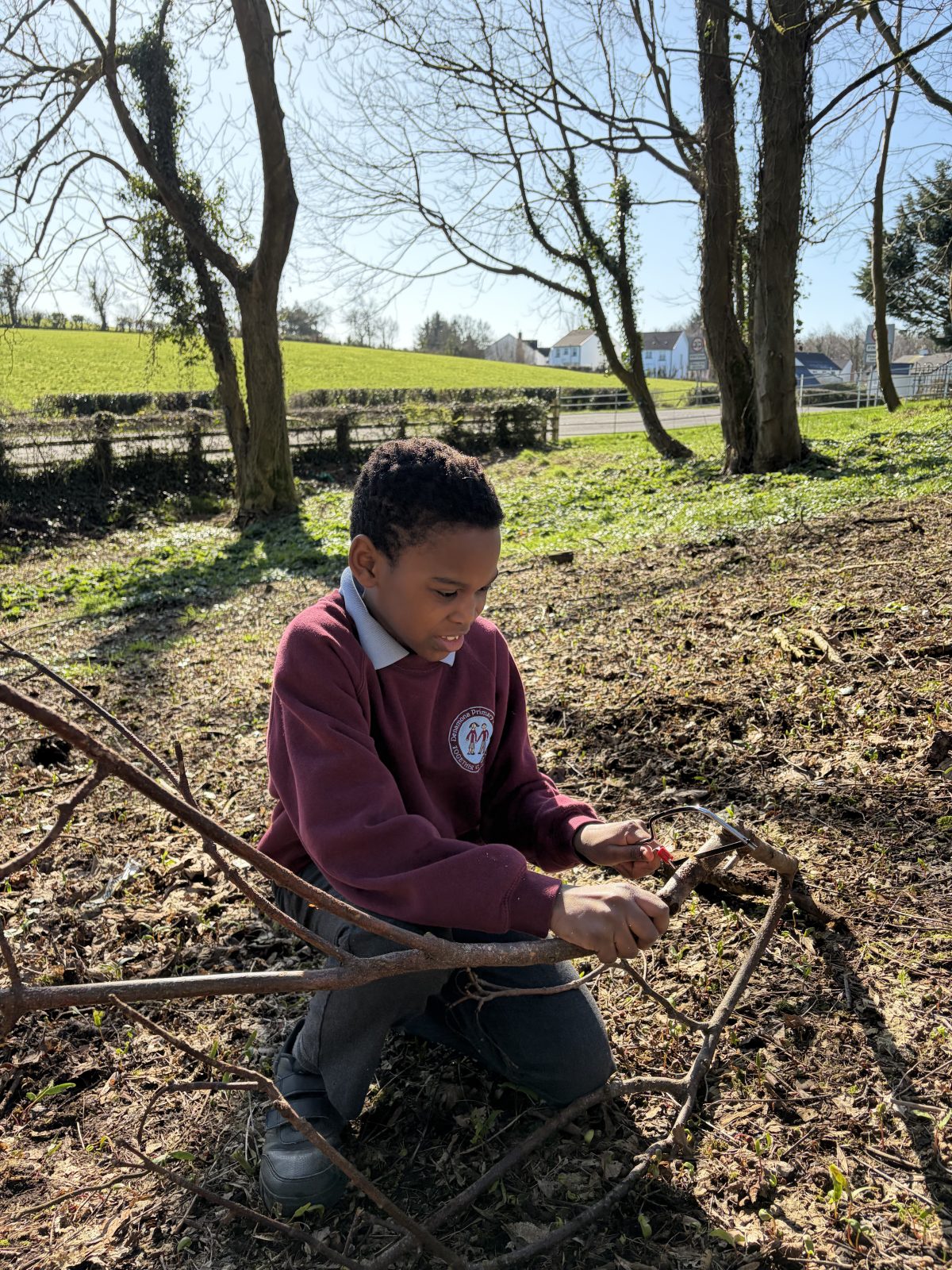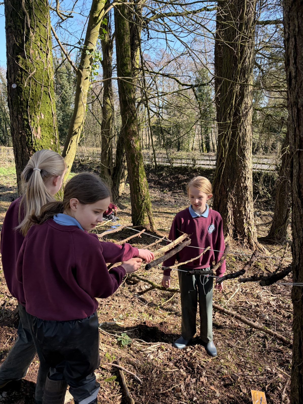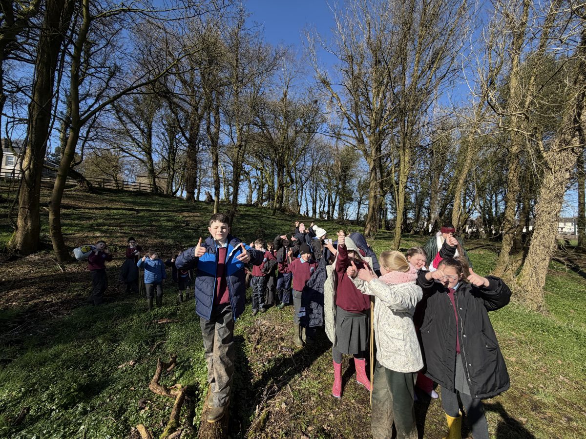 As part of P6/7’s topic of ‘Wonderful, Marvellous Me’, they have been learning about the geography of Northern Ireland. After discussion about what tourist attractions there are in NI, children were set the challenge of creating one of the attractions named. Along with using the natural resources within the forest, groups were also given string, scissors and a saw. This was the first time children were given saws to use. The expectations of how to use a saw carefully were clearly established and children utilised them well. All children thoroughly enjoyed this activity, with all giving it a thumbs up!