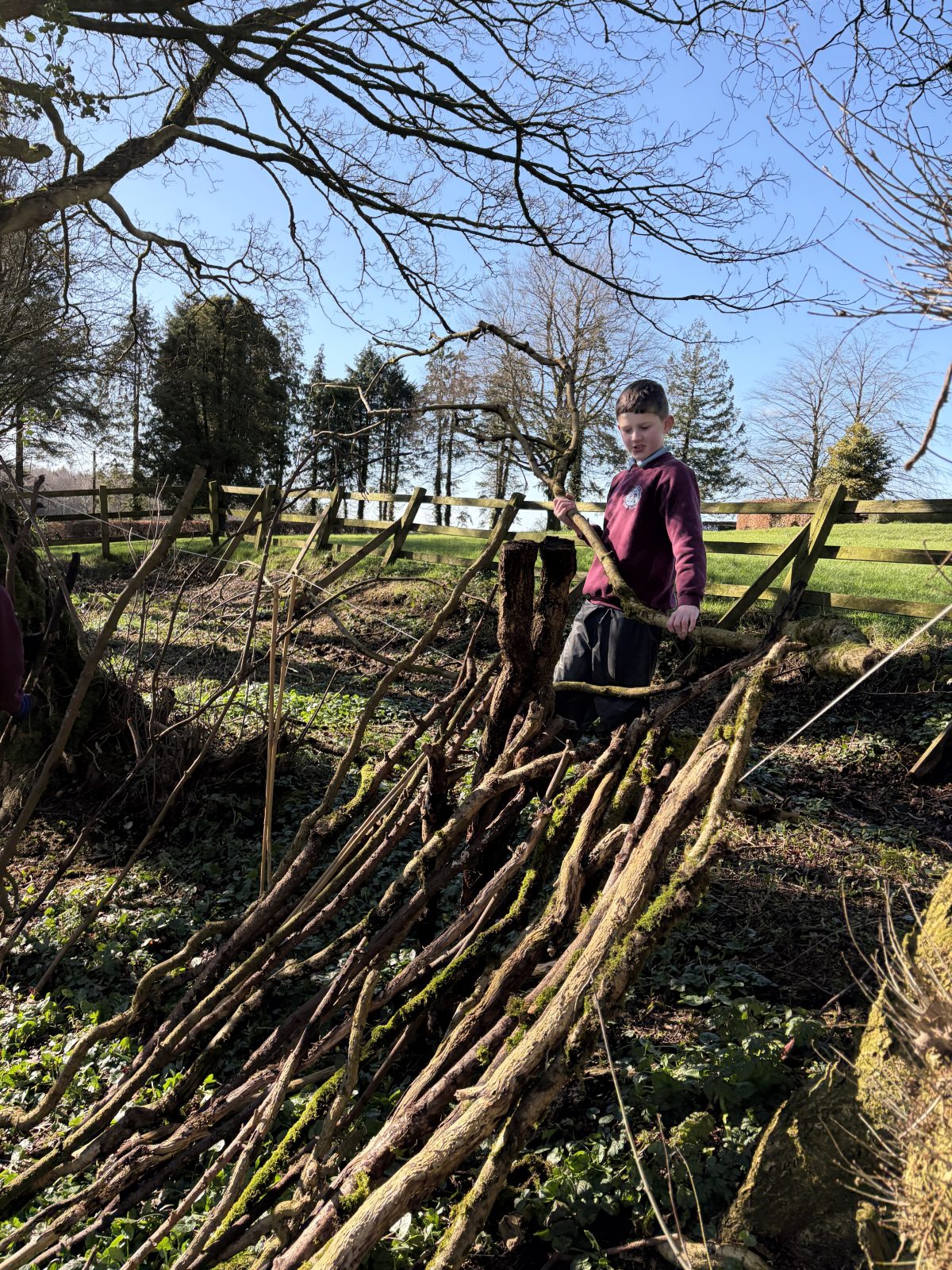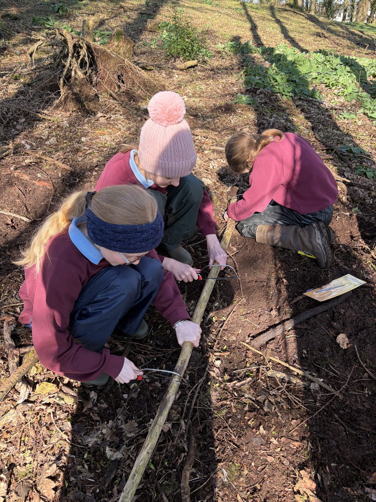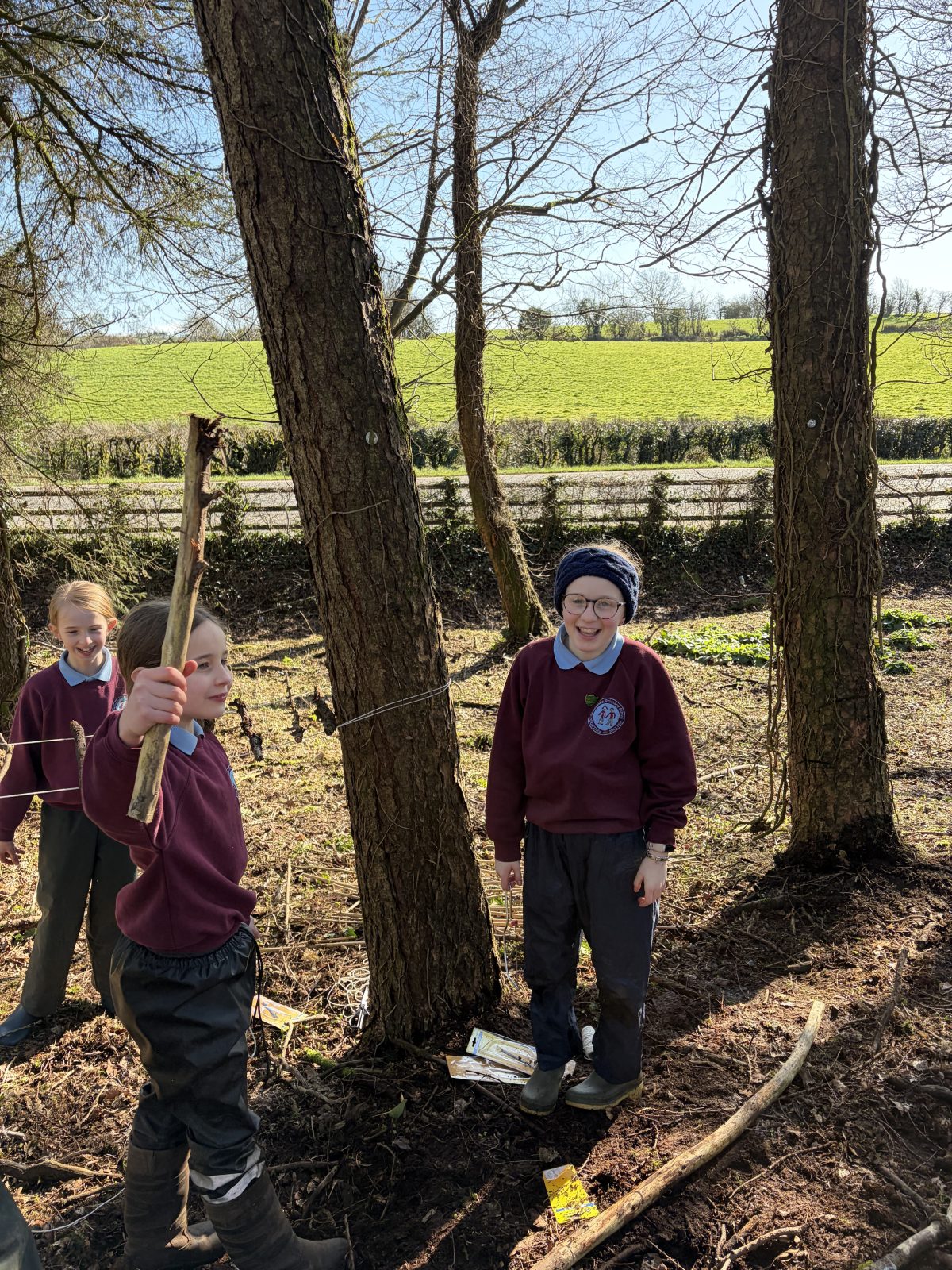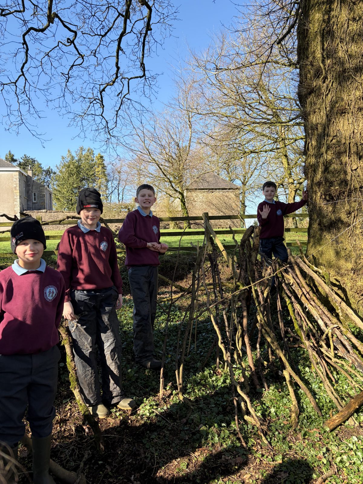 As part of P6/7’s topic of ‘Wonderful, Marvellous Me’, they have been learning about the geography of Northern Ireland. After discussion about what tourist attractions there are in NI, children were set the challenge of creating one of the attractions named. Along with using the natural resources within the forest, groups were also given string, scissors and a saw. This was the first time children were given saws to use. The expectations of how to use a saw carefully were clearly established and children utilised them well. All children thoroughly enjoyed this activity, with all giving it a thumbs up!
