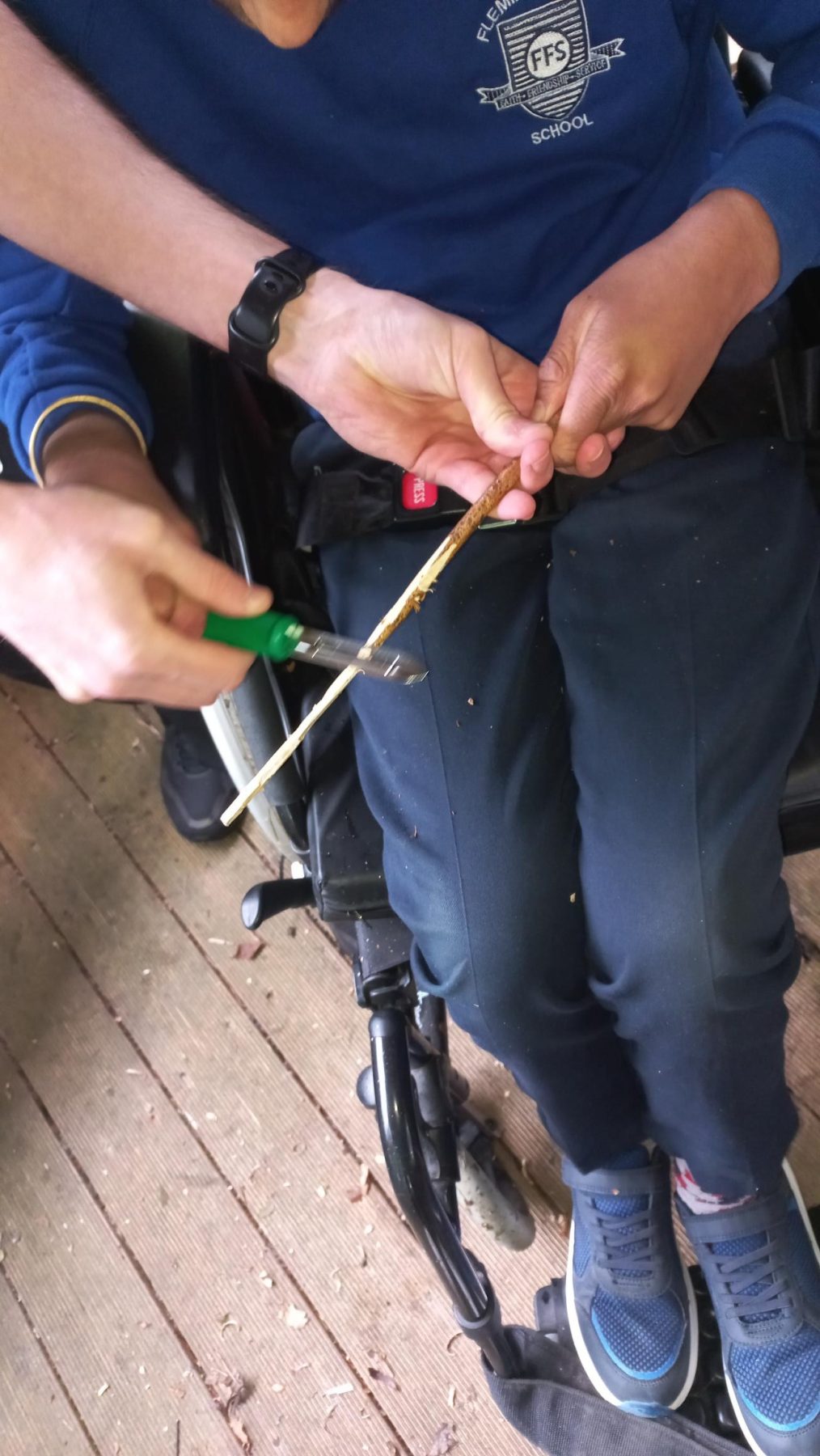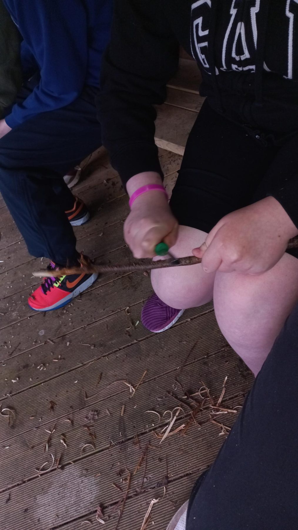 Collecting kindling and whittling sticks for skewers KS3 SEN group