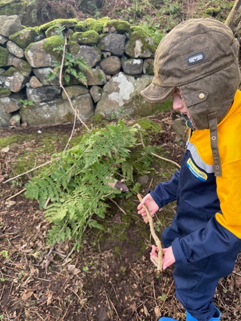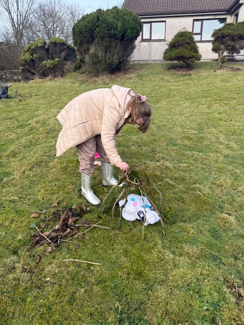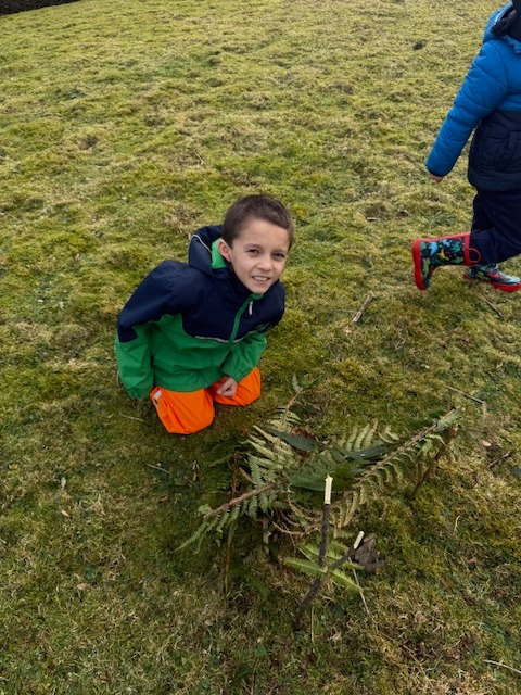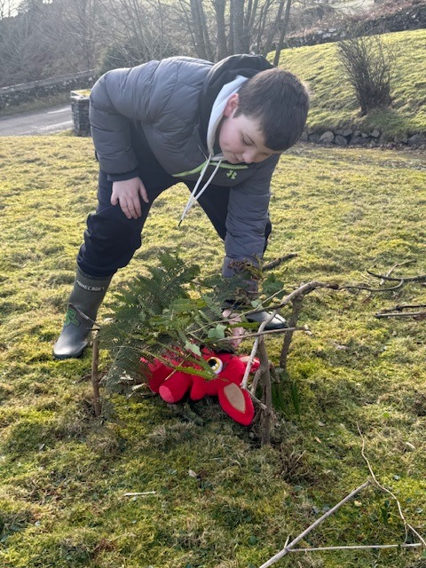Den building. Pupils had to create a den for their favourite teddy bear using only outdoor materials. No classroom materials were allowed.