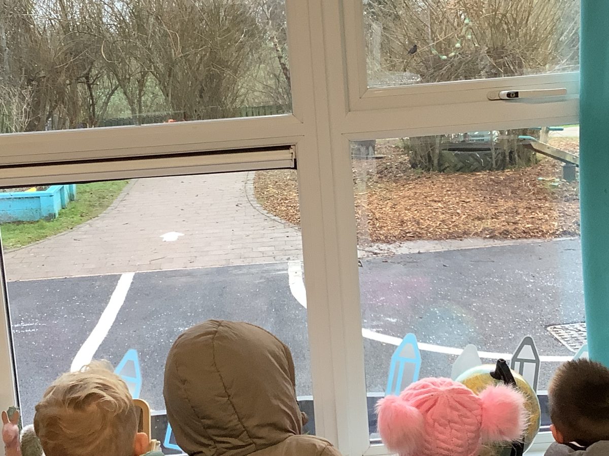 We watched and counted the birds. We had to be very quiet and did a super job! We agreed that the birds liked the seeds and nuts that we left out for them.