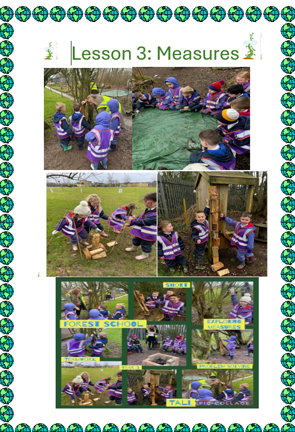 The children explore measures through natural materials