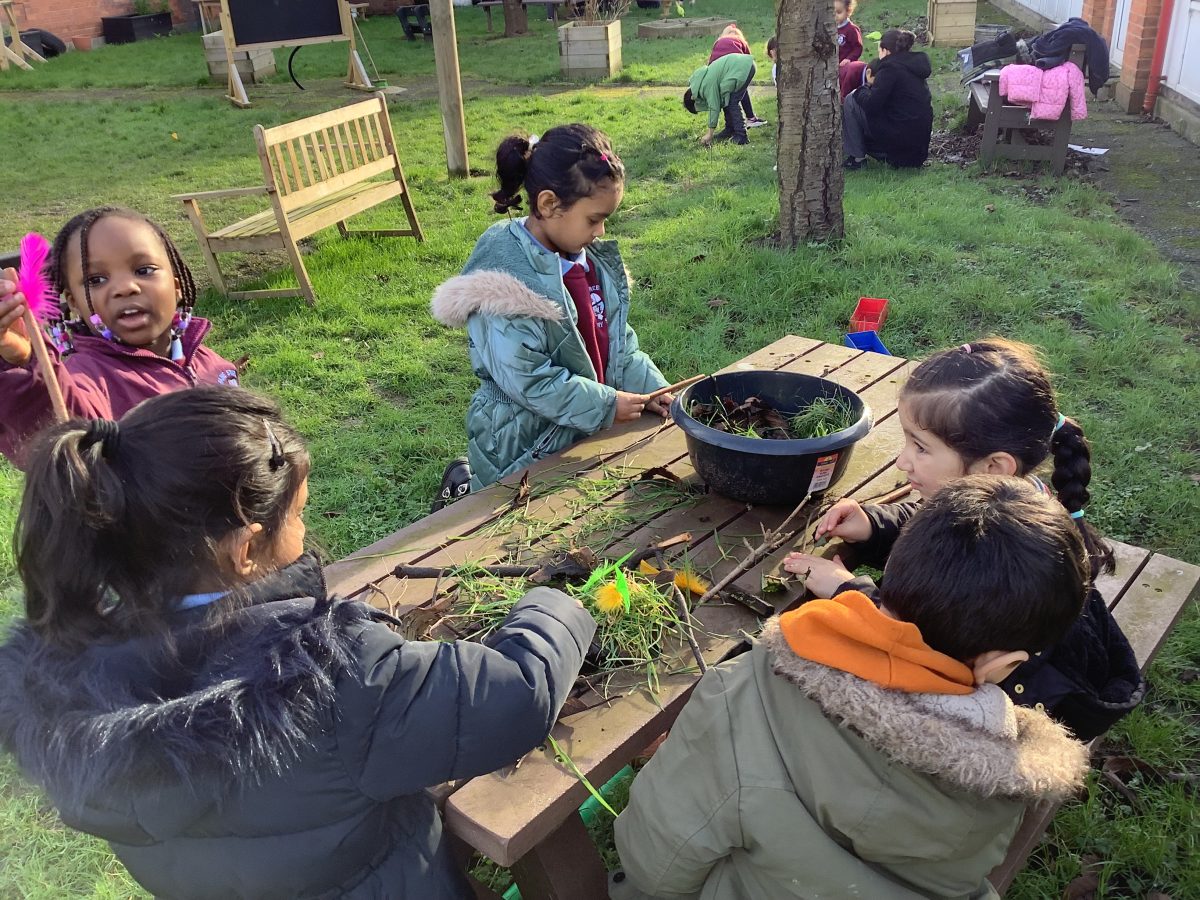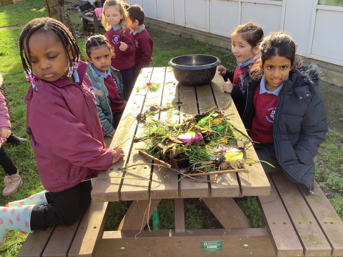 P1 used natural materials to build animal shelters and dens. We worked as a group to collect natural materials and then shared them with our friends. We worked together to build and create a home for an animal.