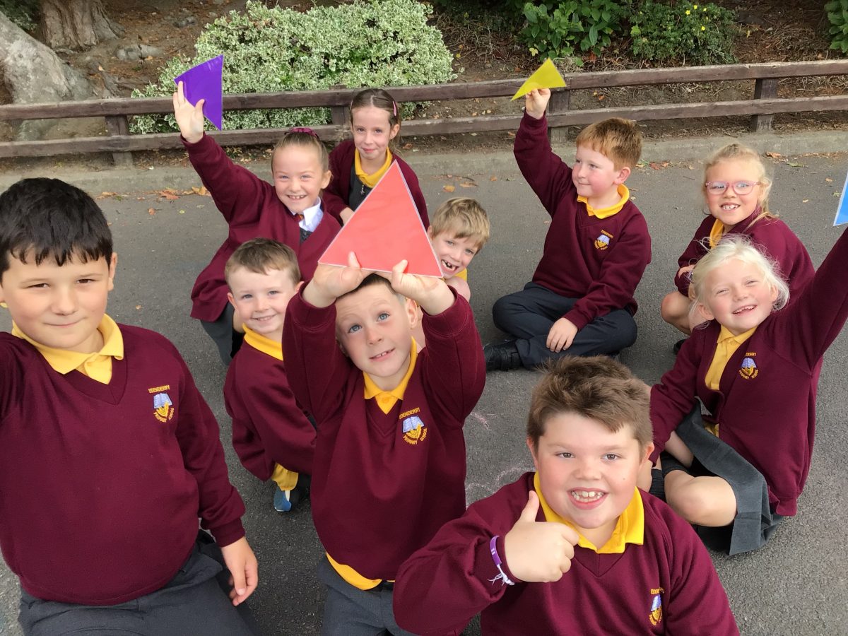 P4 2d shape outdoor lesson. Using sides of shapes find matching shape.