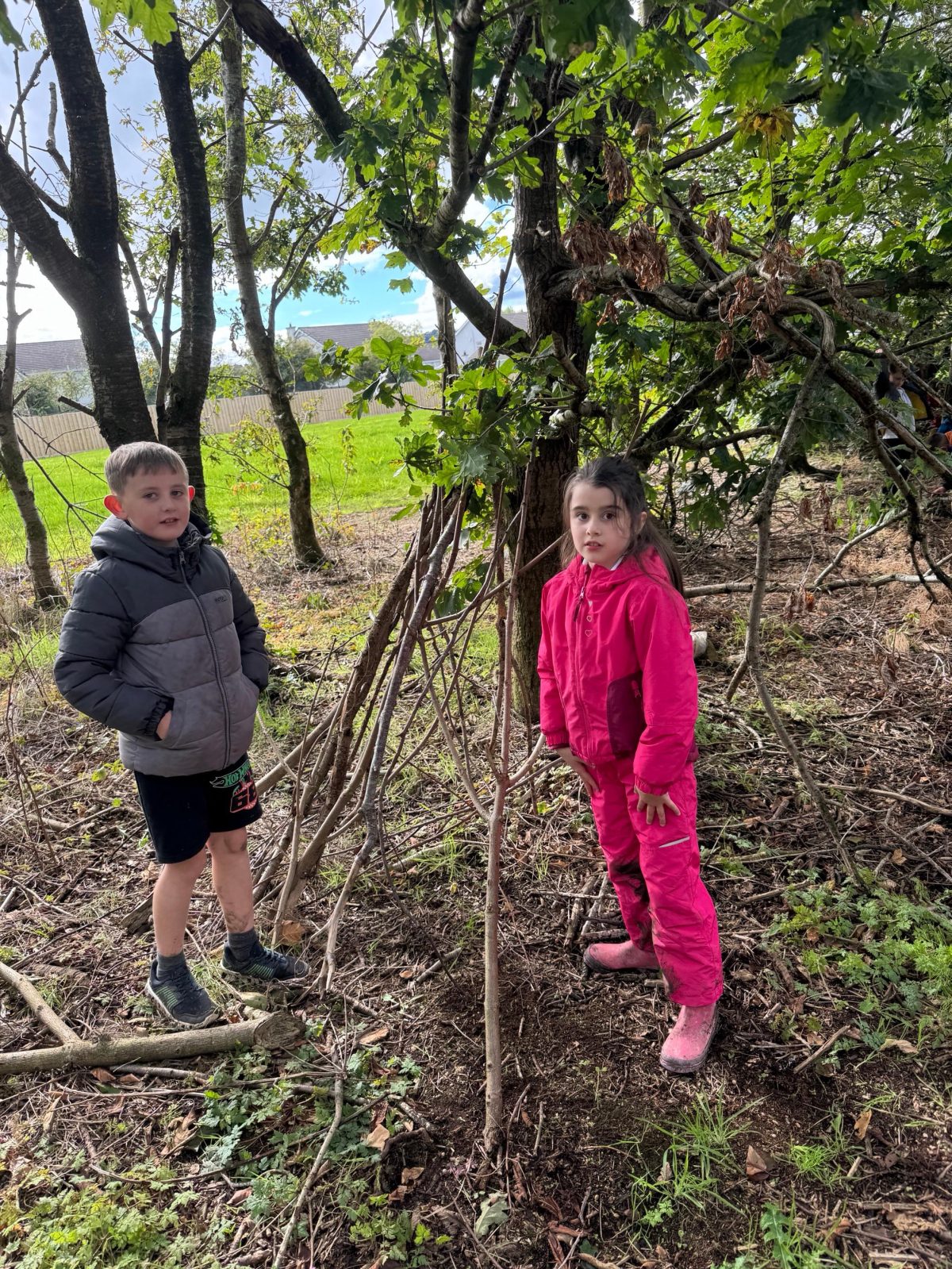 The activity also encouraged environmental awareness, as learners considered how to collect resources responsibly and return unused materials to the forest floor. Many children demonstrated pride not only in their finished dens but in the process of working together to overcome challenges.