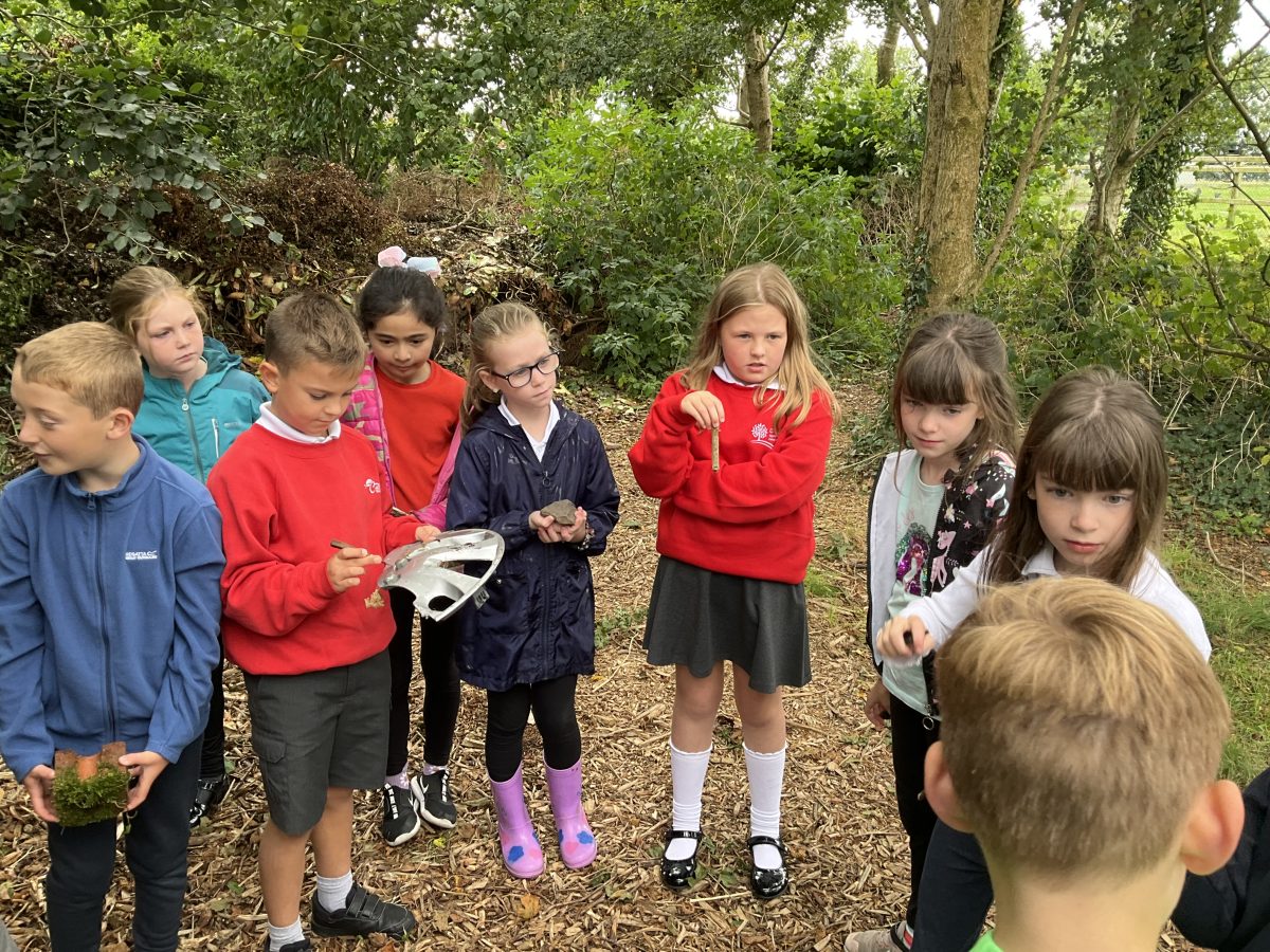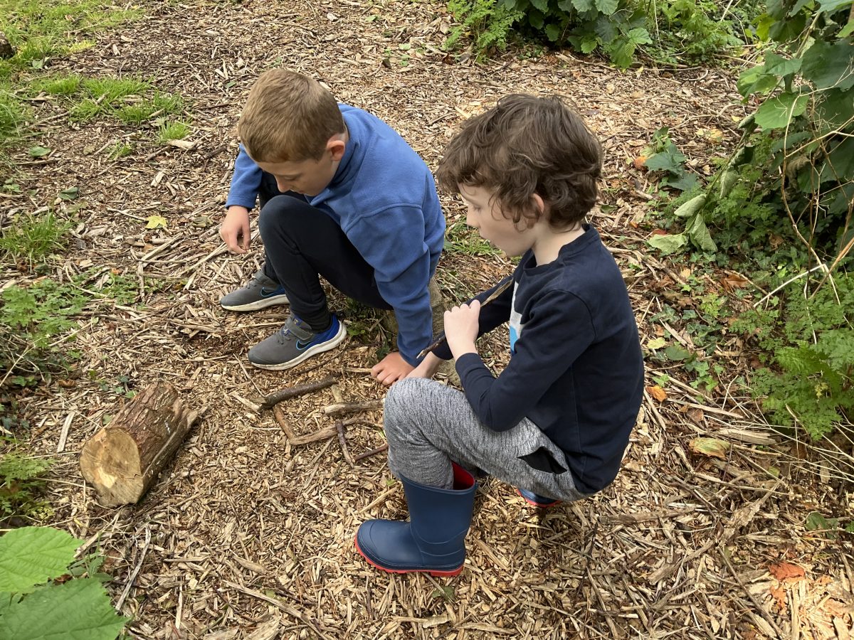 Our Primary 5 pupils have been getting creative in the small copse of trees by the playing fields! Using sticks, leaves, stones, and other natural materials, they explored different shapes and patterns, building their own designs on the forest floor. This activity encouraged teamwork, imagination, and a closer look at the beauty of nature all around us.