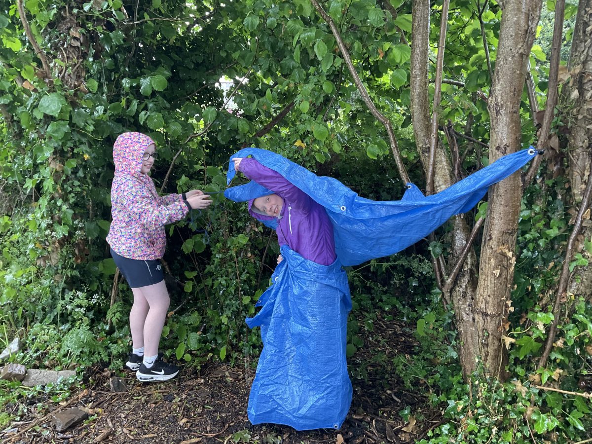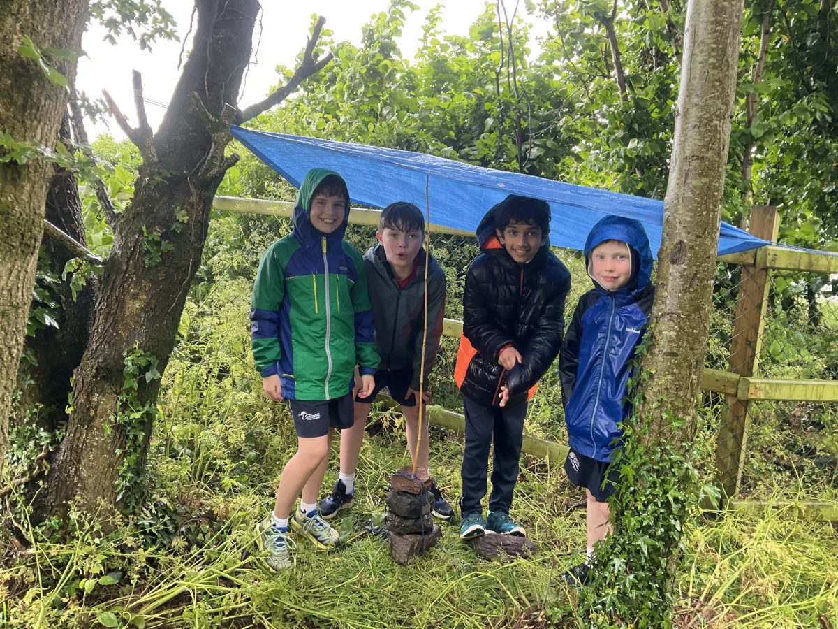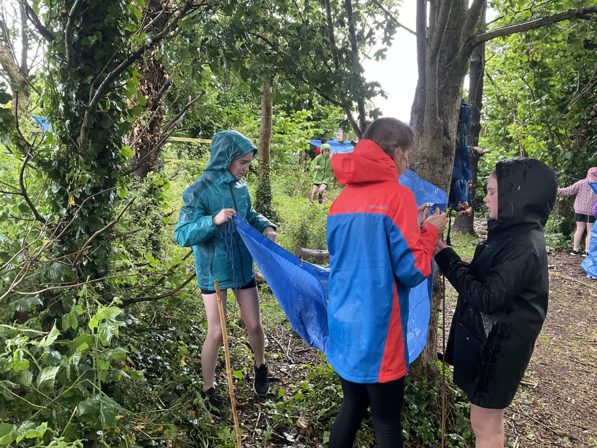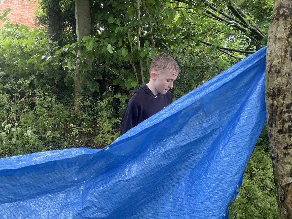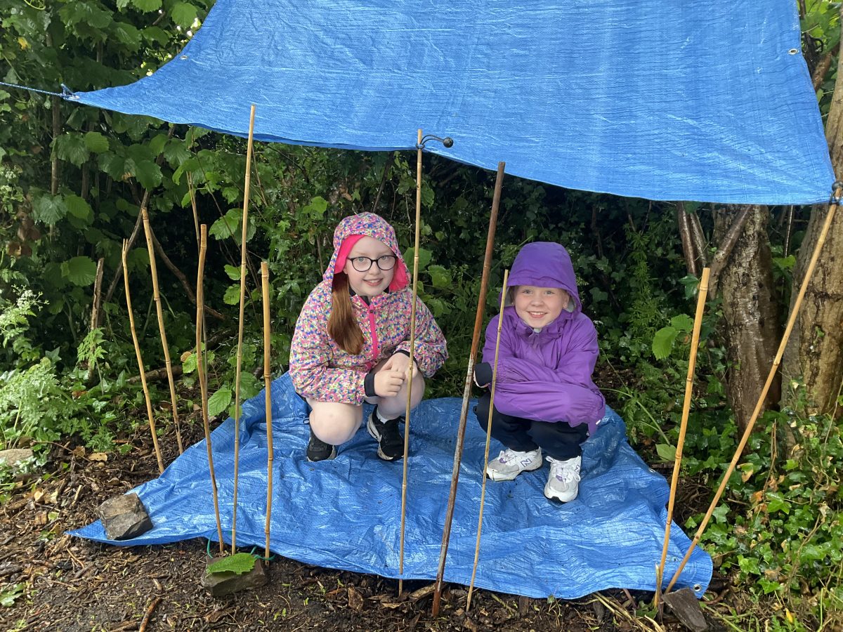 Our Primary 7 pupils have been learning practical outdoor skills in the small copse of trees near the school. Using bamboo canes, sticks, tarpaulins, bungee ties, and rope, they worked together to design and build sturdy shelters. This hands-on activity encouraged teamwork, problem-solving, and creativity while deepening their connection with nature.