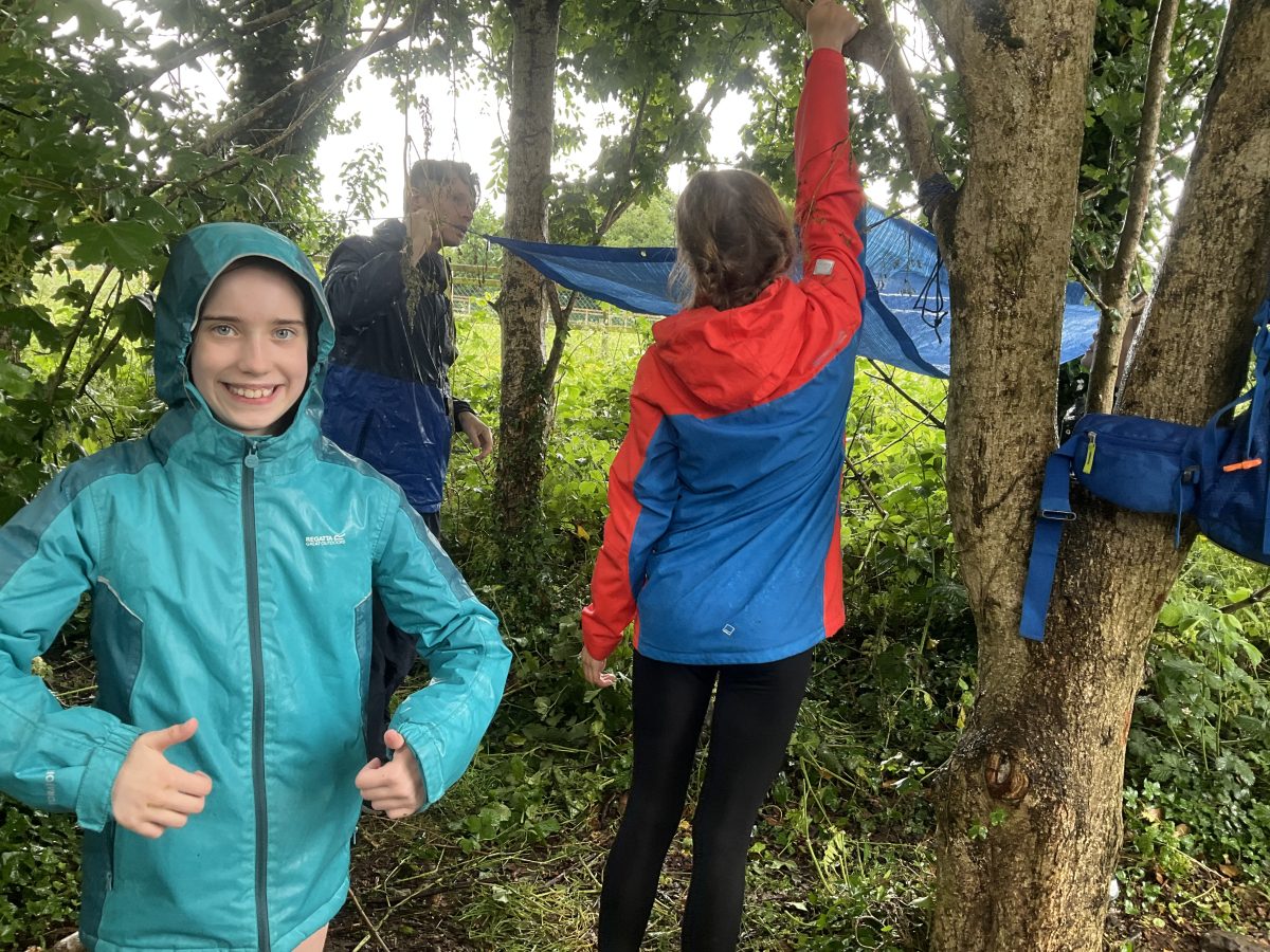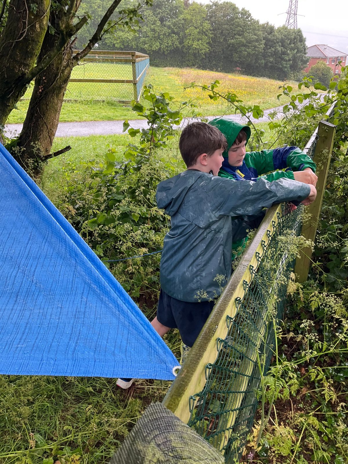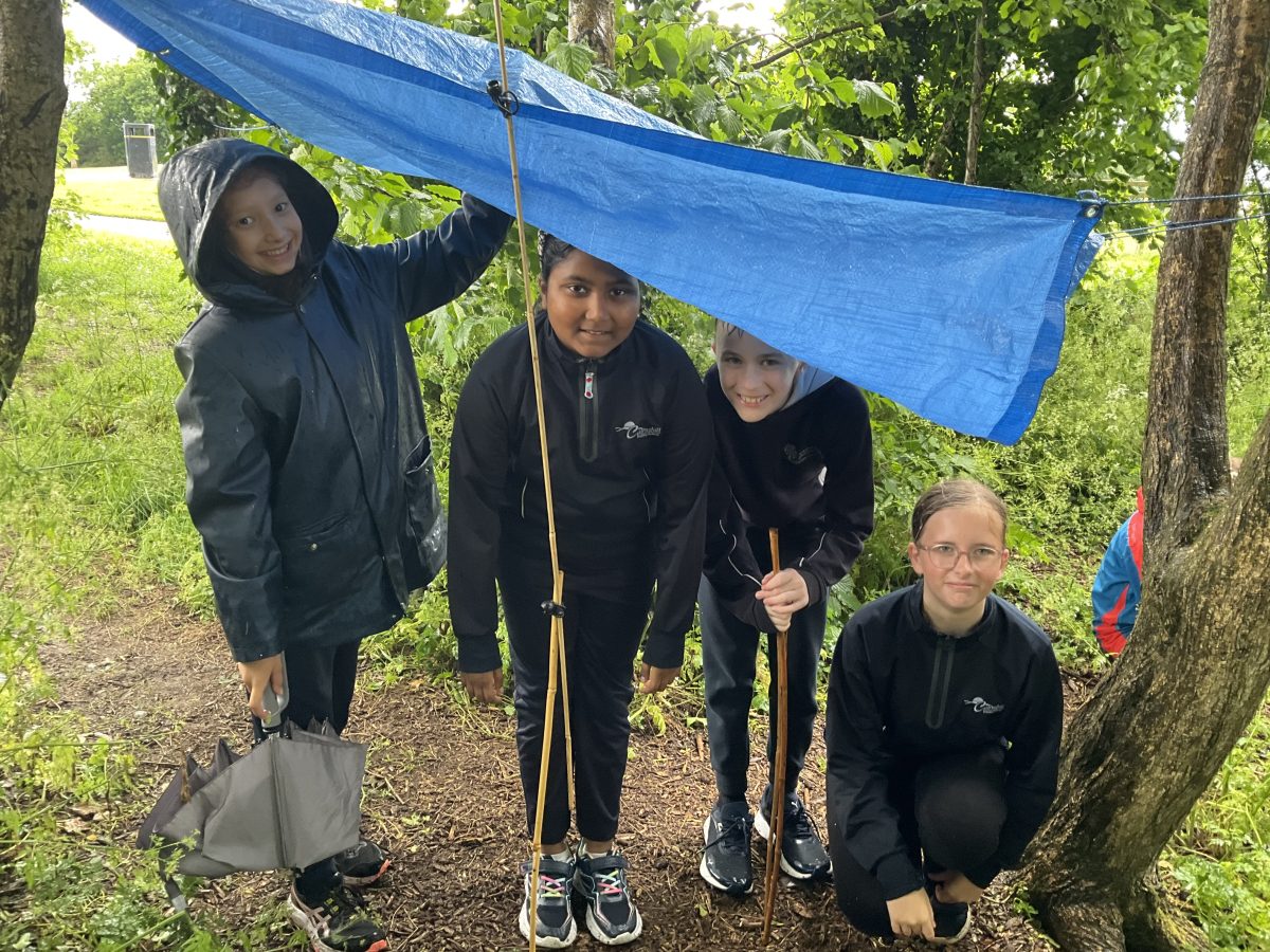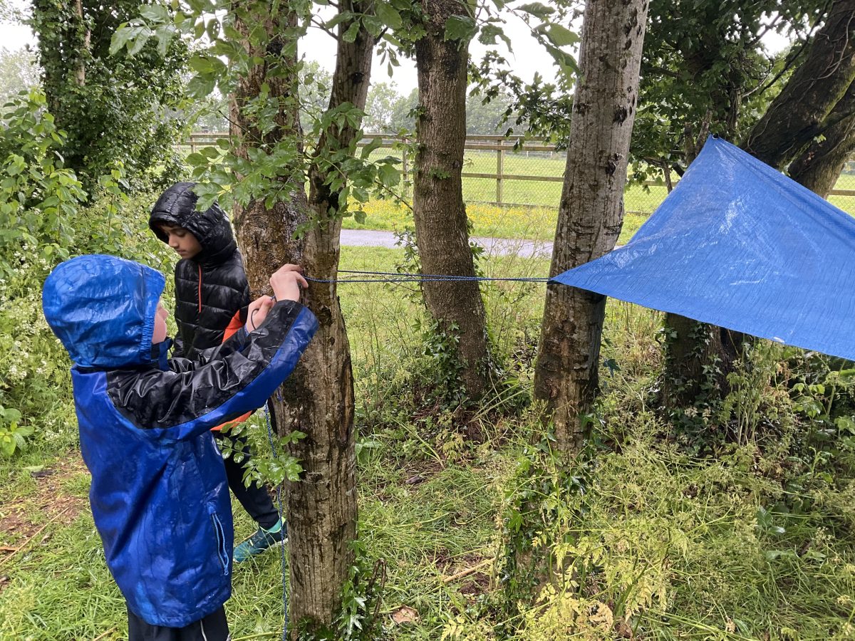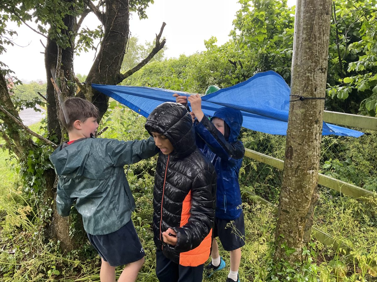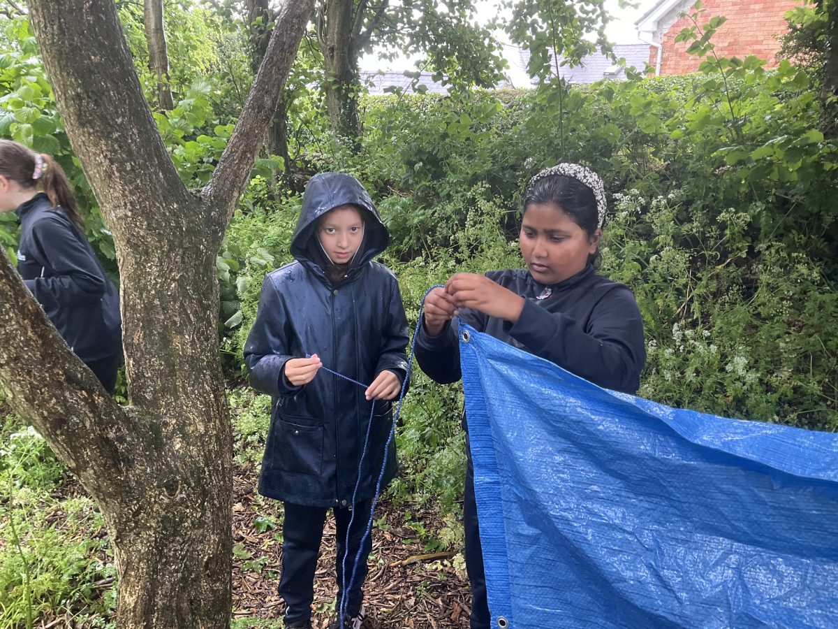 Our Primary 7 pupils have been learning practical outdoor skills in the small copse of trees near the school. Using bamboo canes, sticks, tarpaulins, bungee ties, and rope, they worked together to design and build sturdy shelters. This hands-on activity encouraged teamwork, problem-solving, and creativity while deepening their connection with nature.