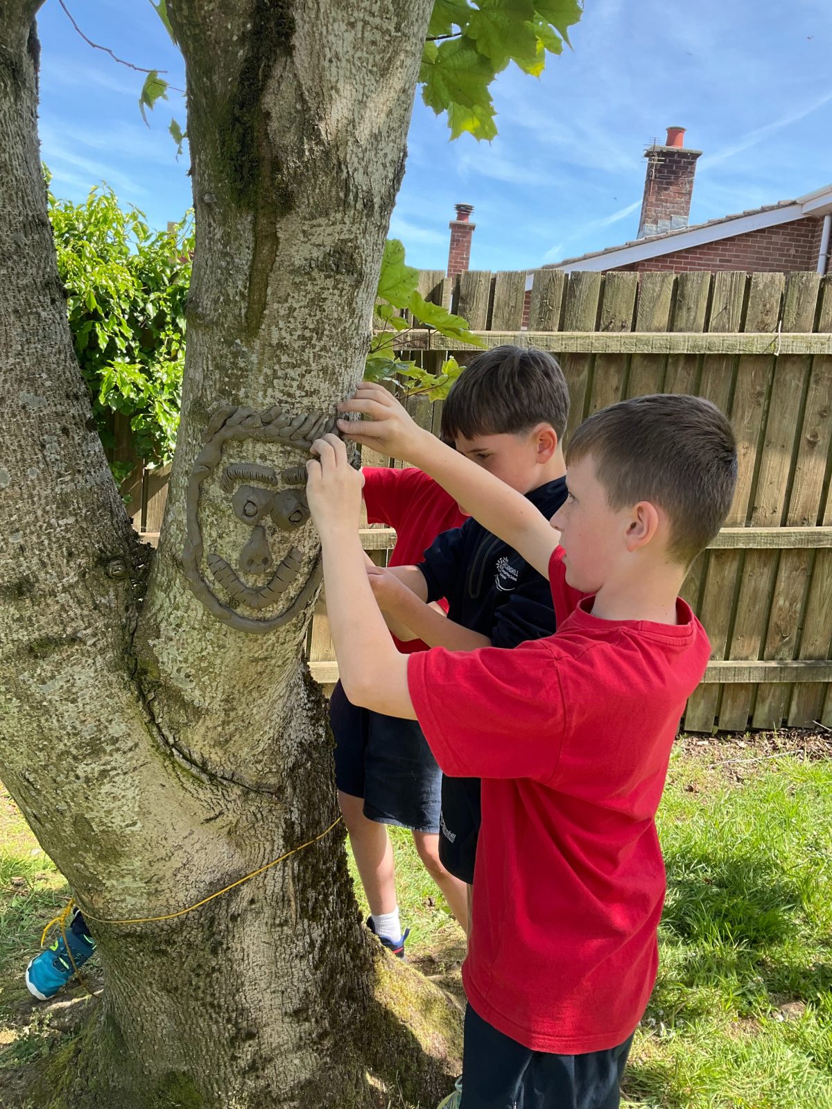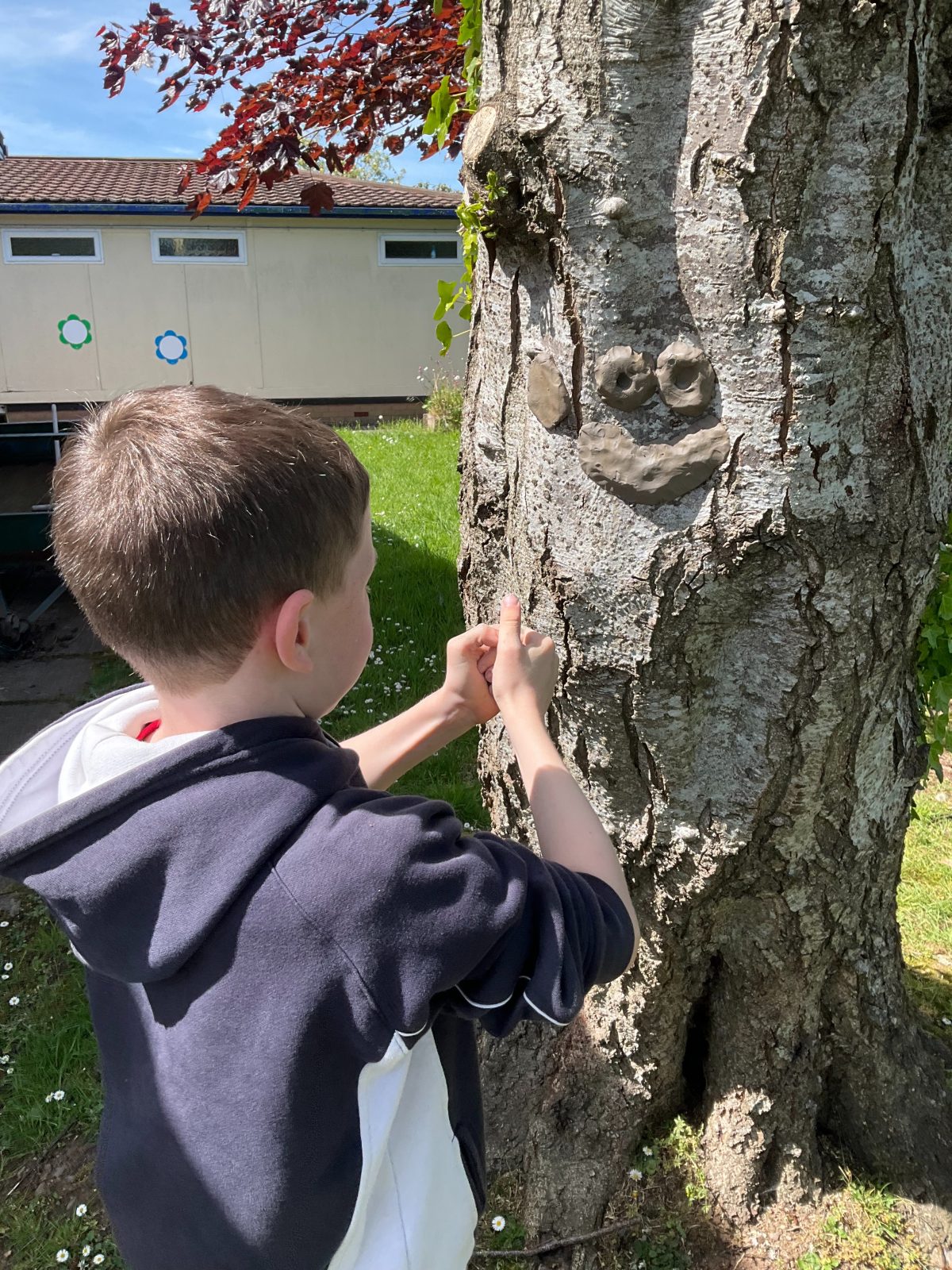 Our Primary 7 pupils have been bringing a touch of creativity to the woods! Using natural clay, they crafted imaginative faces on the trees in the school grounds. This activity encouraged artistic expression, a sense of connection with nature, and plenty of fun as the trees were transformed into friendly woodland characters.